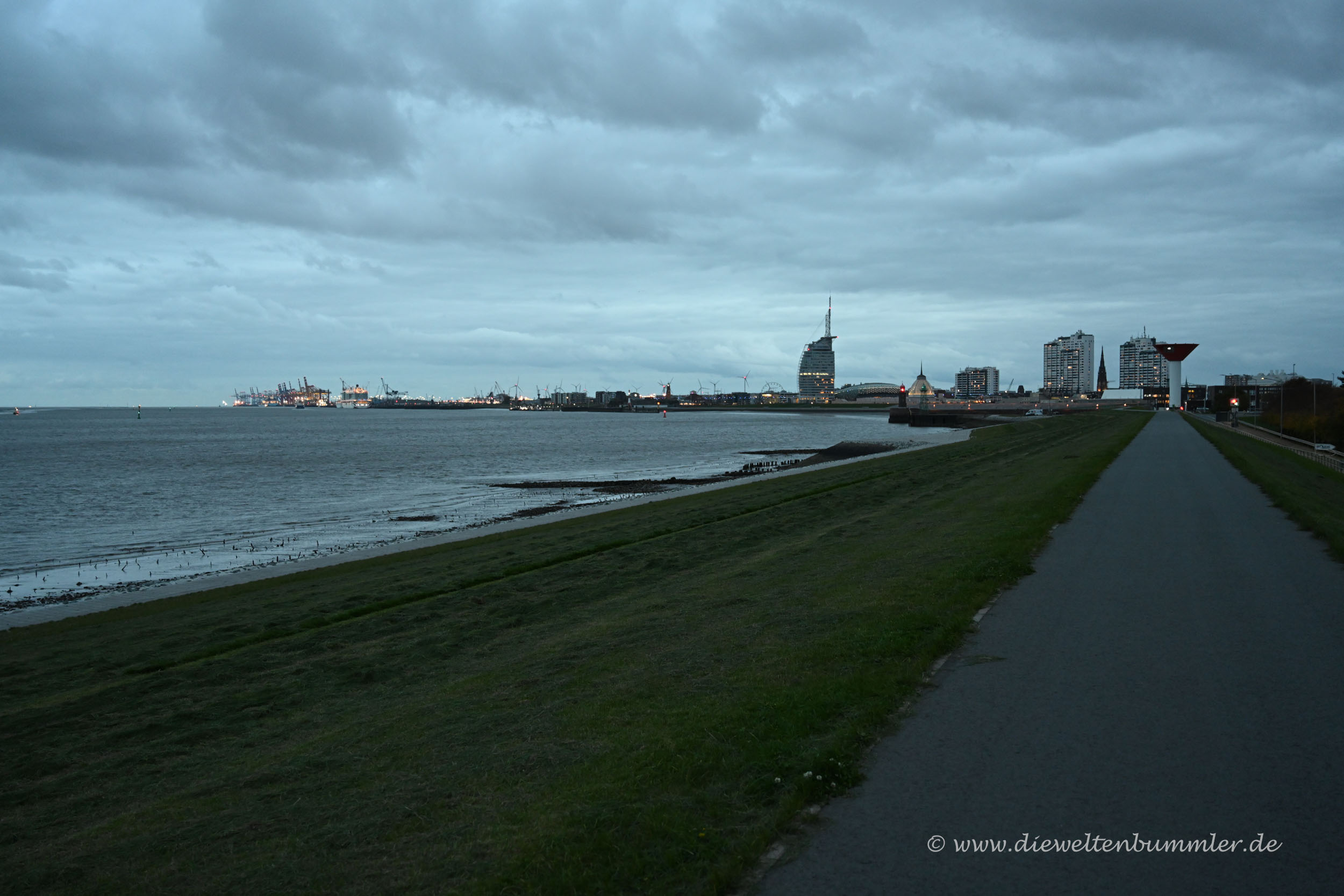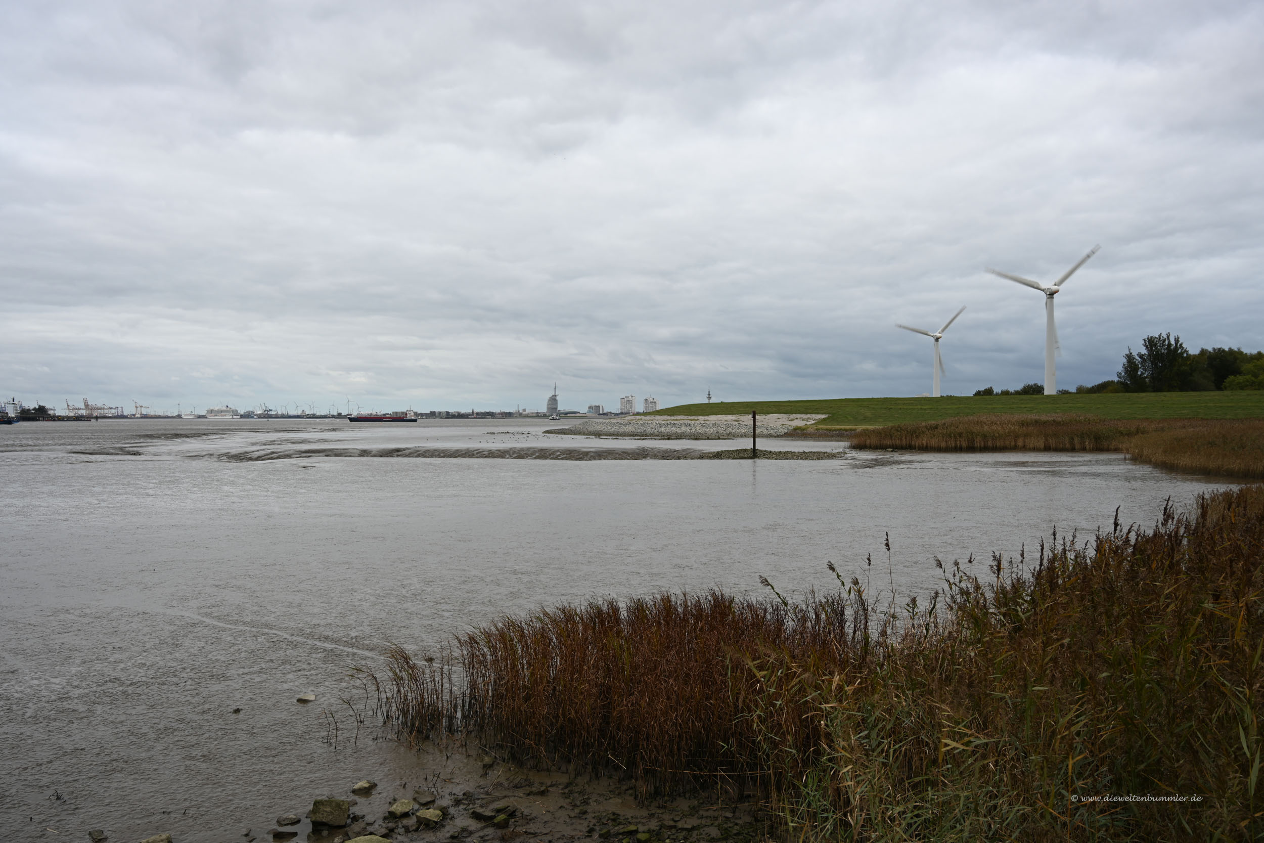 Da wir nur eine kurze Anfahrt hatten, waren wir relativ früh in Bremerhaven und hatten entsprechend Zeit, die Stadt ausgiebig zu erkunden. Wir gingen über die Geeste hinweg in das Stadtzentrum und warfen einen Blick auf das Deutsche Schifffahrtsmuseum, von wo aus wir dann am Deich dem Weserufer in Richtung Mündung folgten.