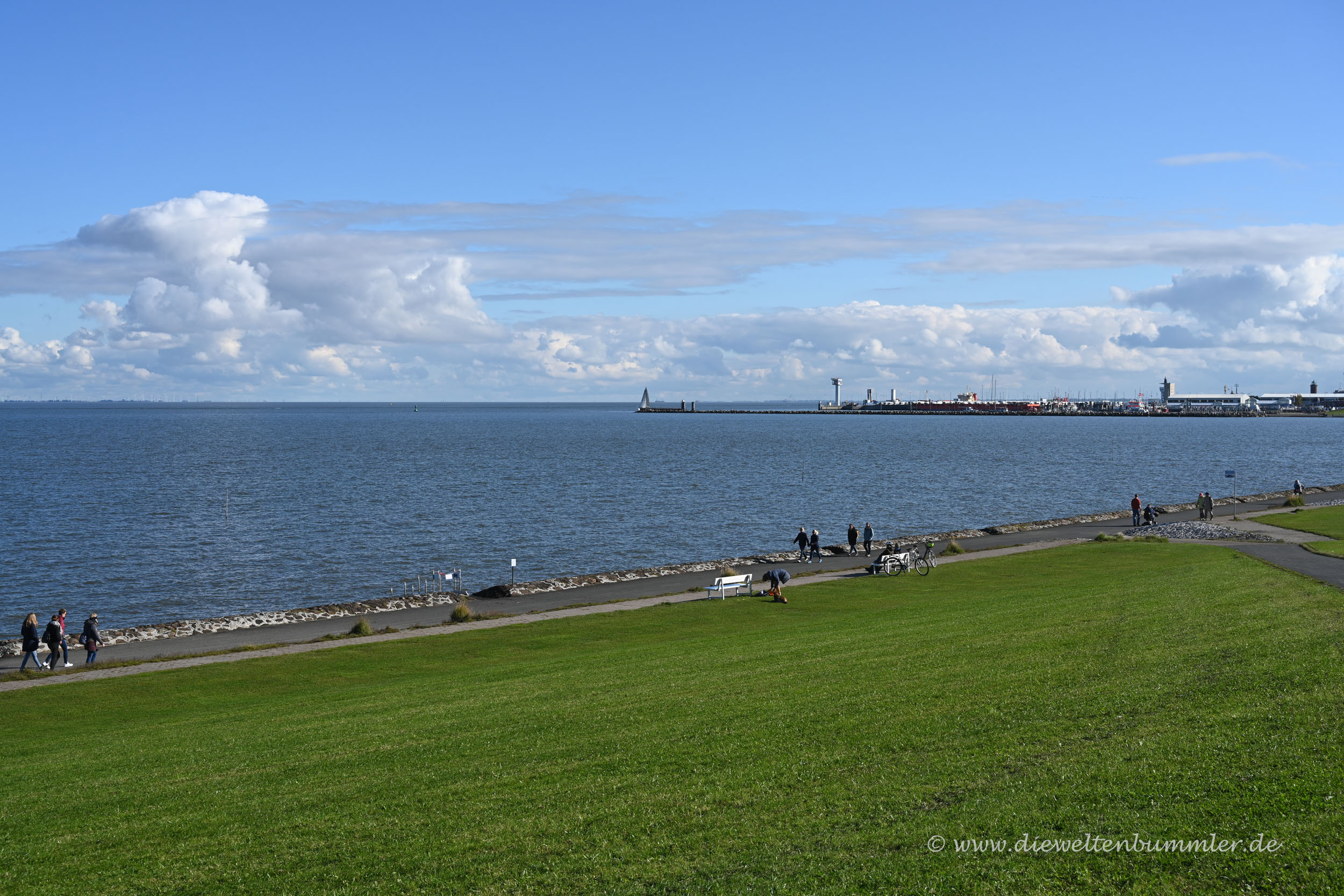 Dem Elbufer folgten wir ohnehin wieder in Richtung Cuxhaven. Wir nahmen nämlich unsere Rucksäcke und nutzten das immer noch schöne Wetter für einen längeren Marsch bis in das Zentrum. Wir wollten uns nämlich mit einigen Leckereien aus einer Bäckerei versorgen.