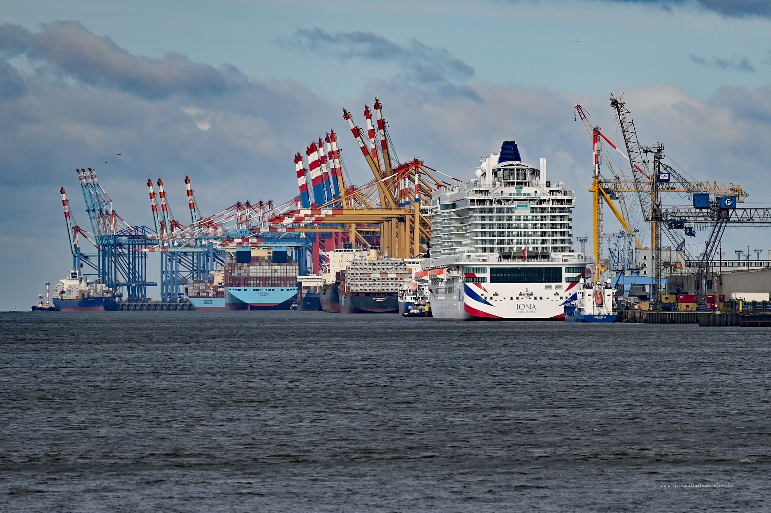 Im Schatten des Atlantic Hotels mit seiner Aussichtsplattform gingen wir am Zoo vorbei und gingen so weit wie wir konnten. Wir sahen schon aus der Ferne, dass wir uns dem Hafen nähern würden, wo ein Kreuzfahrtschiff angelegt hatte. Vermutlich war es coronabedingt längere Zeit dort vor Ort.