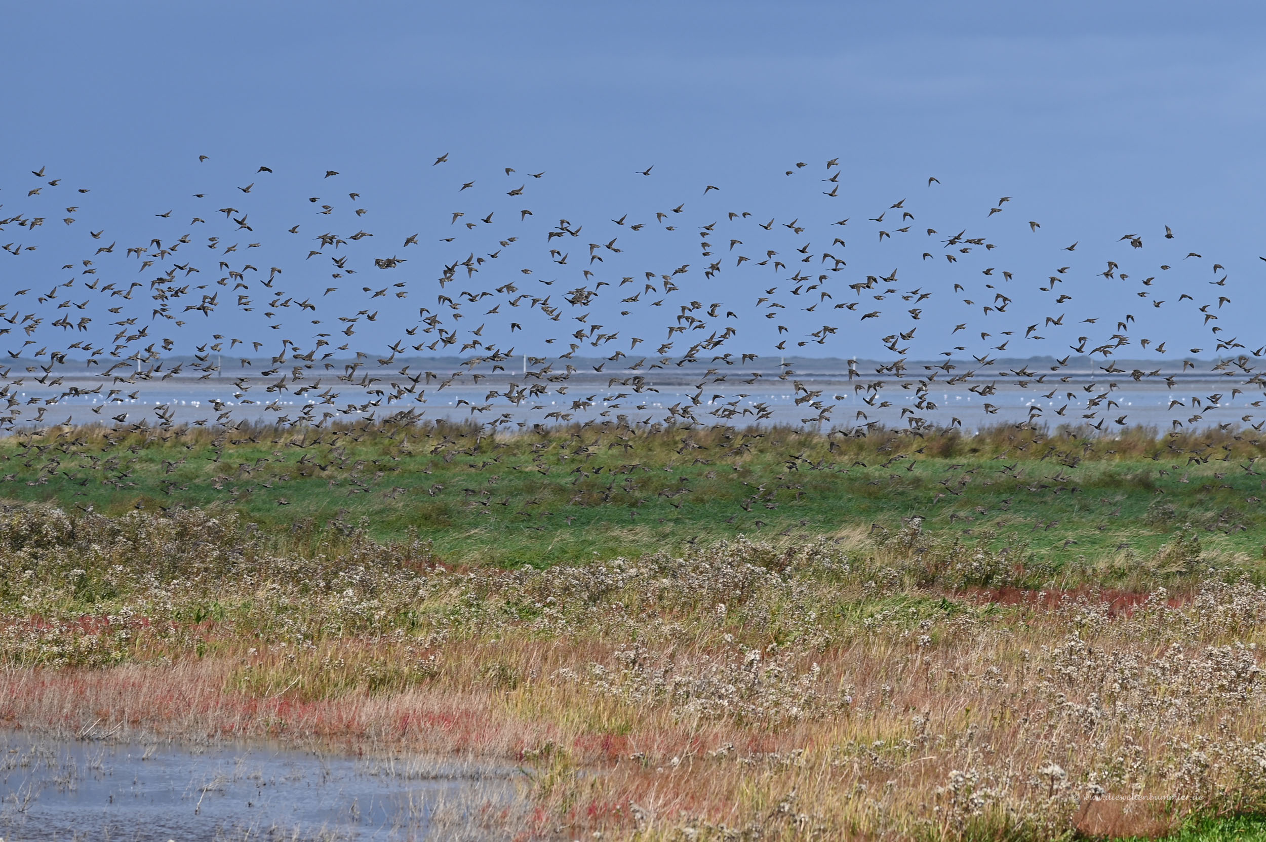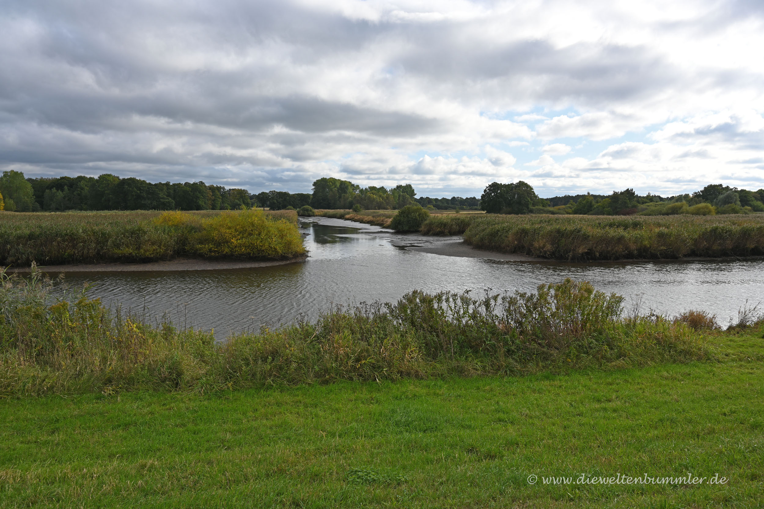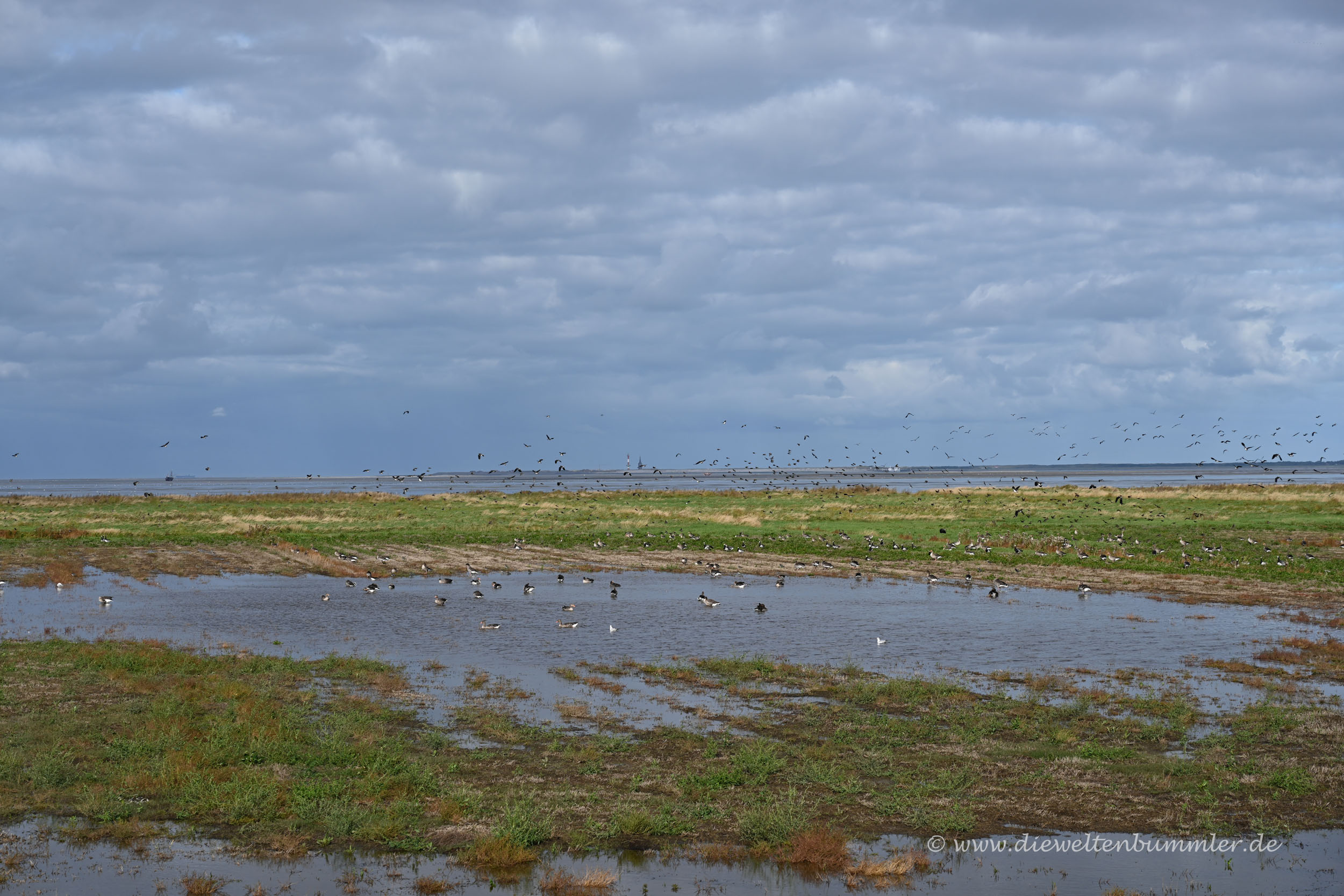Wir näherten uns dabei einem Uferabschnitt der Fest im Griff der Natur ist und wo wir einen tollen Vogelschwarm sehen und fotografieren konnten. Dabei gingen wir soweit, dass wir das Bundesland Bremen sogar verließen und zu Fuß nach Niedersachsen gegangen sind.
