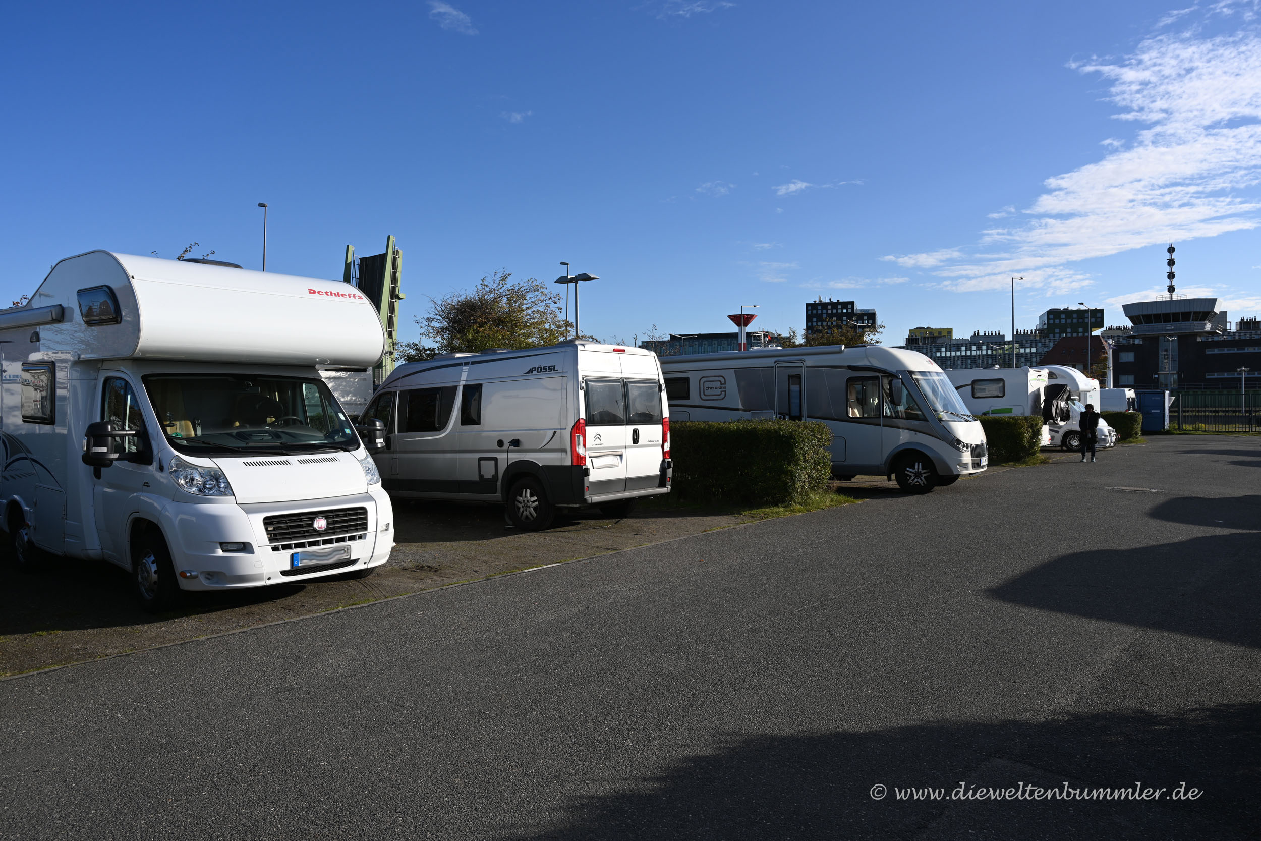 Auf dem Stellplatz fanden wir nach kurzer Suche eine Stellfläche, die uns zusagte und die wir umgehend für eine Nacht bezahlten. Am Schalter erhielten wir zudem die Information, dass hier in Bremerhaven, im Bundesland Bremen, wiederum ganz andere Regeln gelten. Übernachten dürfe man hier, auch wenn man aus einem Risikogebiet käme. Aber die Toiletten und die Dusche sind nur geöffnet, solange der Platzwart vor Ort ist. Die Logik dahinter kann ich nicht ganz nachvollziehen, aber ist mir ohnehin egal.