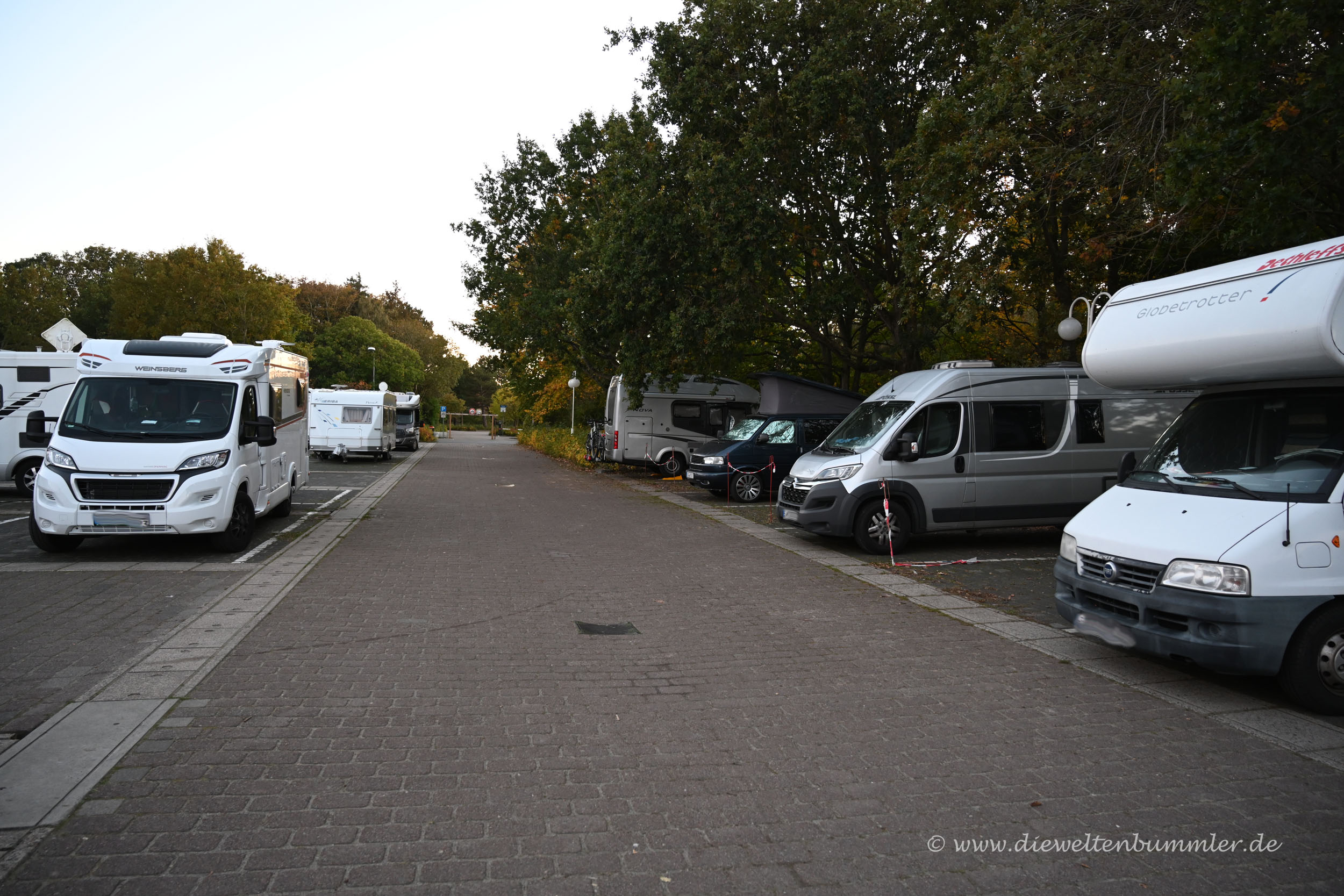 In der Kurparkallee fanden wir einige freie Parkplätze, wo wir hätten parken können. Aber gleich um die Ecke befindet sich ja auch noch ein Wohnmobilstellplatz. Wenigstens mal gucken wollten wir. Und siehe da: Das lohnte sich. Der Stellplatz ist nicht wirklich eine Schönheit. Doch er ist bedeutend günstiger und vor allen Dingen hatte er am Rand noch eine freie Parzelle, die coronabedingt auch noch einigen Abstand zu anderen Fahrzeugen bot.