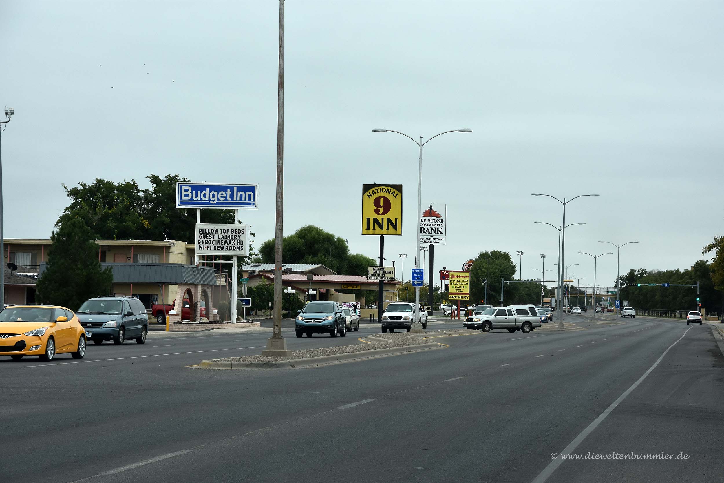 Unser Weg führte am nächsten Morgen in das Stadtzentrum von Roswell. Aber kann man wirklich Zentrum zu einem Stadtbild sagen, dass aus rechtwinkligen Straßen besteht und wo alles irgendwie gleich trostlos aussieht? Es war so typisch amerikanisch: Man fährt die Hauptstraße entlang und passiert eine Tankstelle, einen Fast-Food-Laden, ein Motel, eine Tankstelle, einen Fast-Food-Laden, ein Motel usw…