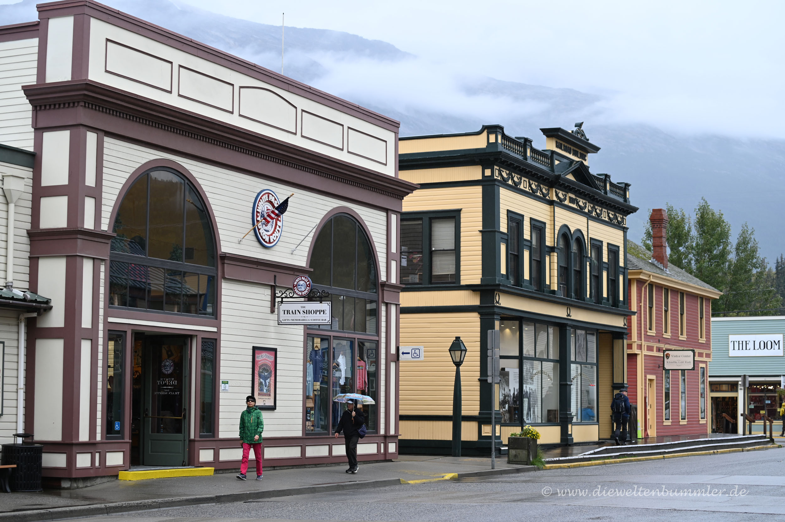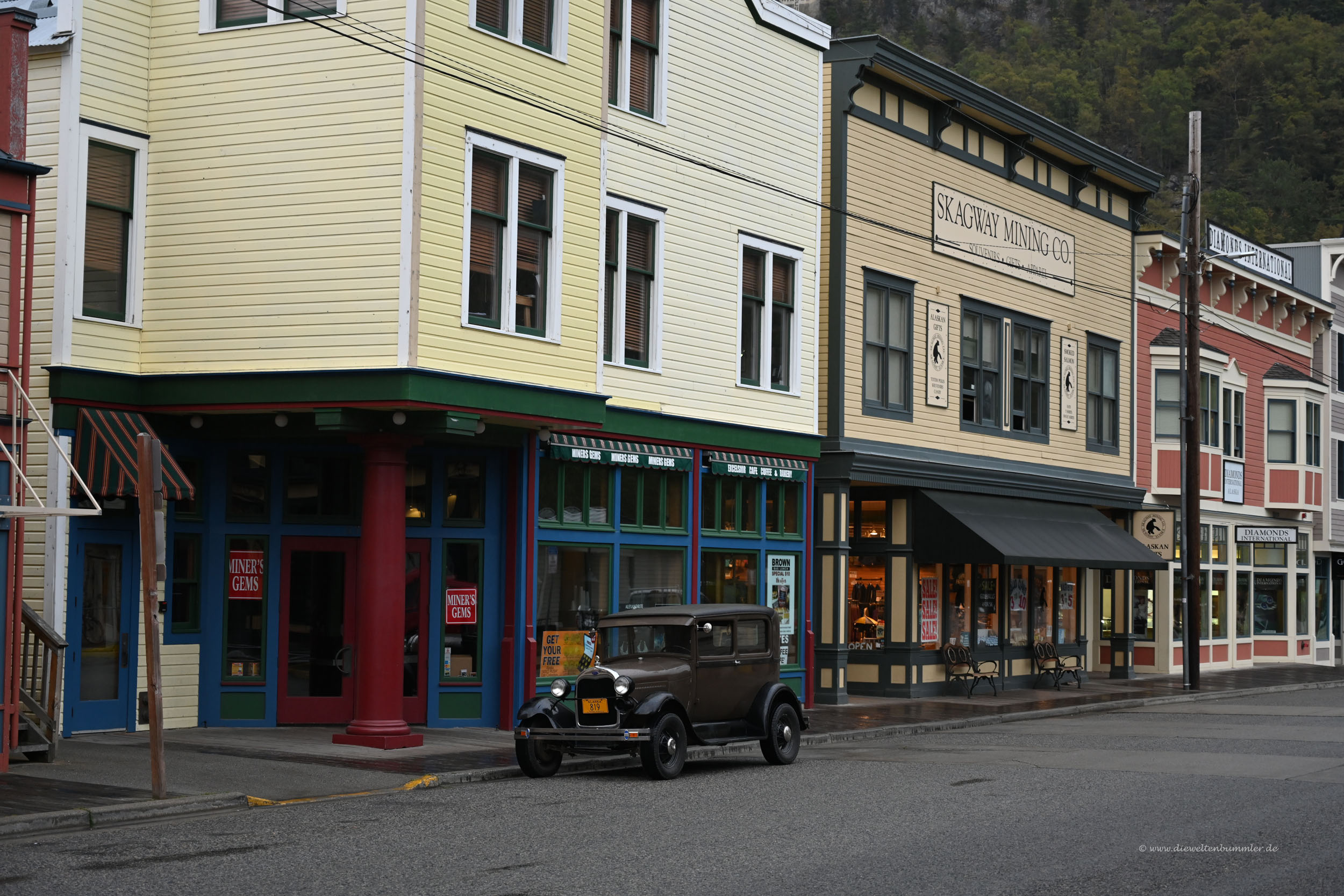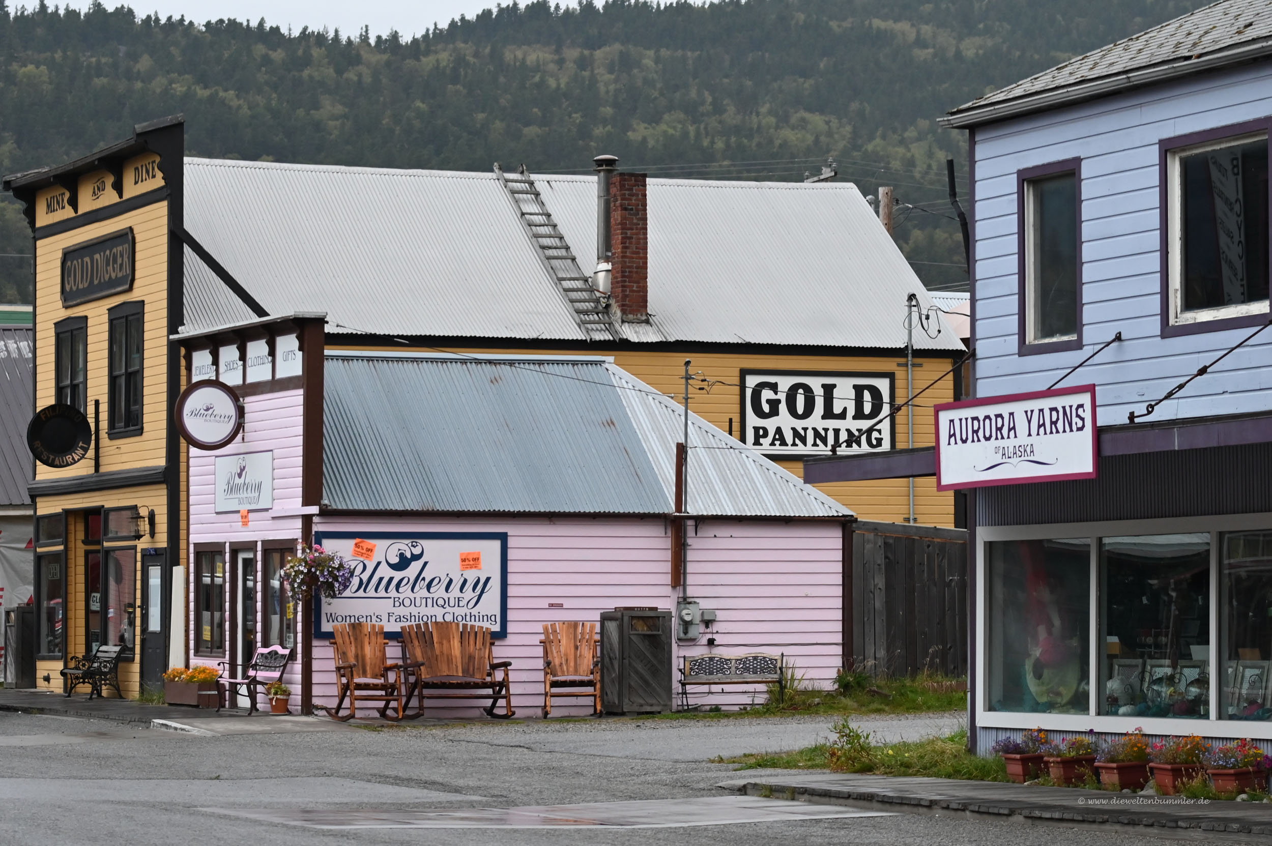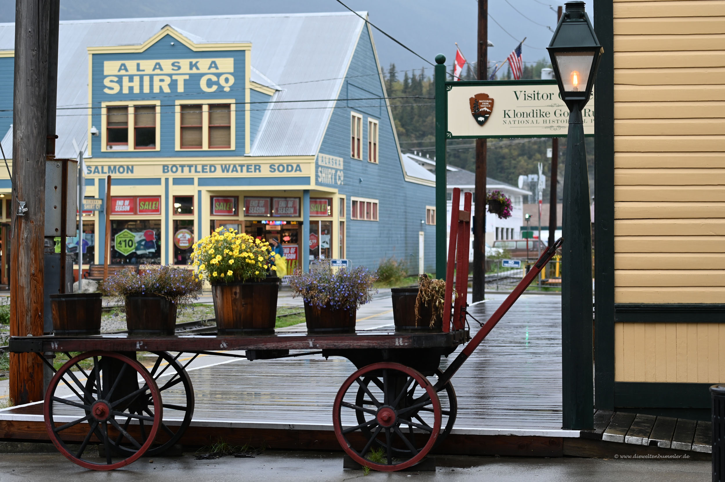 Zahlreiche Geschäfte, vor allen Dingen mit Souvenirs und ein paar Einkehrmöglichkeiten befinden sich auf beiden Seiten des Broadways. Kein Wunder, denn Skagway ist auch ein beliebtes Ziel von Kreuzfahrtschiffen und so ist hier tagsüber richtig viel los.