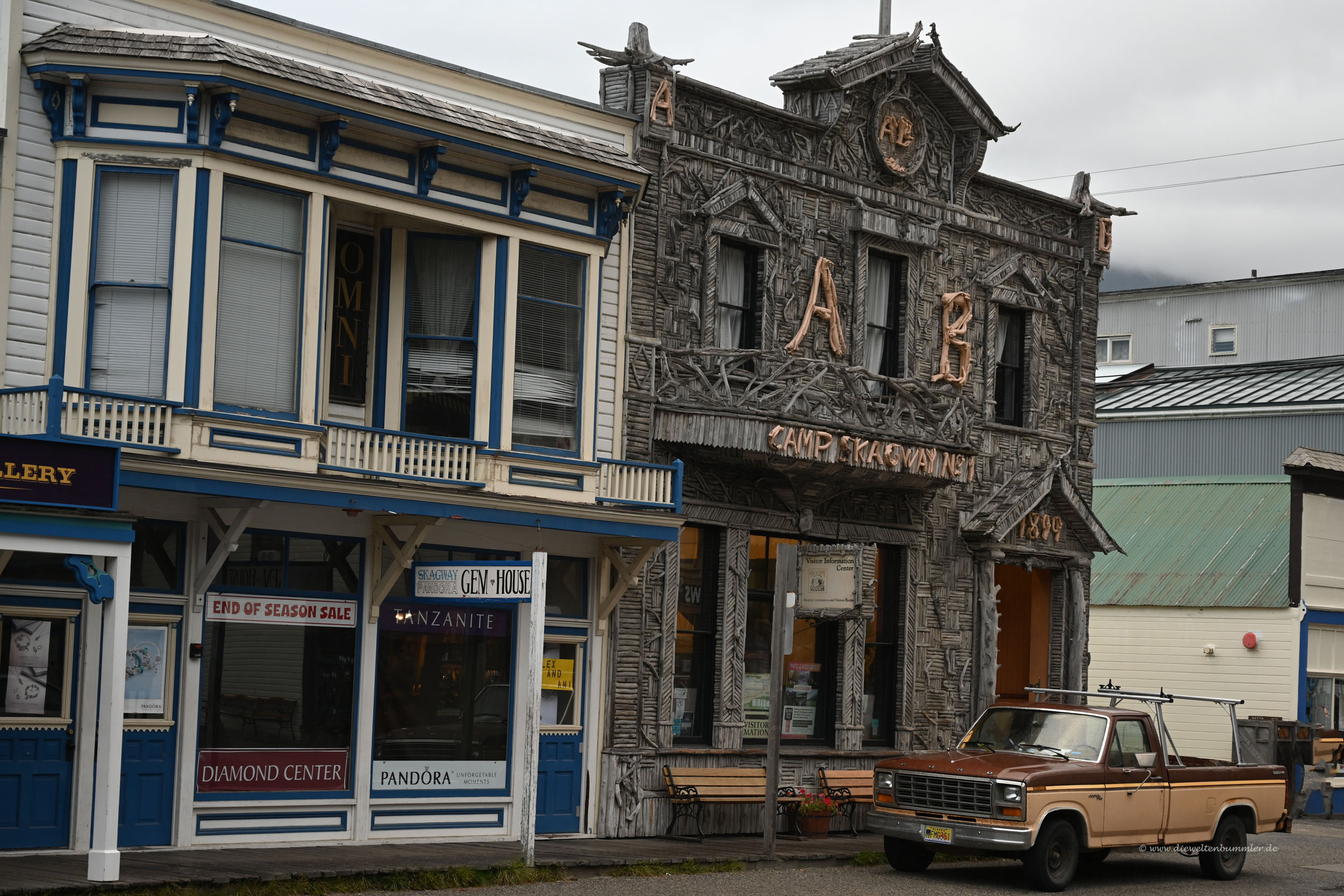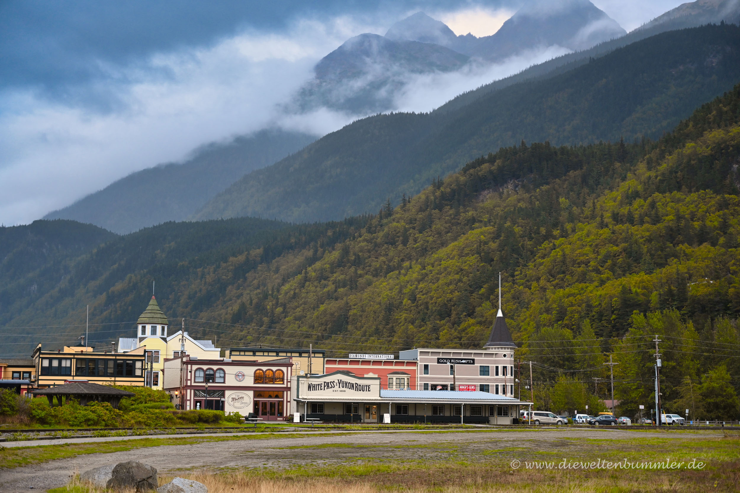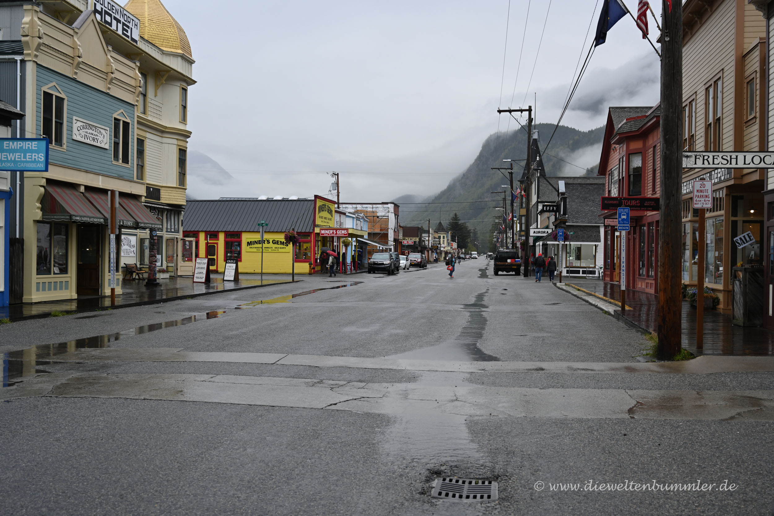 Zugegeben, Skagway liegt nicht im weiten Hinterland von Alaska. Es ist nicht Fairbanks, Anchorage oder gar Nome. Skagway befindet sich an einem Fjord nahe der Grenze zu Kanada und in einem schmalen Küstenstreifen, an dem man über Land nicht in den Rest Alaskas gelangt. Entweder man fliegt, man fährt mit dem Schiff oder man durchquert das kanadische Yukon-Territorium, um von Skagway in die anderen Teile Alaskas zu gelangen.