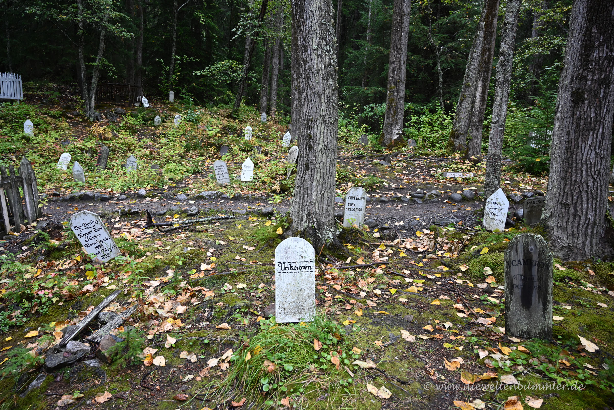 Er ist deshalb sehr interessant und sehenswert, weil hier noch originale Gräber von Goldsuchern zu finden, die aus verschiedenen Gründen bereits in Skagway und Umgebung ums Leben kamen. Diese historischen Gräber sind teilweise umzäunt oder liegen dicht beieinander oder haben Inschriften aus der Goldgräberzeit Ende des 19. Jahrhunderts – oder sie haben alles davon. Auf jeden Fall sehr eindrucksvoll und mit so manch interessanter Geschichte gespickt.