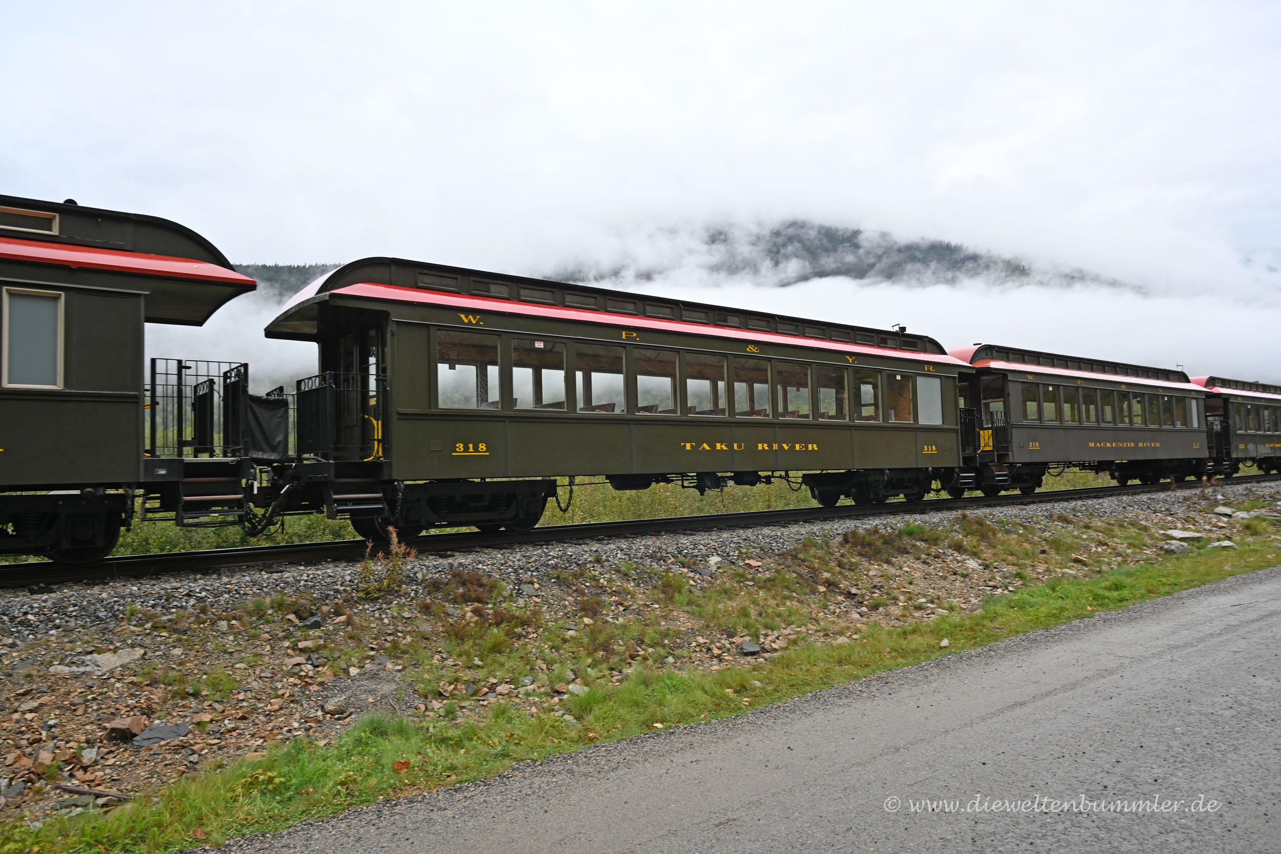 Mit dem Zug kann man auch heute noch bis zum White Pass fahren, eine beliebte Ausflugsstrecke. Aber die Verbindung geht auch weiter und es besteht die Möglichkeit in gut dreieinhalb Stunden von Skagway bis Whitehorse zu fahren.