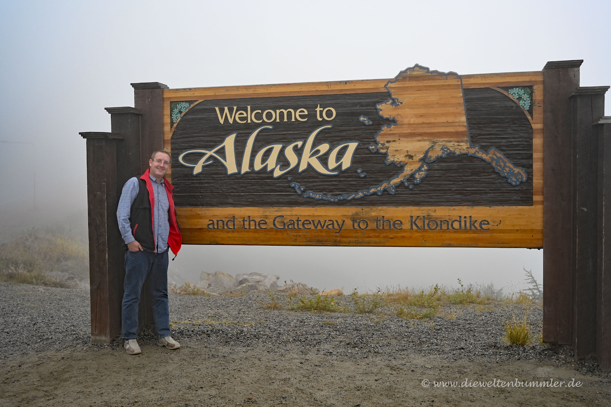 Doch nun stand ich dort am Welcome Sign von Alaska und gleich dahinter sollte die kleine Hafenstadt Skagway zu sehen sein. Das mit der Sicht war allerdings schwierig, denn es gab Nebel und schlechtes Wetter. Egal, denn es war Alaska und hier darf es so sein.
