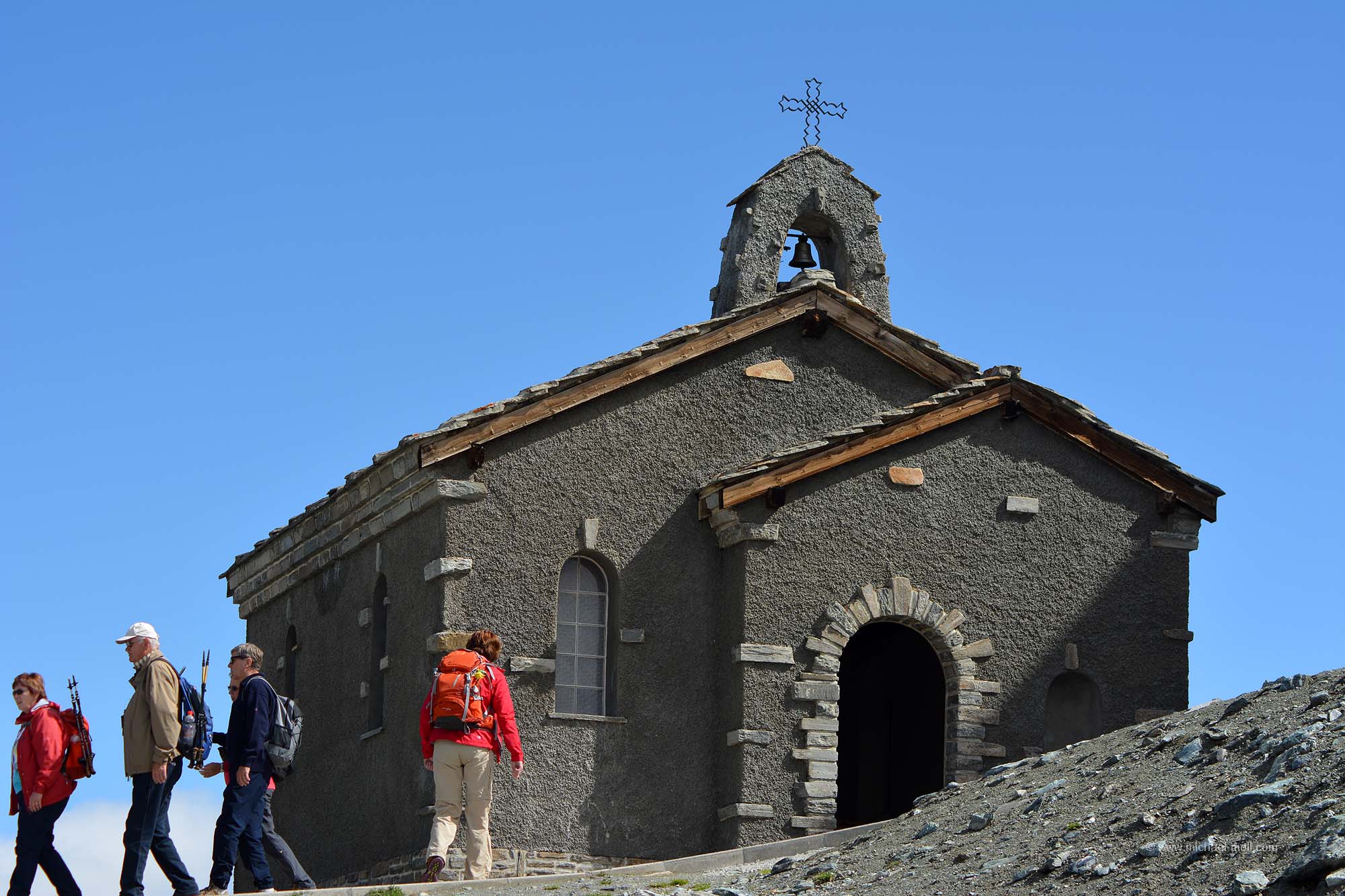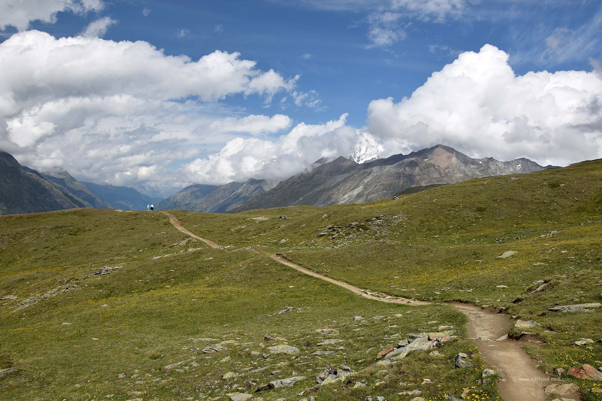 Leider wehte ein laues Lüftchen, was die Wasseroberfläche leicht zum Kräuseln brachte. Der Riffelsee befindet sich in einer Höhe von 2.770 Metern, das heißt, die ersten 300 Höhenmeter hat man dann bereits hinter sich. Von dort verlaufen mehrere Wanderwege ganz gemütlich zur Haltestelle Riffelberg, die auf einer Höhe von 2.580 Metern liegt. Mit ein bisschen Glück trifft man dort sogar auf Murmeltiere.
