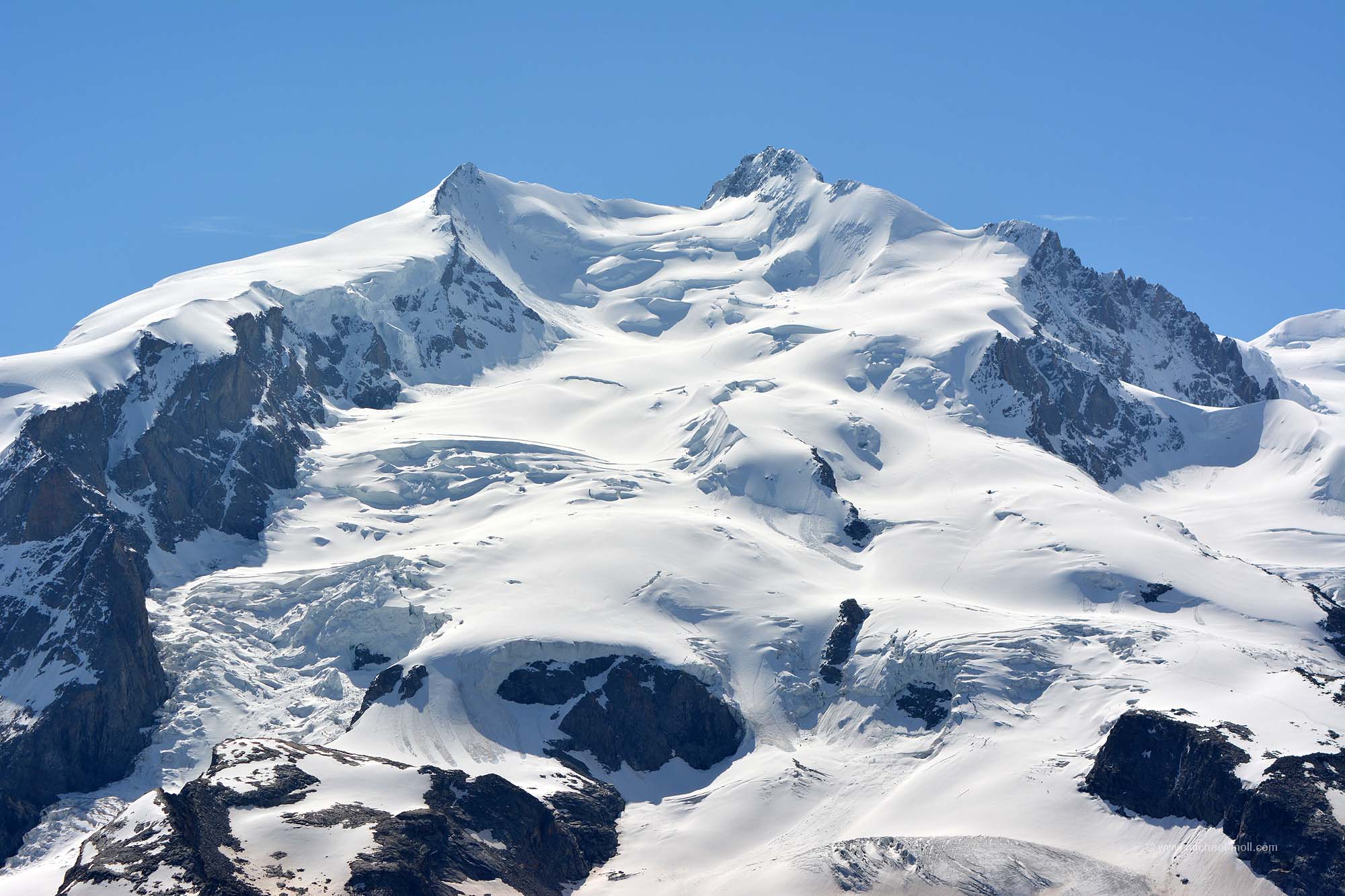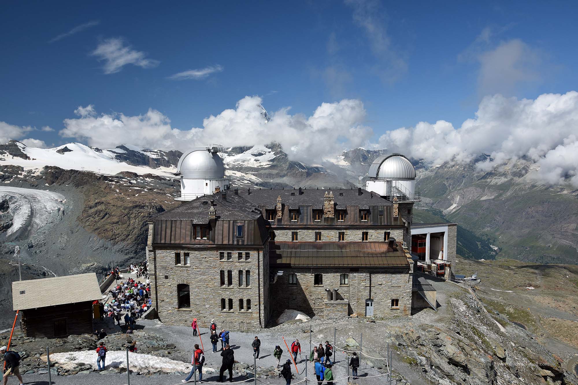 Schon unterwegs hat man auf der rechten Seite der Bahn einen tollen Ausblick auf das 4.478 Meter hohe Matterhorn. Doch das ist nicht der einzige 4.000er, den man vom Gornergrat aus sehen kann. Insgesamt sind es mehr als 20 Gipfel, die über 4.000 Meter hoch sind, die sich rund um den Gornergrat erheben. Dazu zählt dann auch die bereits erwähnte Dufourspitze, die mit ihren 4.634 Metern der höchste Berg der Schweiz ist.