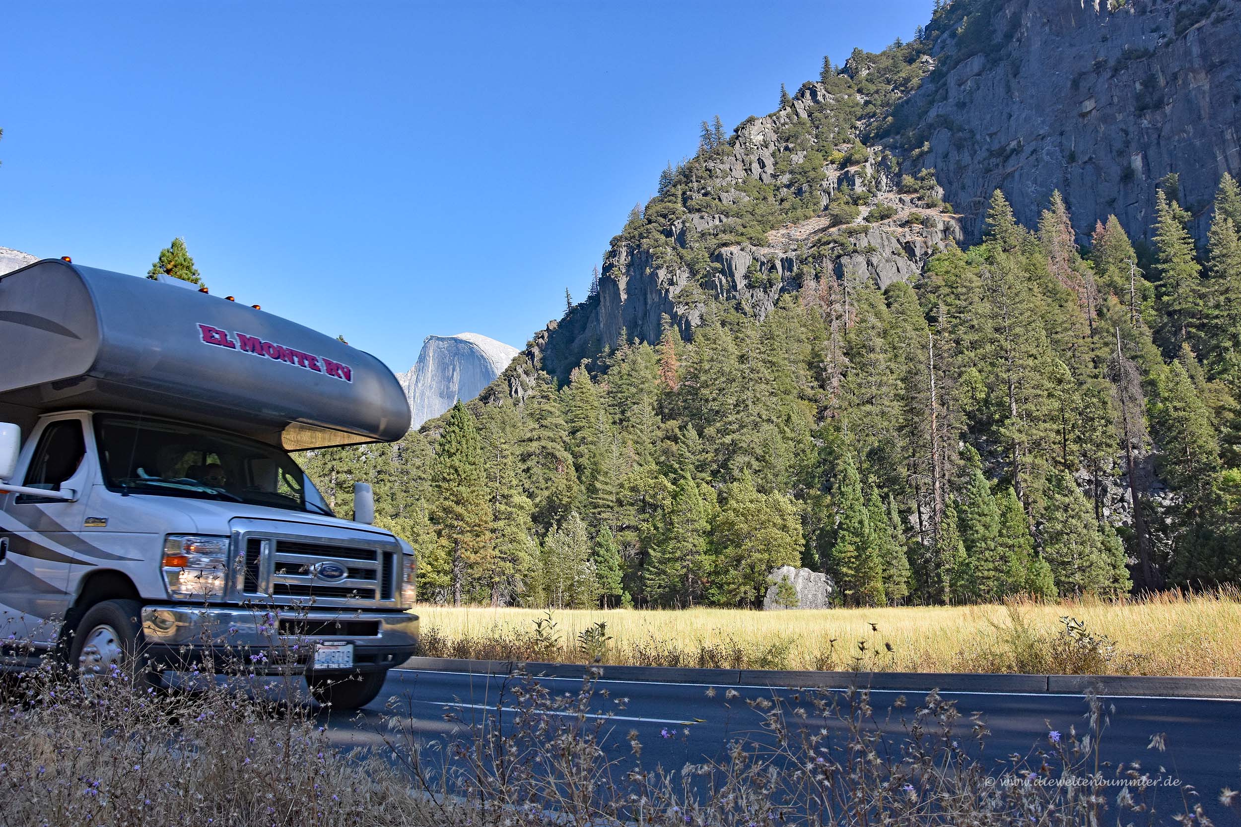 Traumhaft schön war es im Yosemite-Nationalpark in Kalifornien. Zugegeben, streng genommen gilt das für fast jeden Nationalpark in den USA. Wir hatten ja auf unserer Reise mit dem Mietwagen durch die USA einige besucht. Und hier kommen wir schon gleich zum ersten Punkt: Der Yosemite-Nationalpark ist so dermaßen groß, das durch einen Teil des Park eine große, gut ausgebaute Straße hineinführt.
