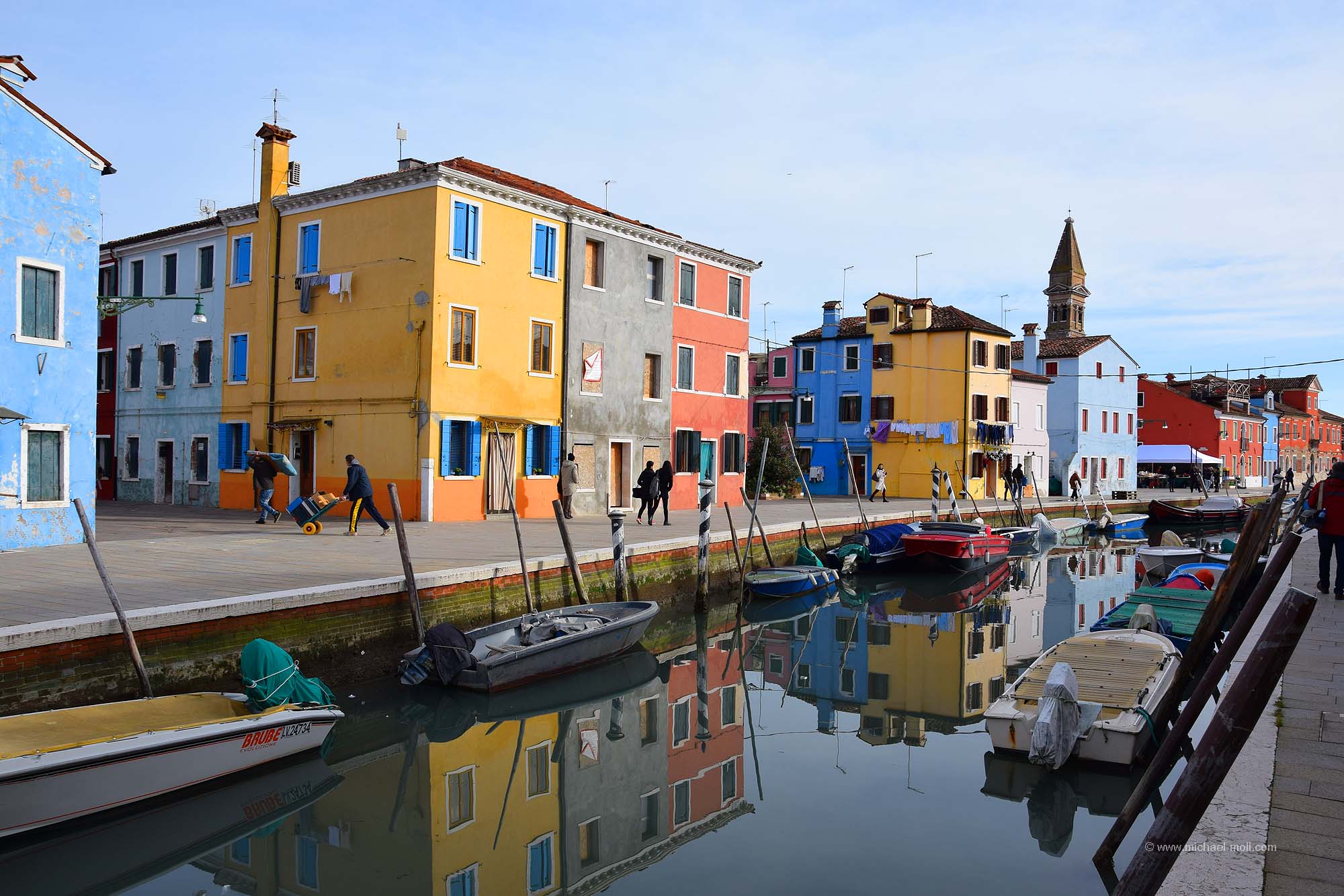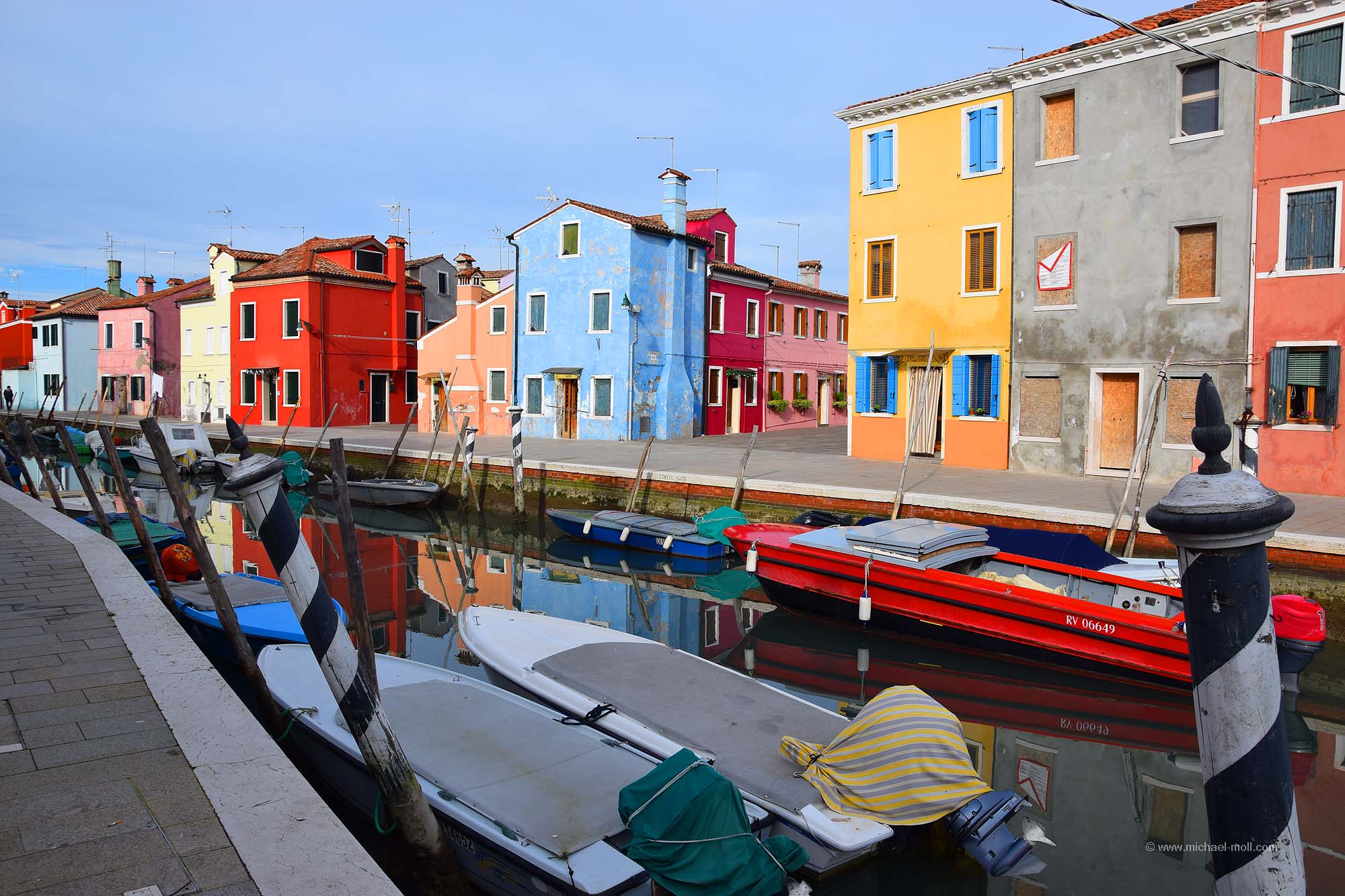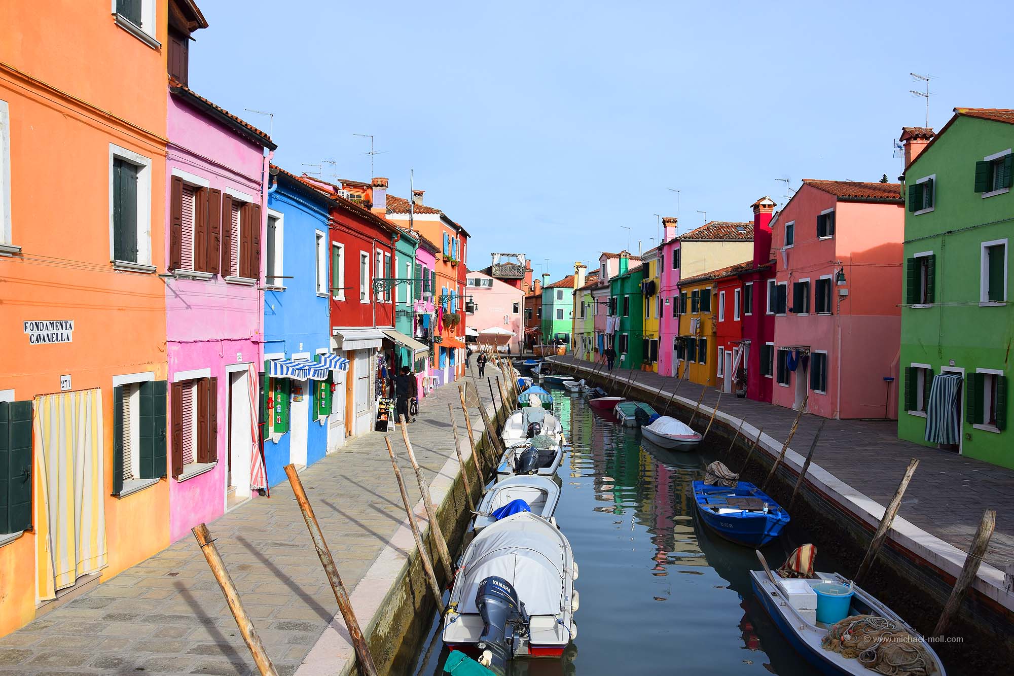 Es macht wirklich Spaß, an den farbenfrohen Häusern entlang zu schlendern und das nicht nur am Kanal, sondern auch in den Gassen, die die Kanäle miteinander verbinden und zu der einen oder anderen Piazza führen. Kaum ein Haus gleicht dem anderen und jeder Hausbesitzer scheint mit der Farbe seiner Fassade etwas ausdrücken zu wollen. Alleine dadurch ist Burano schon ein beliebtes Motiv bei Malern und Fotgrafen.