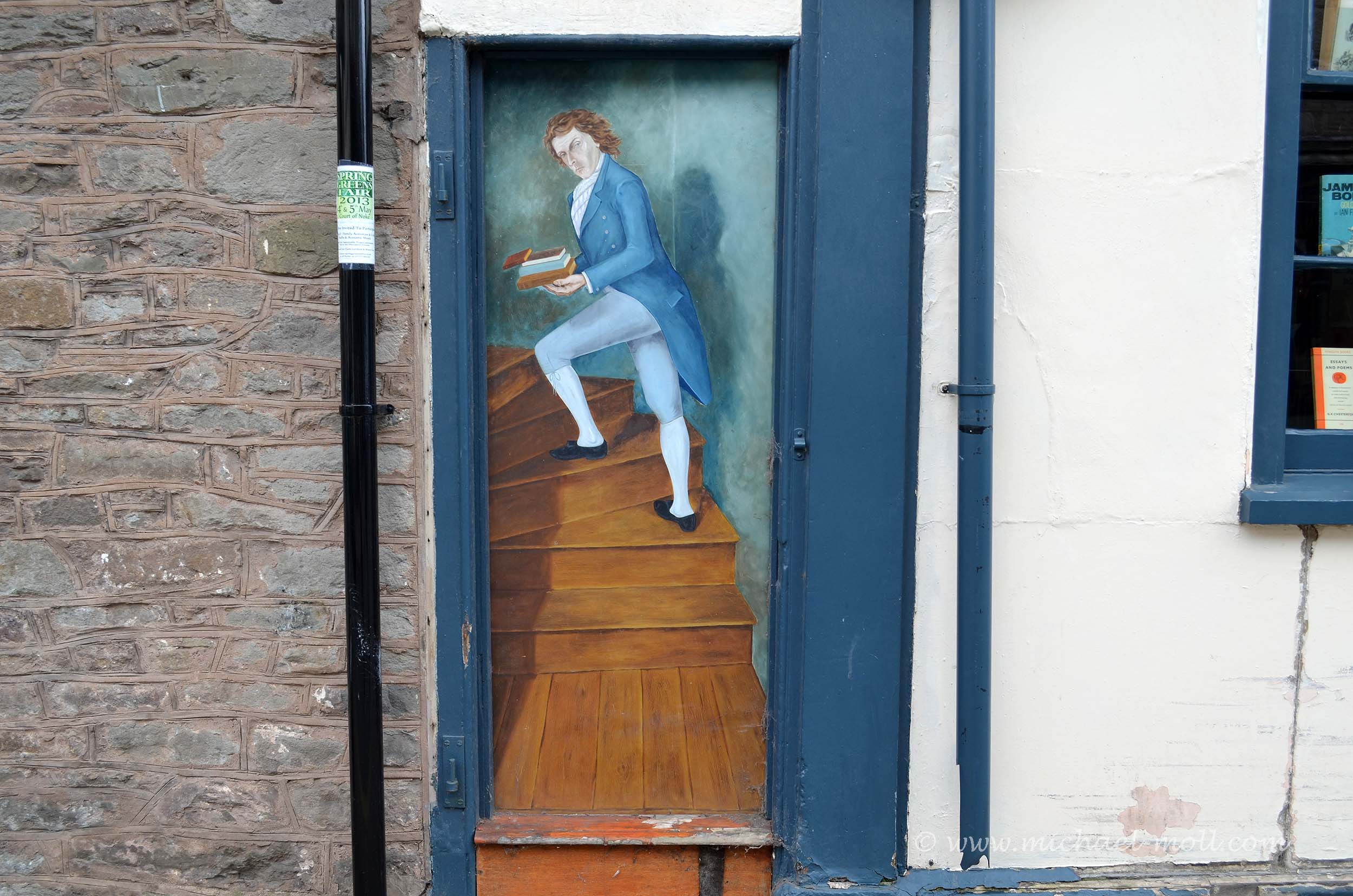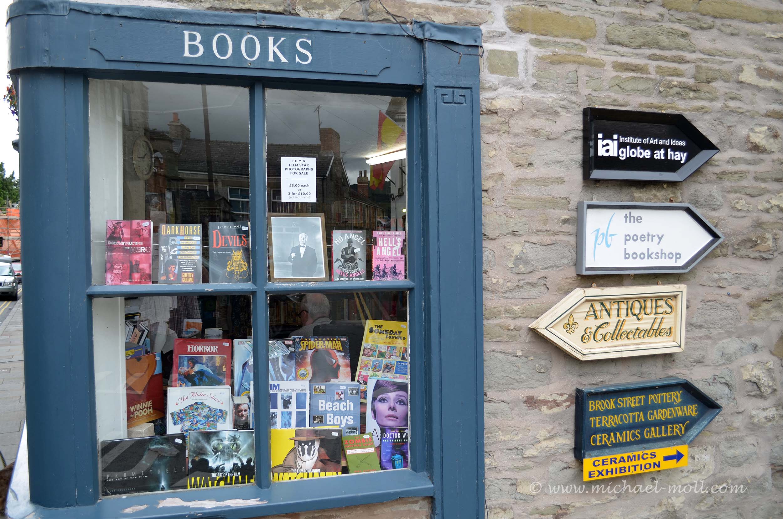 Hay-on-Wye ist die Mutter aller Bücherdörfer, denn schon im Jahr 1961 wurde diese Idee verwirklicht. Initiator war der Buchhändler Richard Booth. Beim Spaziergang durch den Ort traf ich auch auf sein Antiquariat. Jetzt sollte man meinen, dass das in einem kleinen Ort wie Hay-on-Wye nicht so schwierig sein dürfte. Aber dabei darf man nicht vergessen, dass es mittlerweile ganze vierzig Buchläden und Antiquariate gibt, in denen man sich mit genug Lesestoff eindecken kann.