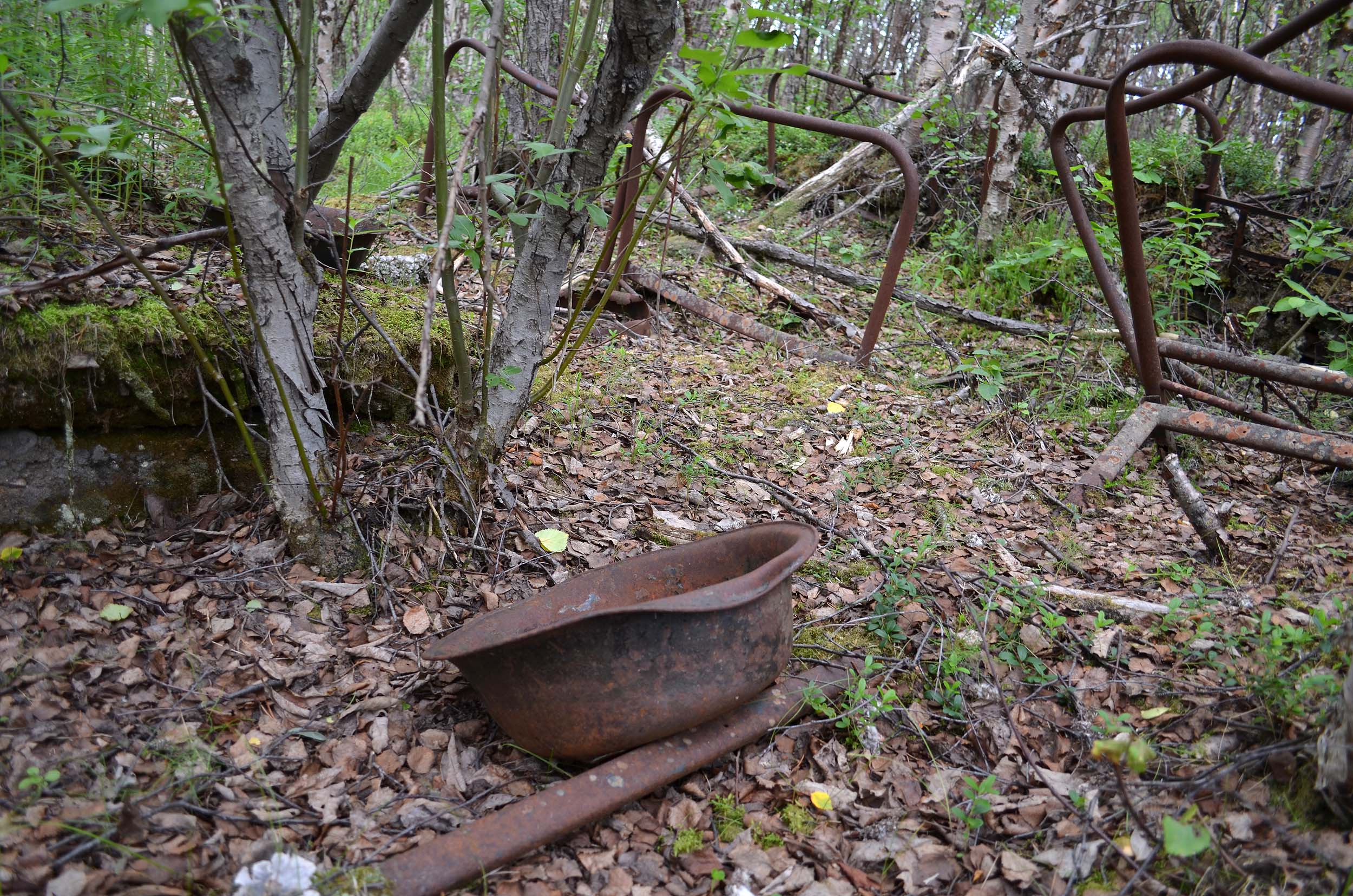 Dazu zählen zum Beispiel rostige Schüsseln, überwucherte Bettgestelle und sogar ein alter Pritschenwagen, der nur noch vom Rost zusammengehalten wird.