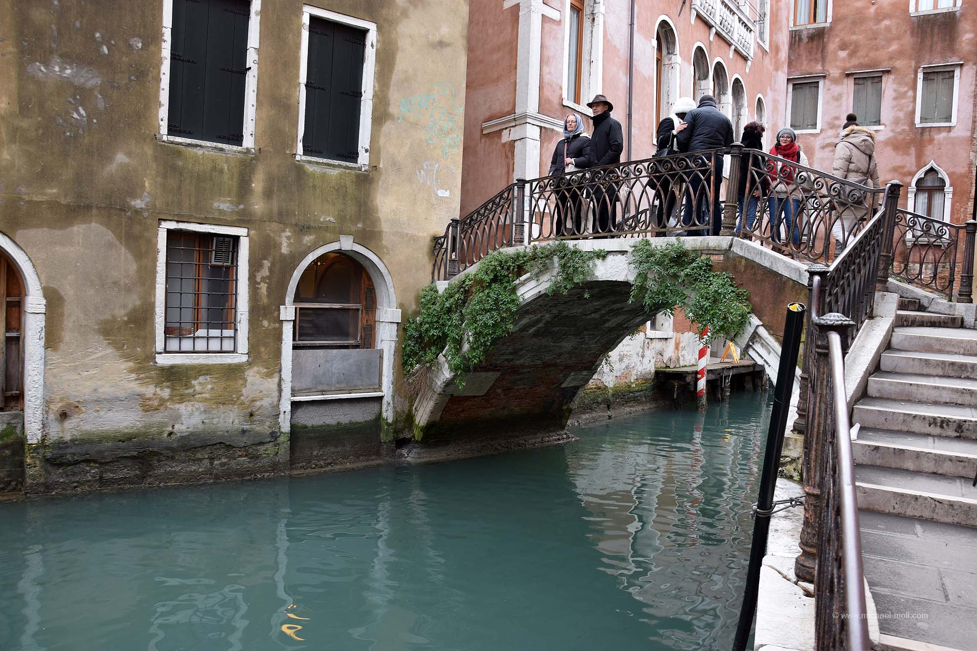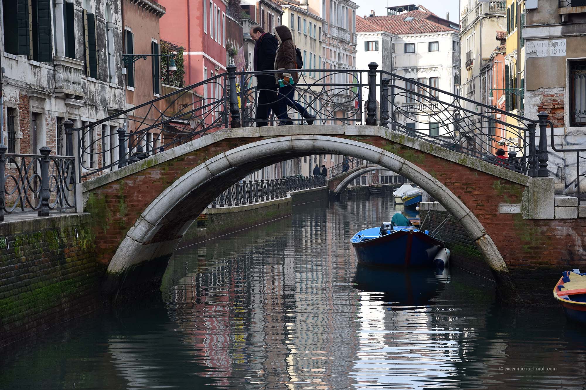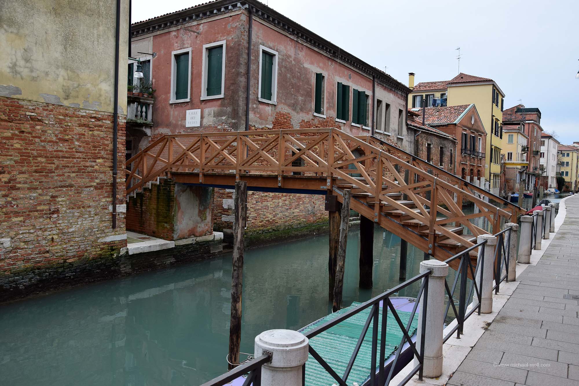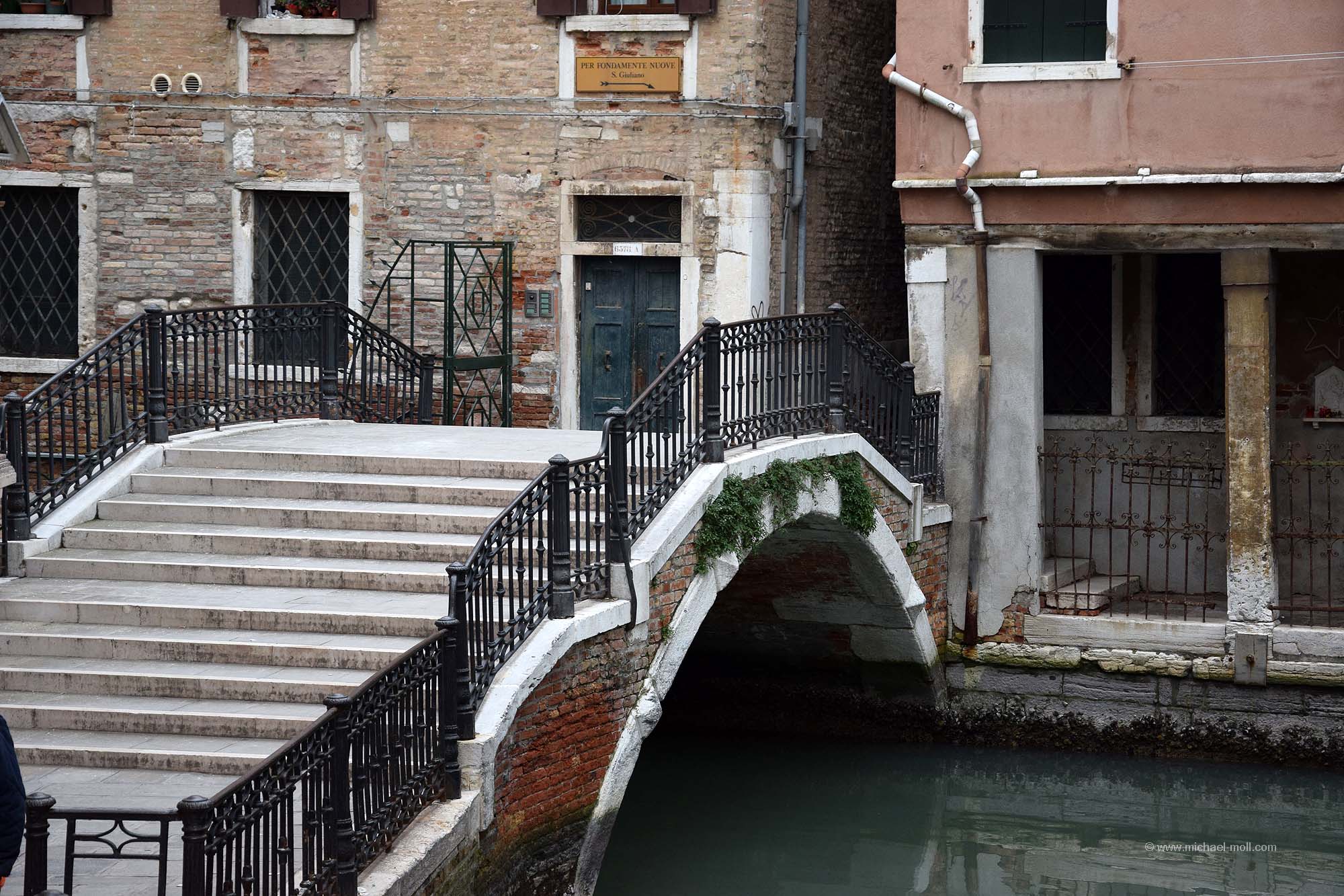 Viele der Brücken sind für die Öffentlichkeit bestimmt, aber es gibt auch Privatbrücken, die einen Kanal überspannen und direkt an einer Haustür enden. Diese haben dann in der Regel keinen Namen. Aber für viele andere habe ich mühsam die Namen der Brücken herausgesucht. Denn bei meinem Aufenthalt in Venedig habe ich rund 100 Brücken überquert oder zumindest gesehen. Alle Brücken, die in meiner Sichtweite waren, habe ich natürlich fotografiert. Das Ergebnis ist die folgende Bildergalerie, immerhin rund ein Viertel aller Brücken in Venedig. Und nein, auch wenn sich manche Brücken ähneln – es handelt sich um 99 verschiedene Brücken: