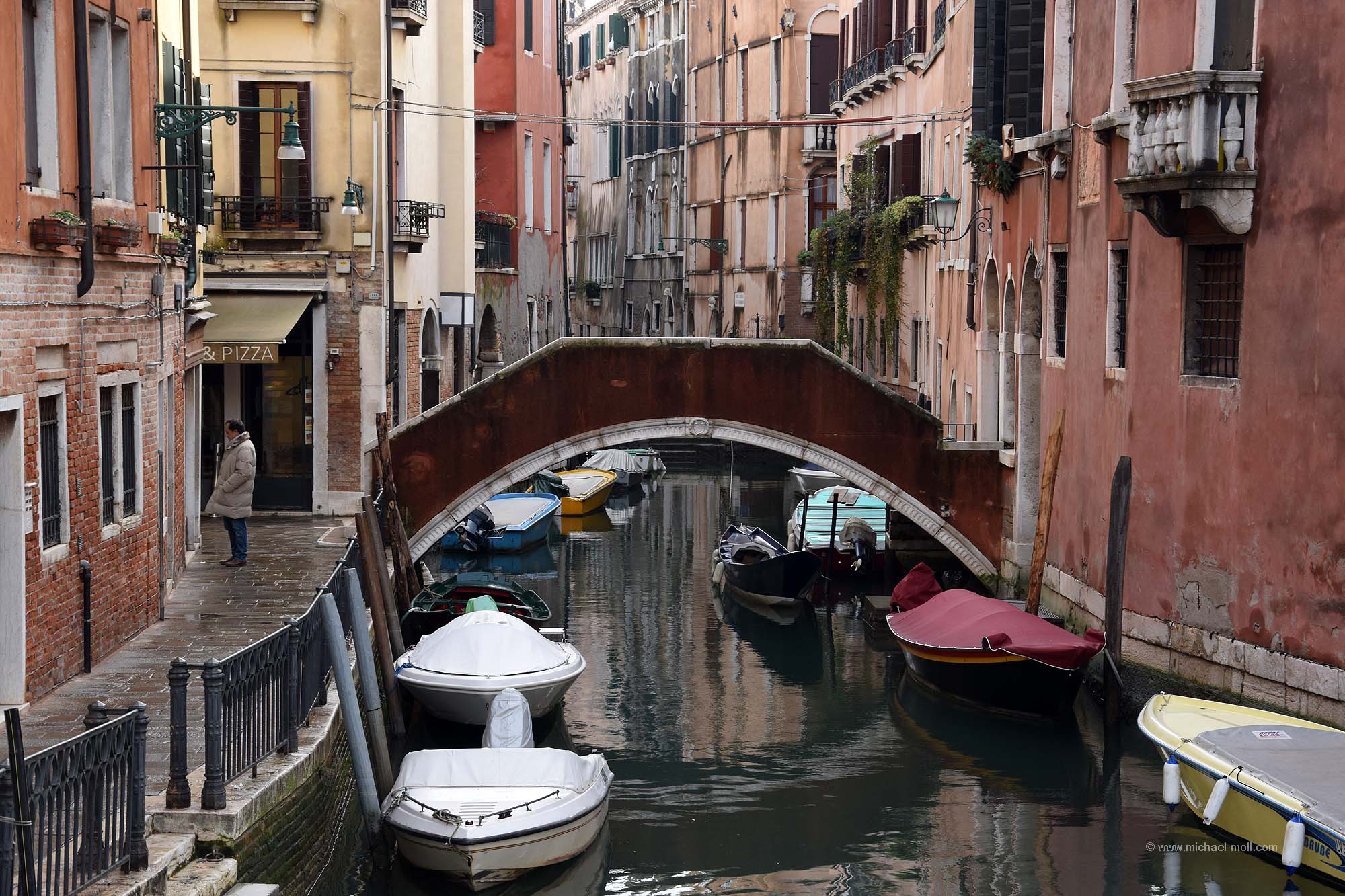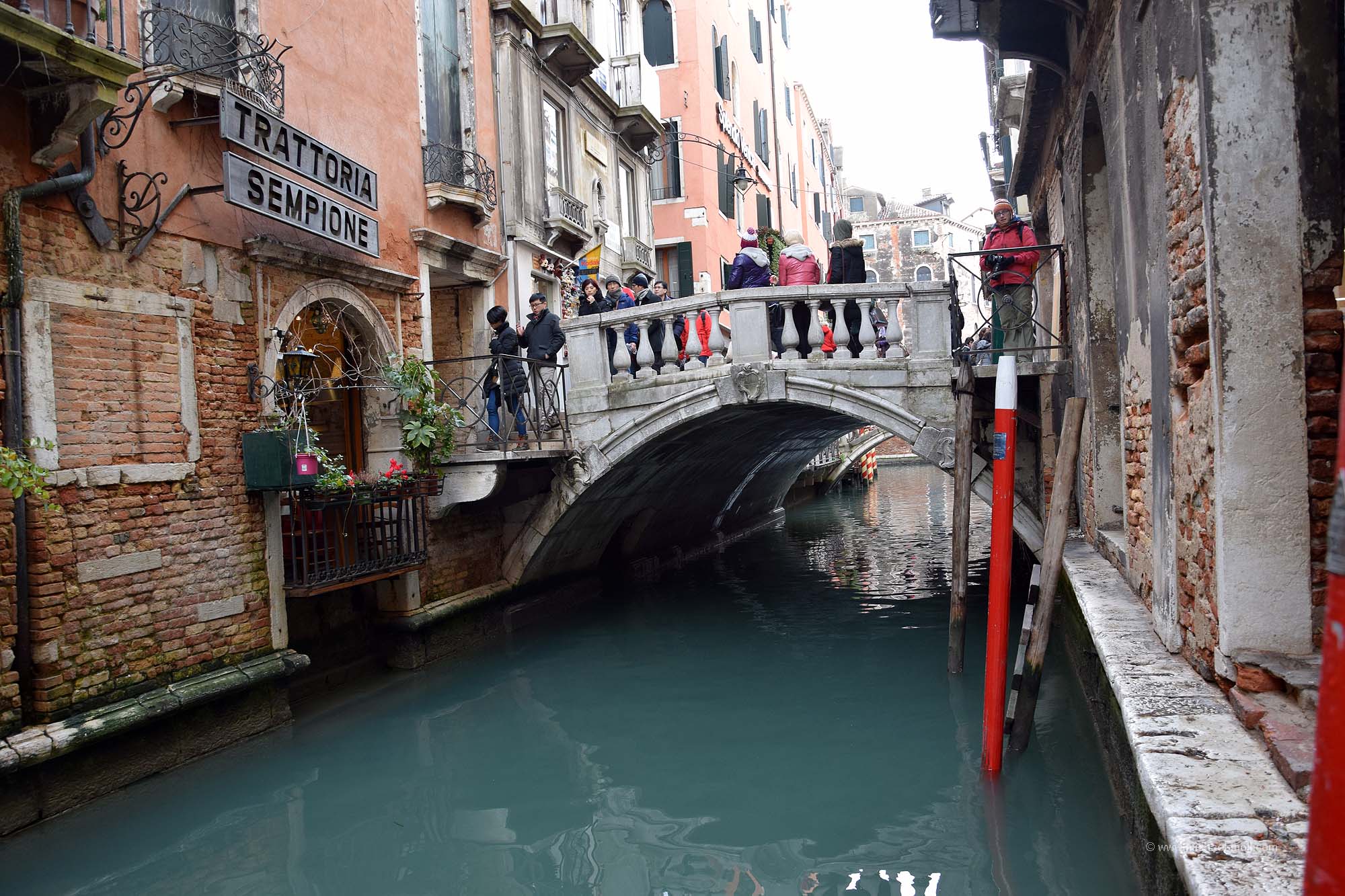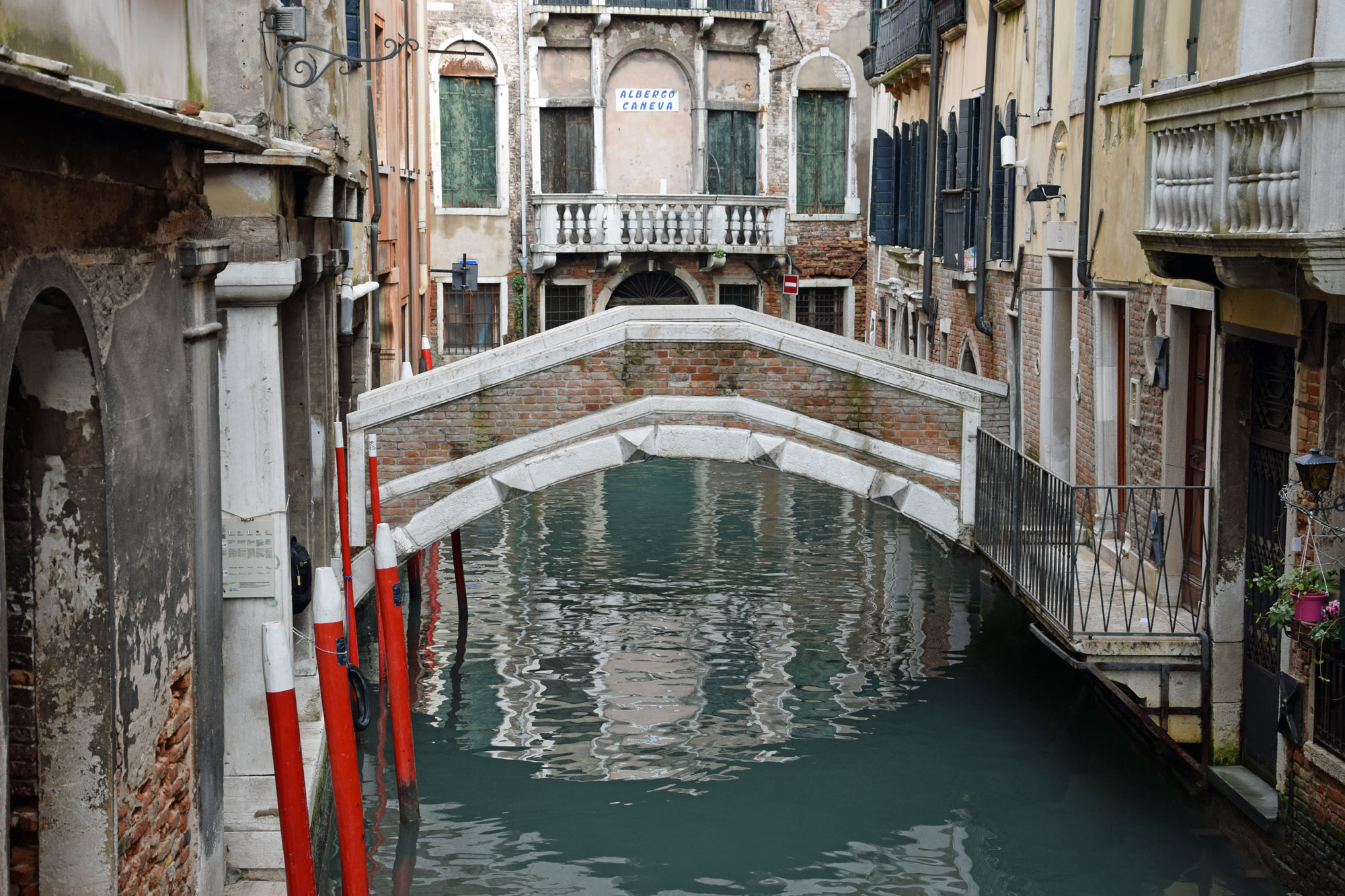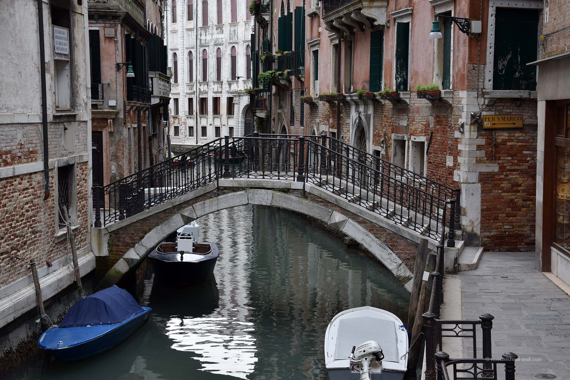 Viele der Brücken sind für die Öffentlichkeit bestimmt, aber es gibt auch Privatbrücken, die einen Kanal überspannen und direkt an einer Haustür enden. Diese haben dann in der Regel keinen Namen. Aber für viele andere habe ich mühsam die Namen der Brücken herausgesucht. Denn bei meinem Aufenthalt in Venedig habe ich rund 100 Brücken überquert oder zumindest gesehen. Alle Brücken, die in meiner Sichtweite waren, habe ich natürlich fotografiert. Das Ergebnis ist die folgende Bildergalerie, immerhin rund ein Viertel aller Brücken in Venedig. Und nein, auch wenn sich manche Brücken ähneln – es handelt sich um 99 verschiedene Brücken:
