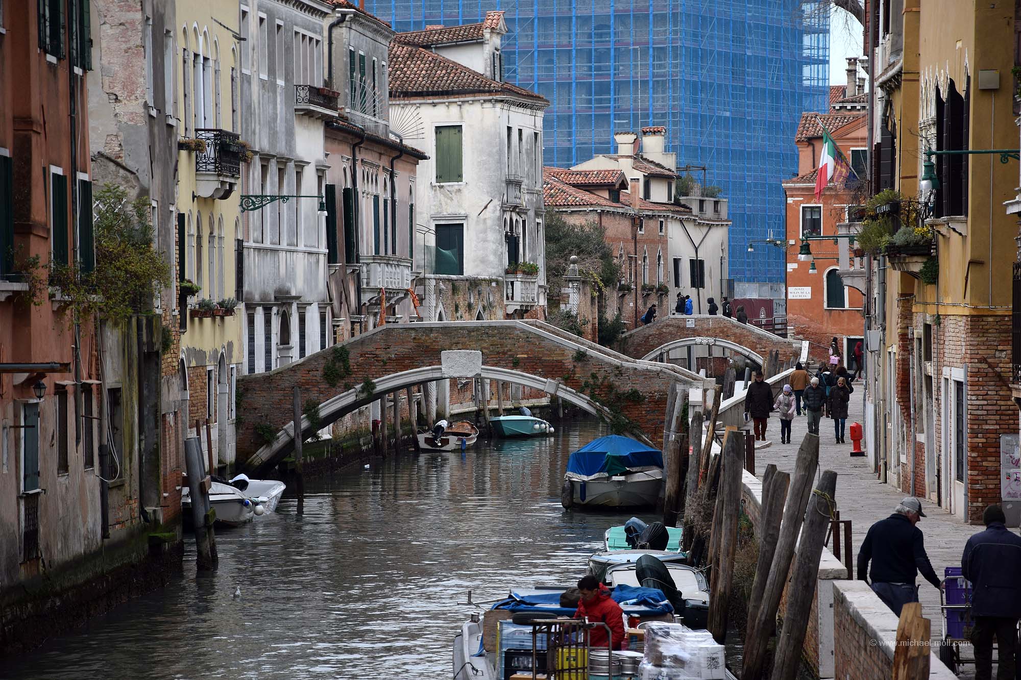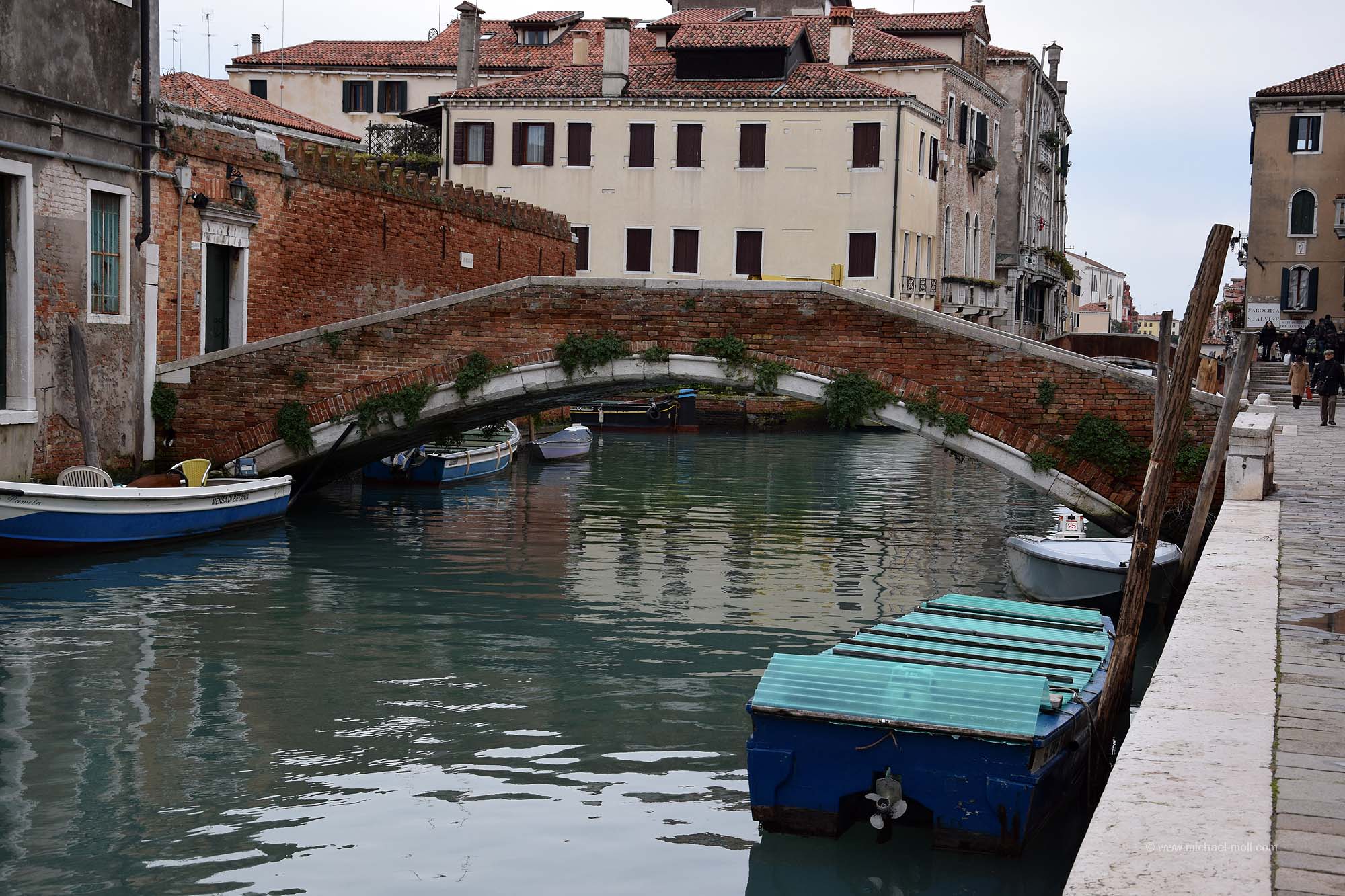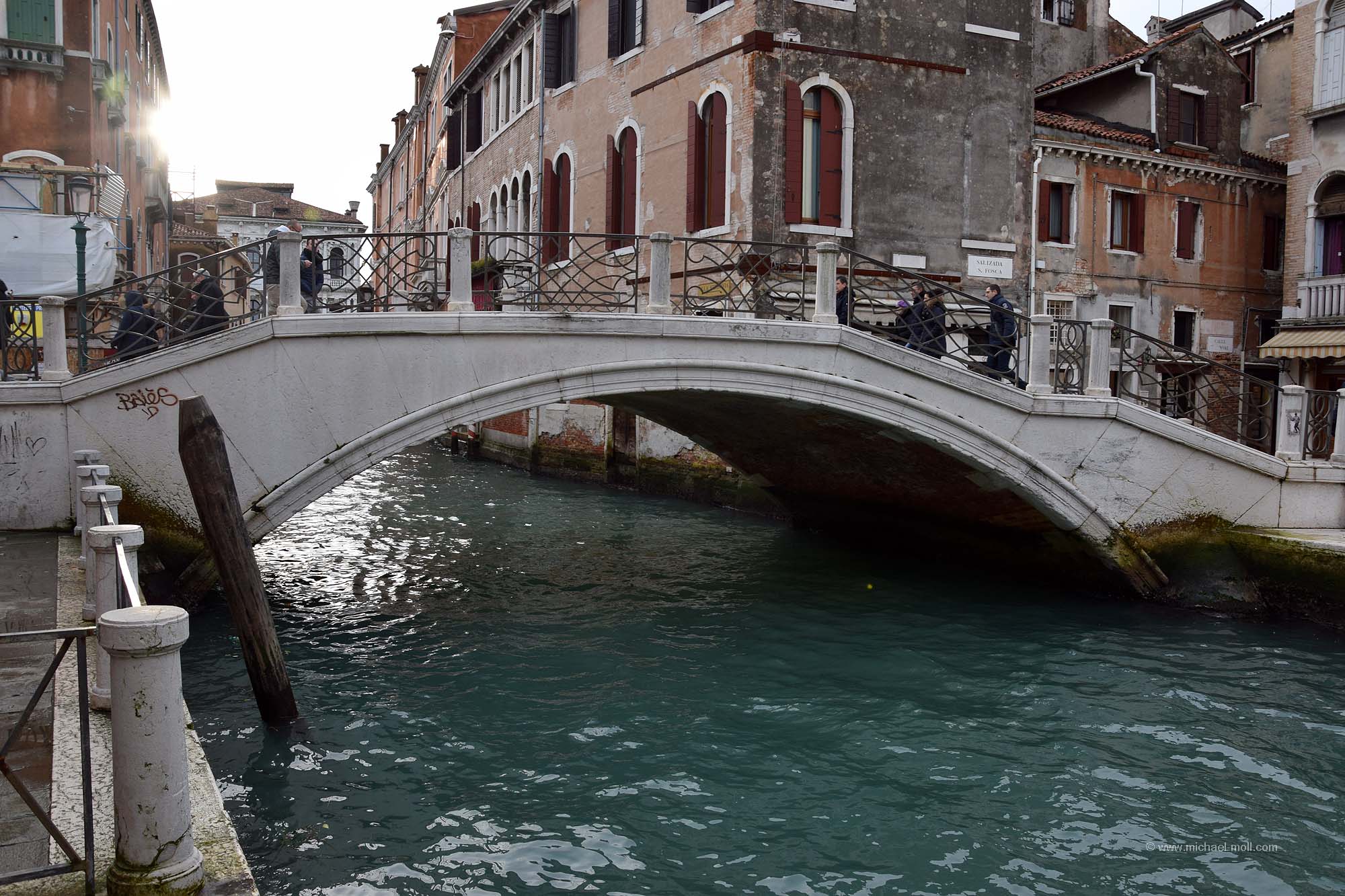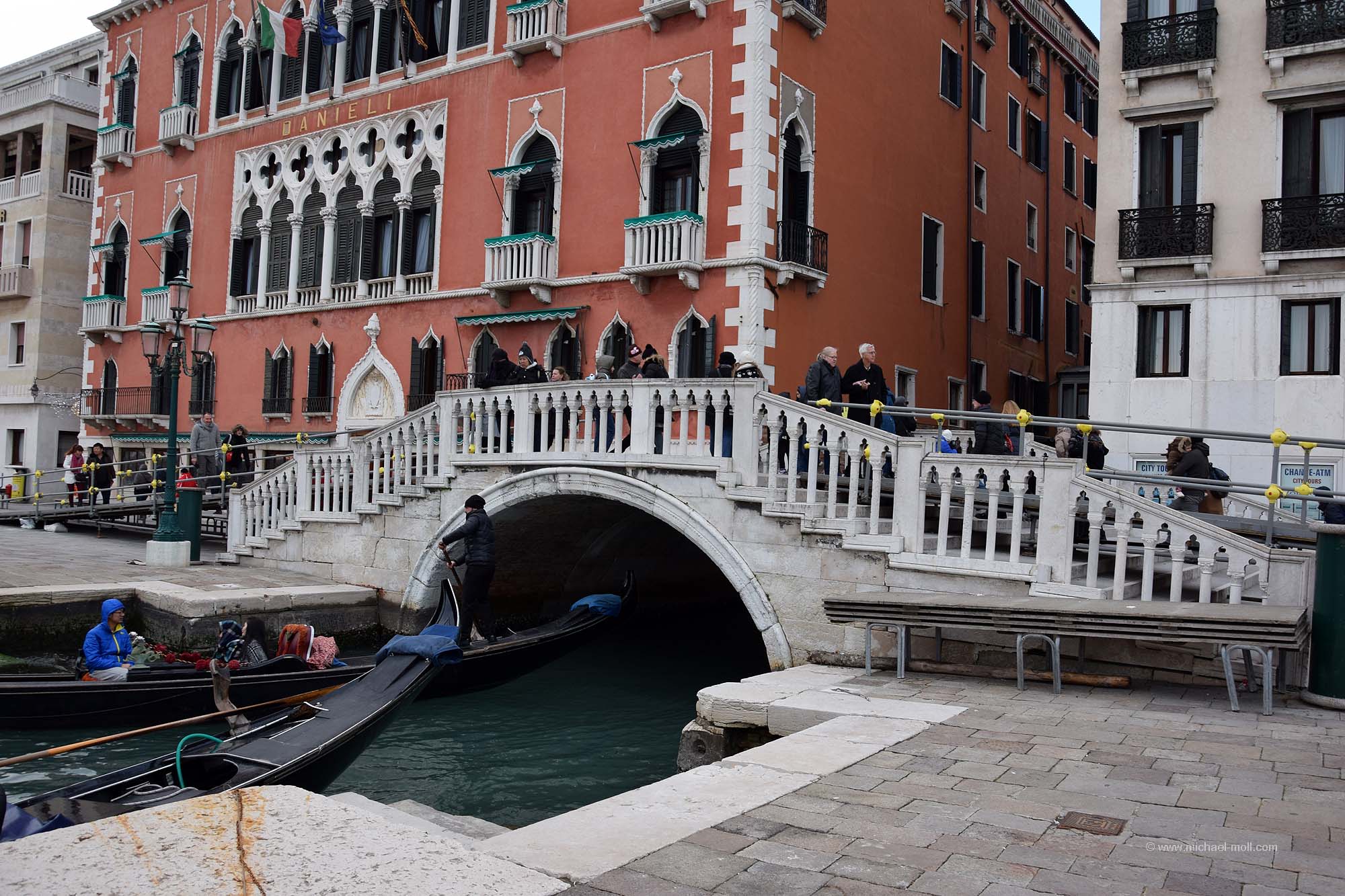 Die Angaben über die Anzahl der Brücken Venedigs sind leicht schwankend. Mal wird von 398 Brücken geschrieben, die in Venedig die Kanäle überspannen und woanders steht etwas von 435 Brücken. Genau festmachen kann man die Anzahl wohl sowieso nicht, weil sich die Zahl immer wieder mal verändern wird. Entweder kommt eine neue Brücke hinzu, so wie die repräsentative Ponte della Costituzione, die erst im Jahr 2008 eingeweiht oder es verschwindet vielleicht auch mal eine Brücke, weil ein Kanal trockengelegt wurde.