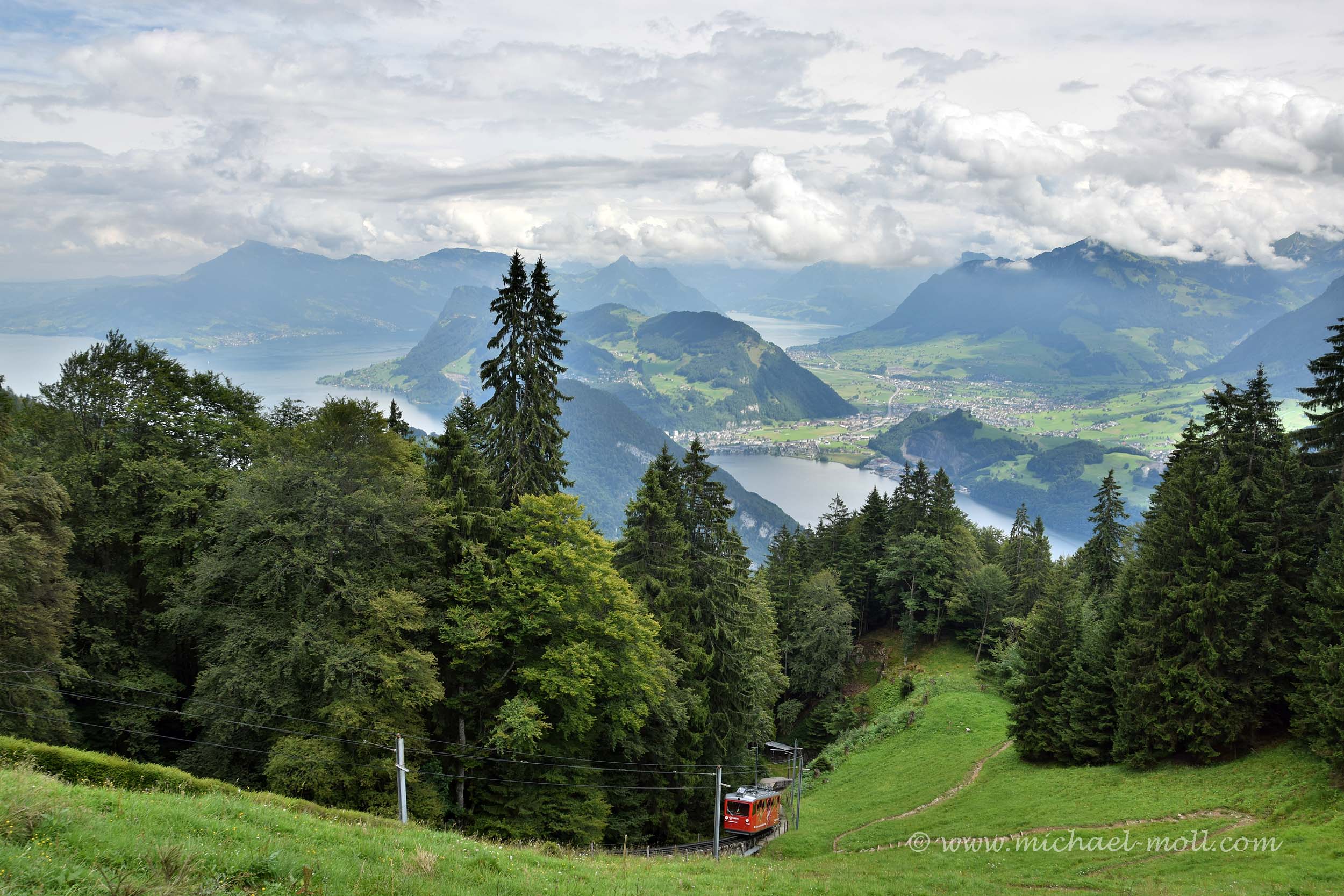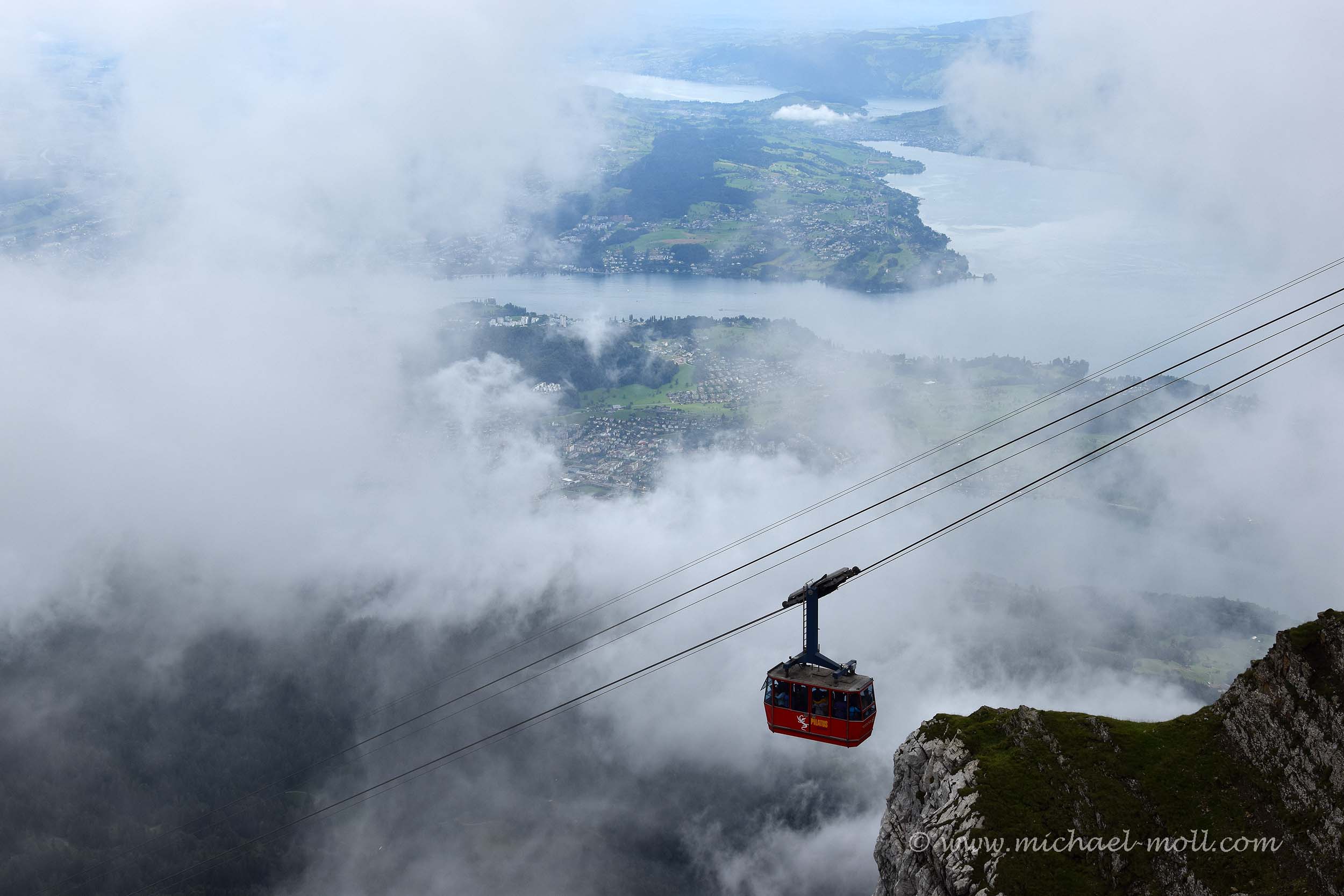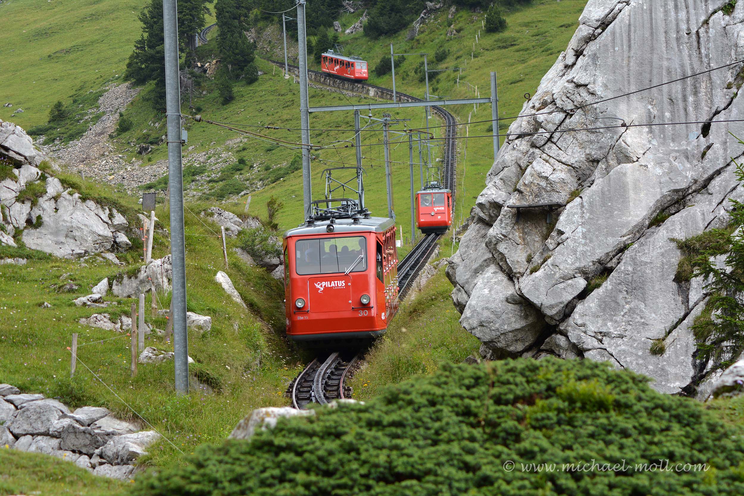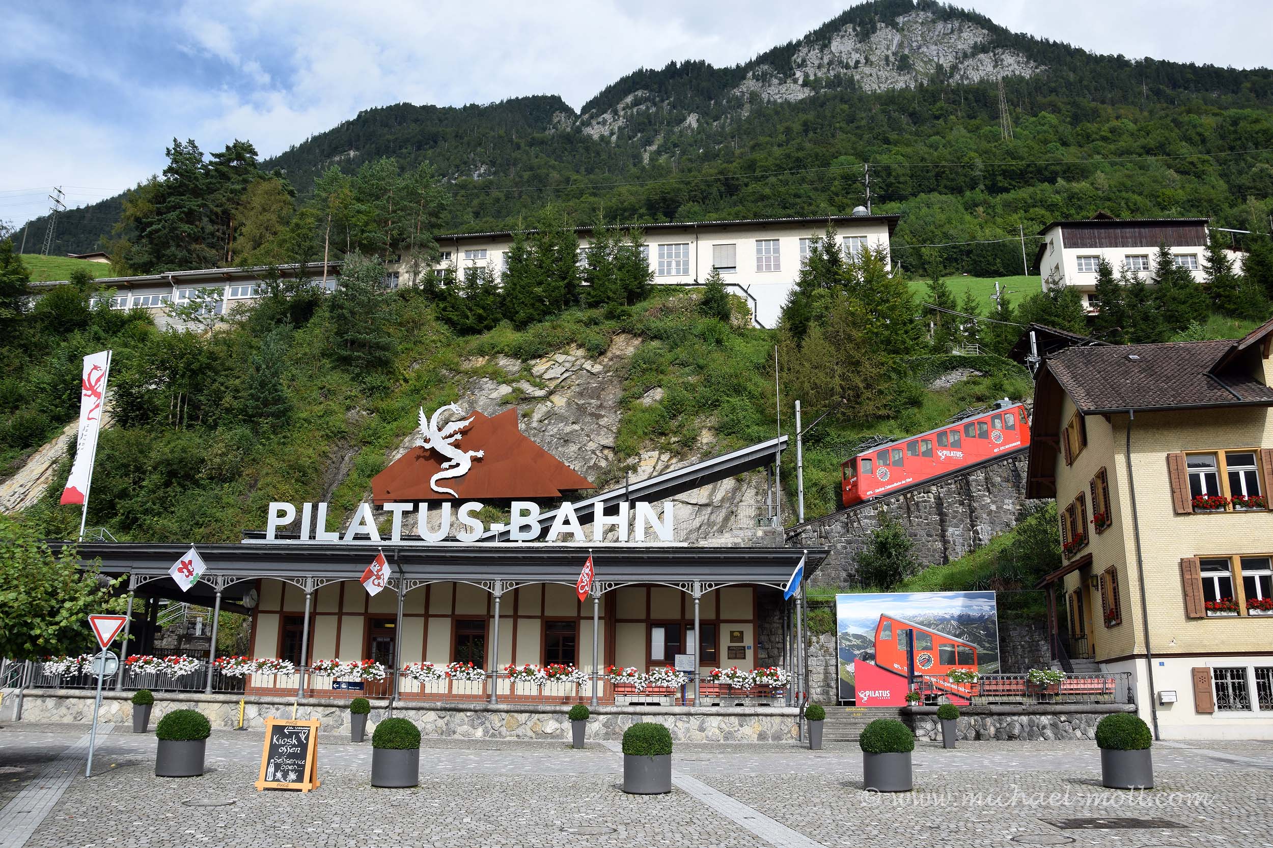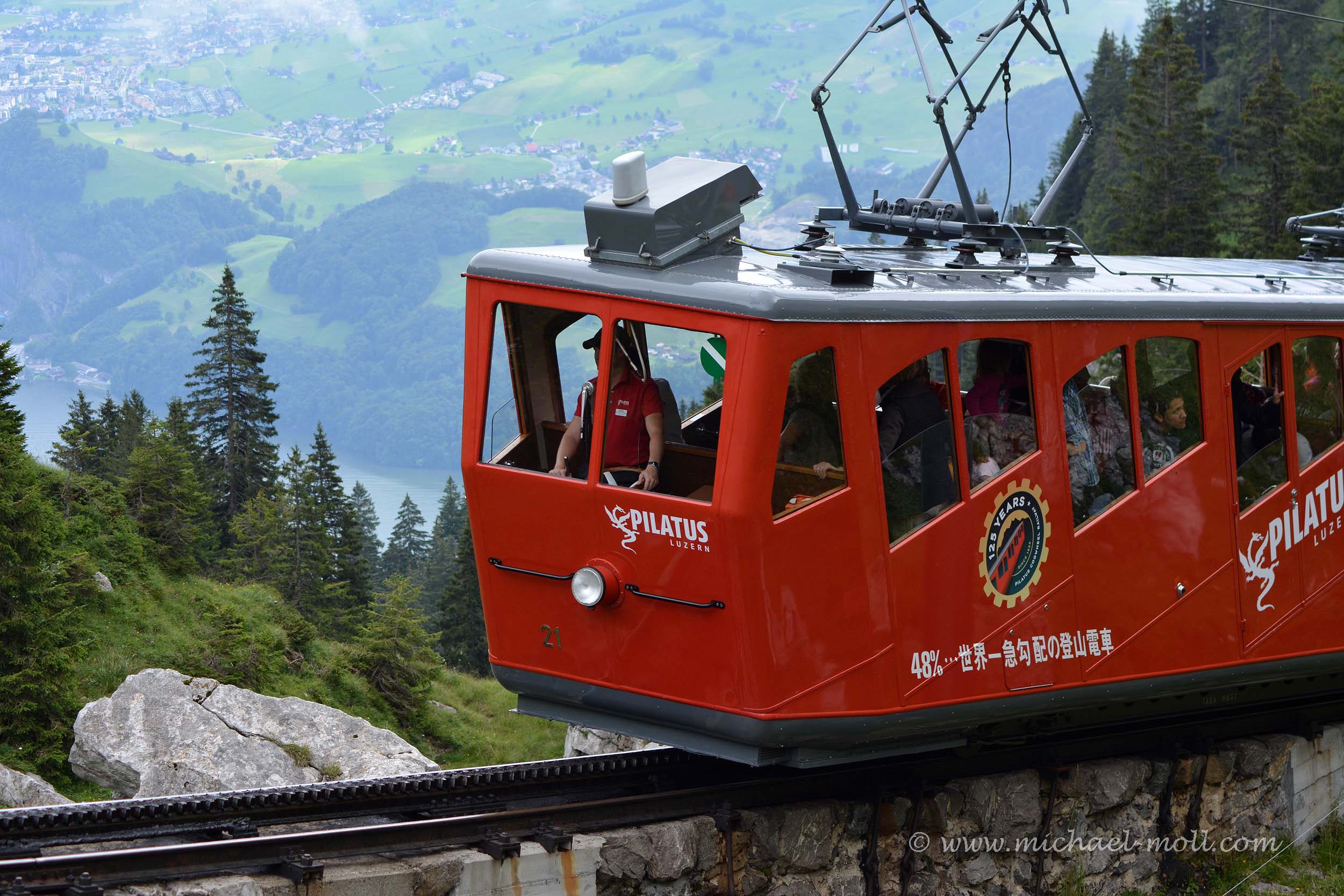 Bei Luzern am Vierwaldstättersee befindet sich die, nach eigenen Angaben, steilste Zahnradbahn der Welt. Sie führt hinauf das Massiv des Pilatus, dem Hausberg der Stadt. Nachdem ich ja nun schon mit der Zahnradbahn auf den Snowdon in Wales, zum Jungfraujoch und zum Gornergrat gefahren bin, ließ ich mir den Spaß während der Reise mit dem Wohnmobil durch die Schweiz natürlich nicht entgehen.