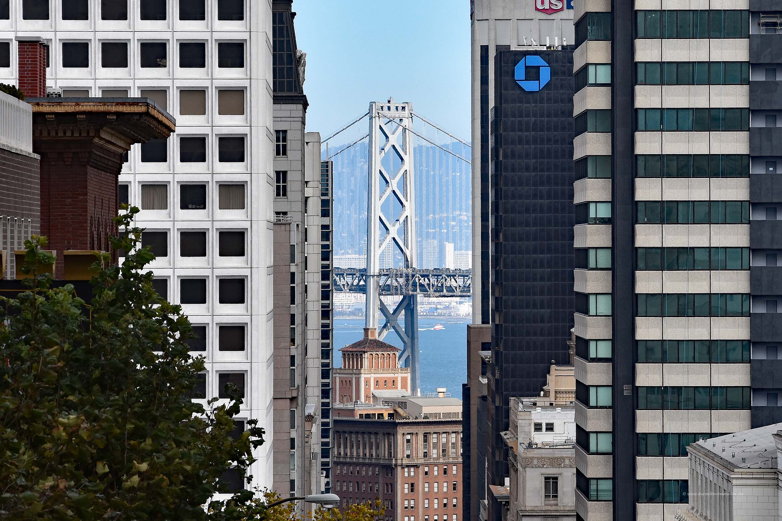Wir erreichten die Stadt von Oakland kommend über die Bay Bridge. Auf der Brücke, die die Bucht von San Francisco überspannt, verläuft die Interstate 80. Noch vor der Brücke, also auf der Seite von Oakland, befindet sich eine Mautstation. An einer von 20 Mauthäuschen kann man die Fahrt über die Brücke und damit den Eintritt in die Stadt bezahlen.