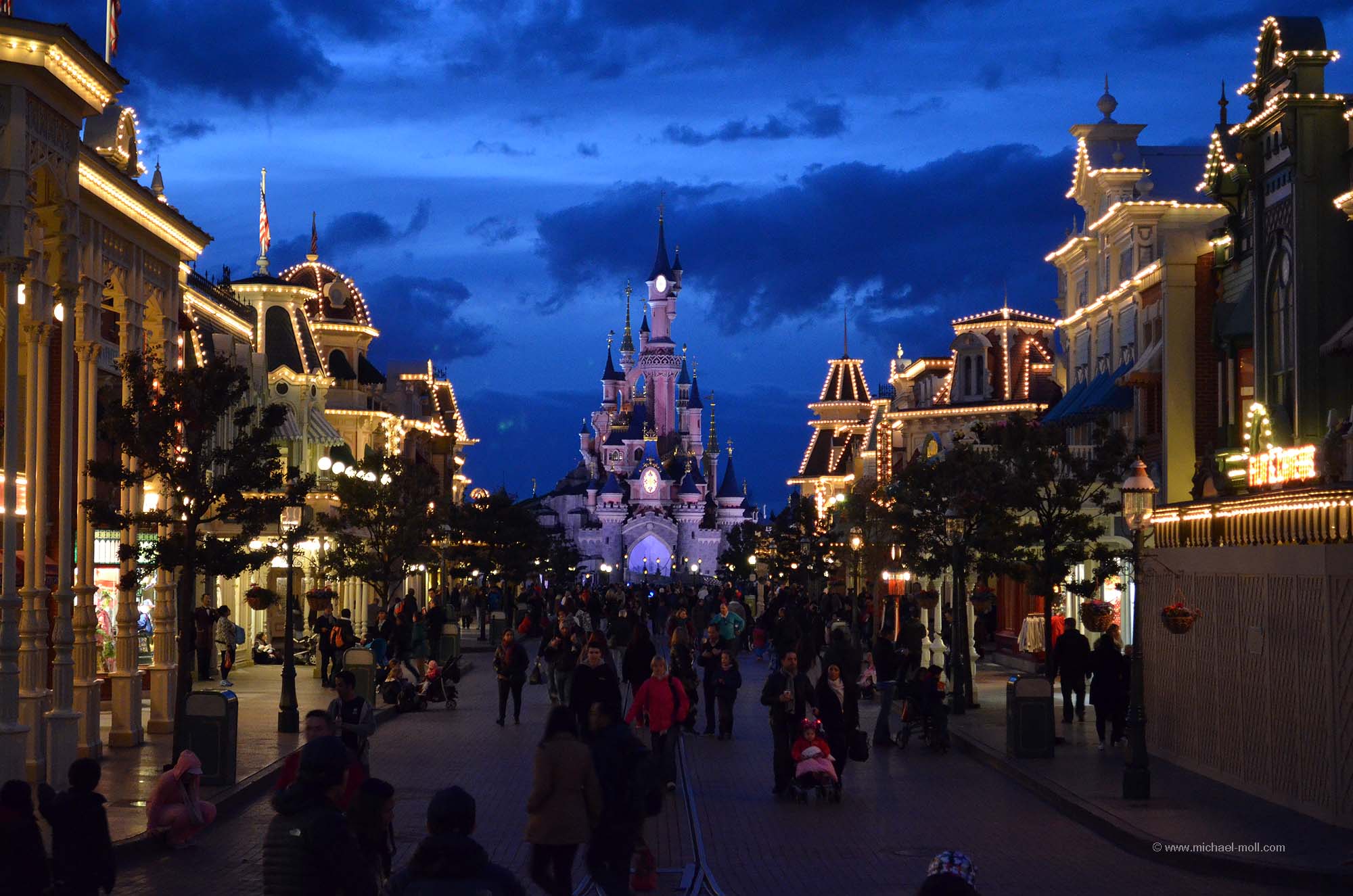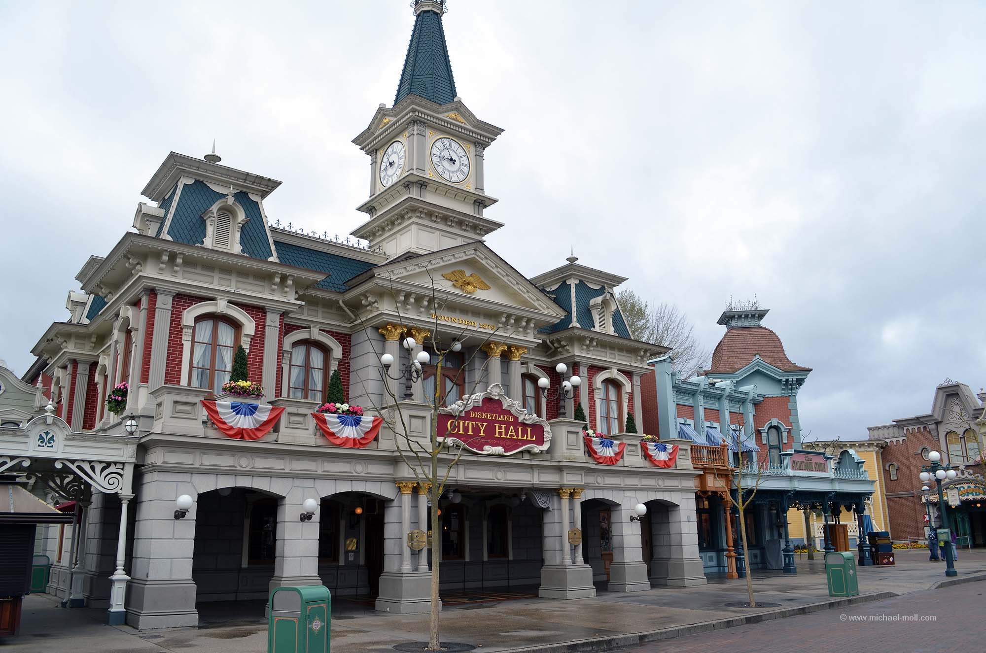 Geht man durch eines der vielen Eingangstore hindurch, so betritt man schon den ersten der fünf Themenbereiche, nämlich die sogenannte Main Street USA. Auf der linken Seite befindet sich ein historisch nachempfundenes Rathaus, in dem eine Art Tourismusinformation untergebracht ist. Geradeaus schlendert man an zahlreichen Geschäften, Boutiqen, Restaurants und Bars vorbei, in denen man sich mit unzähligen Souveniren eindecken kann. Die Fassaden der Gebäude und auch die Taxen und die Straßenbahn, die auf der Main Street verkehren, erinnern an die Zeit der Jahrhundertwende. Schon alleine hier kann man sich ewig aufhalten. Allerdings empfehle ich den Besuch der Main Street bei eher schlechtem Wetter, weil sich vieles in den Gebäuden abspielt. Außerdem ist die Main Street auch Schauplatz für die täglich stattfindende Parade, die man auf keinen Fall verpassen sollte und für die man sich schon einige Zeit vorher einen schönen Platz suchen sollte.