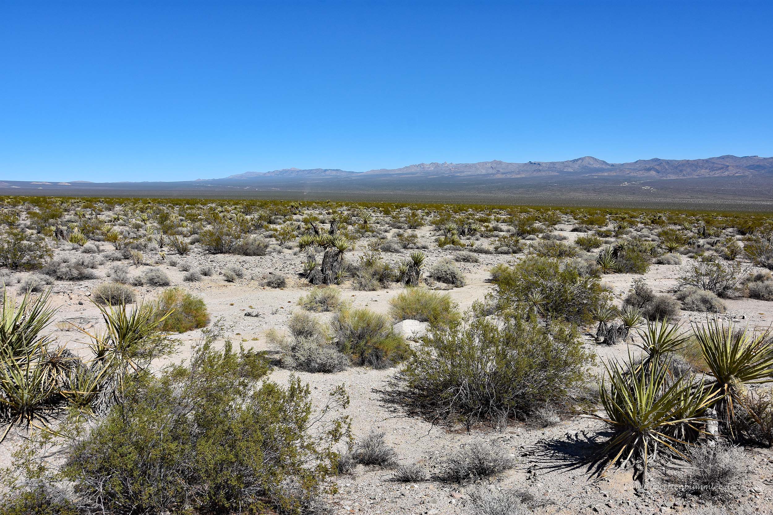 Die Mojave-Wüste im Westen der USA hat mich zugegebenermaßen auch ziemlich fasziniert. Ich stehe ja sowieso auf karge, weite Landschaften, ob sie nun in Patagonien, in der Mongolei oder im Norden Skandinaviens sind, spielt dabei keine Rolle. Und normalerweise bin ich ja eher für kühlere Regionen geschaffen, doch in der Mojave-Wüste ist es zwar sehr heiß, aber es herrscht eine trockene Luft.