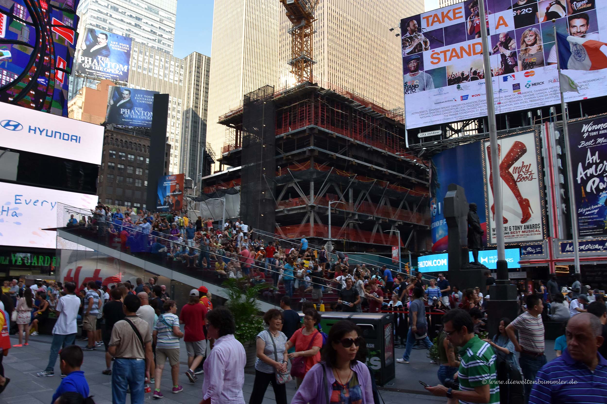 Der Times Square ist genauso, wie man ihn aus den Medien kennt und wie man ihn sich vorstellt: Laut, eng, voll, laut, etwas dunkel durch die Hochhäuser, laut, bunt durch die Werbetafeln und nicht zuletzt laut – falls ich das nicht schon erwähnt habe.