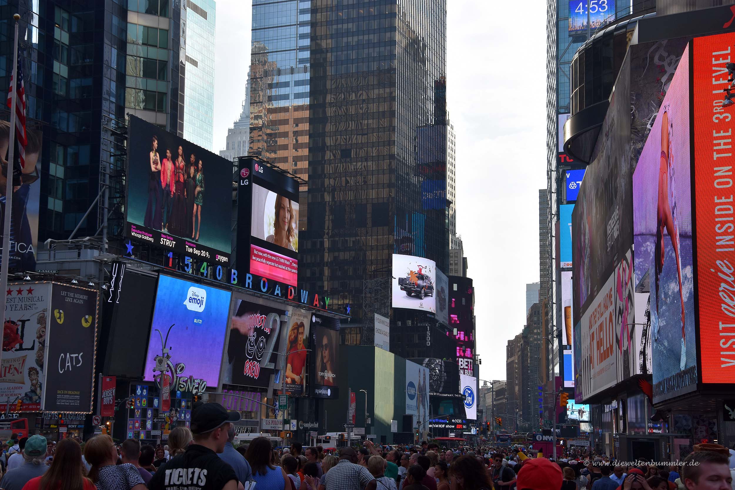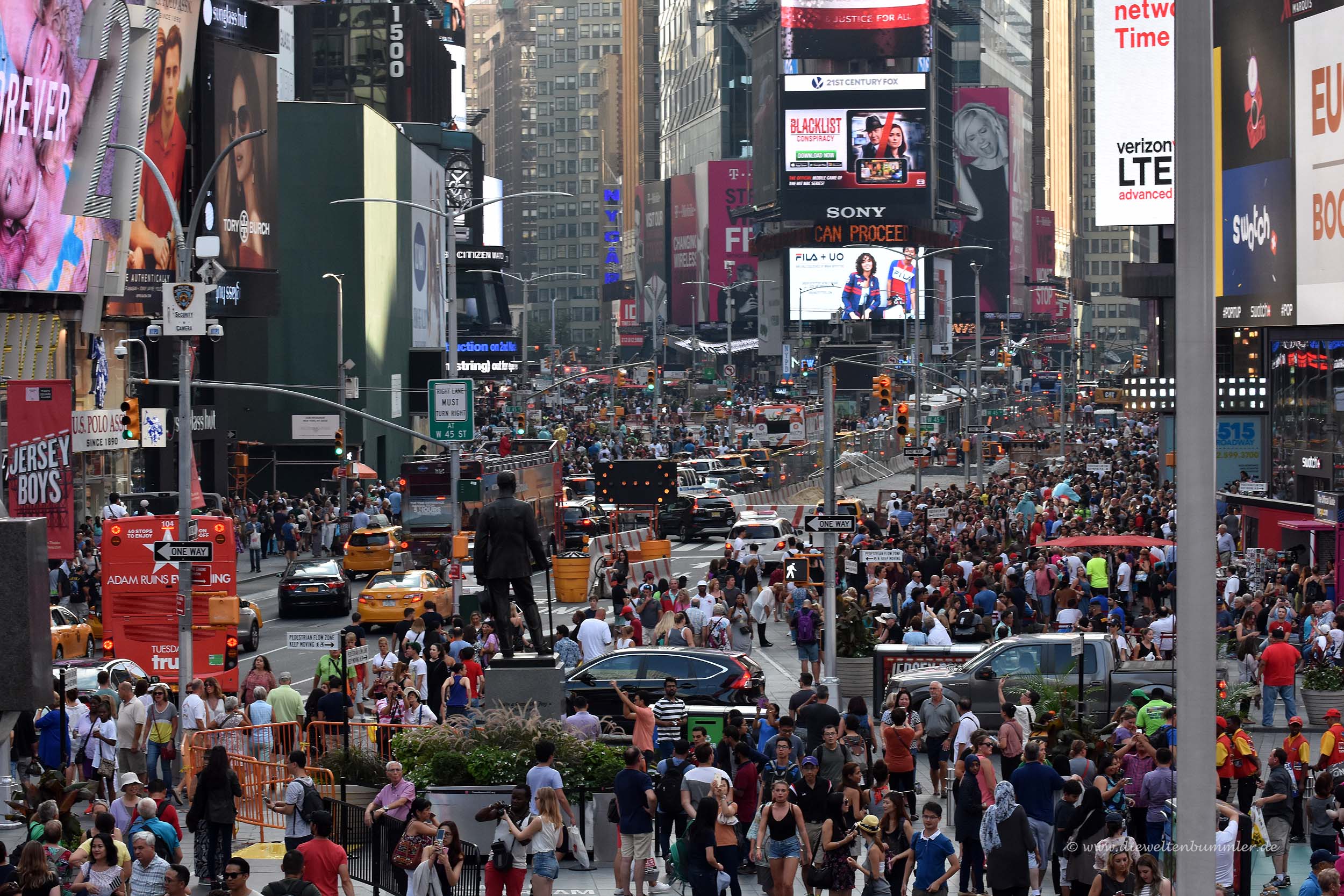 Kurz gesagt, der Times Square gehört zu den Pflichtpunkten, die man in New York besucht und gesehen haben sollte. Allerdings sollte man sich auf große Menschenmassen einstellen. Auch die Lautstärke, die in New York ohnehin schon etwas höher ist, ist hier noch einmal ein gutes Stück deutlicher.