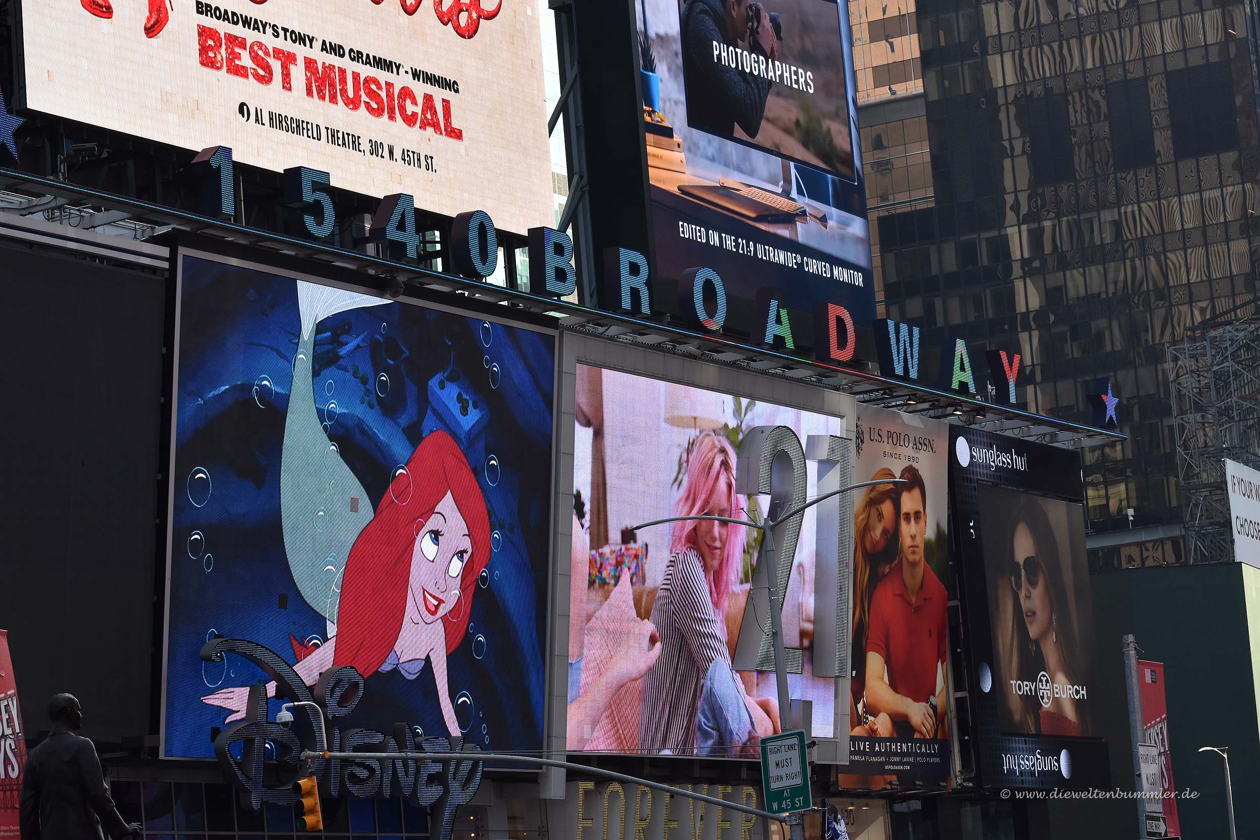 Klassisch steht der Times Square aber eben für blinkende Werbung, schrille Figuren, die seltsam oder gar nicht bekleidet sind und sich damit ihr Geld verdienen sowie für den Neujahrsball, der alljährlich an Silvester mit einem Countdown nach unten gezählt wird und das neue Jahr einläutet.