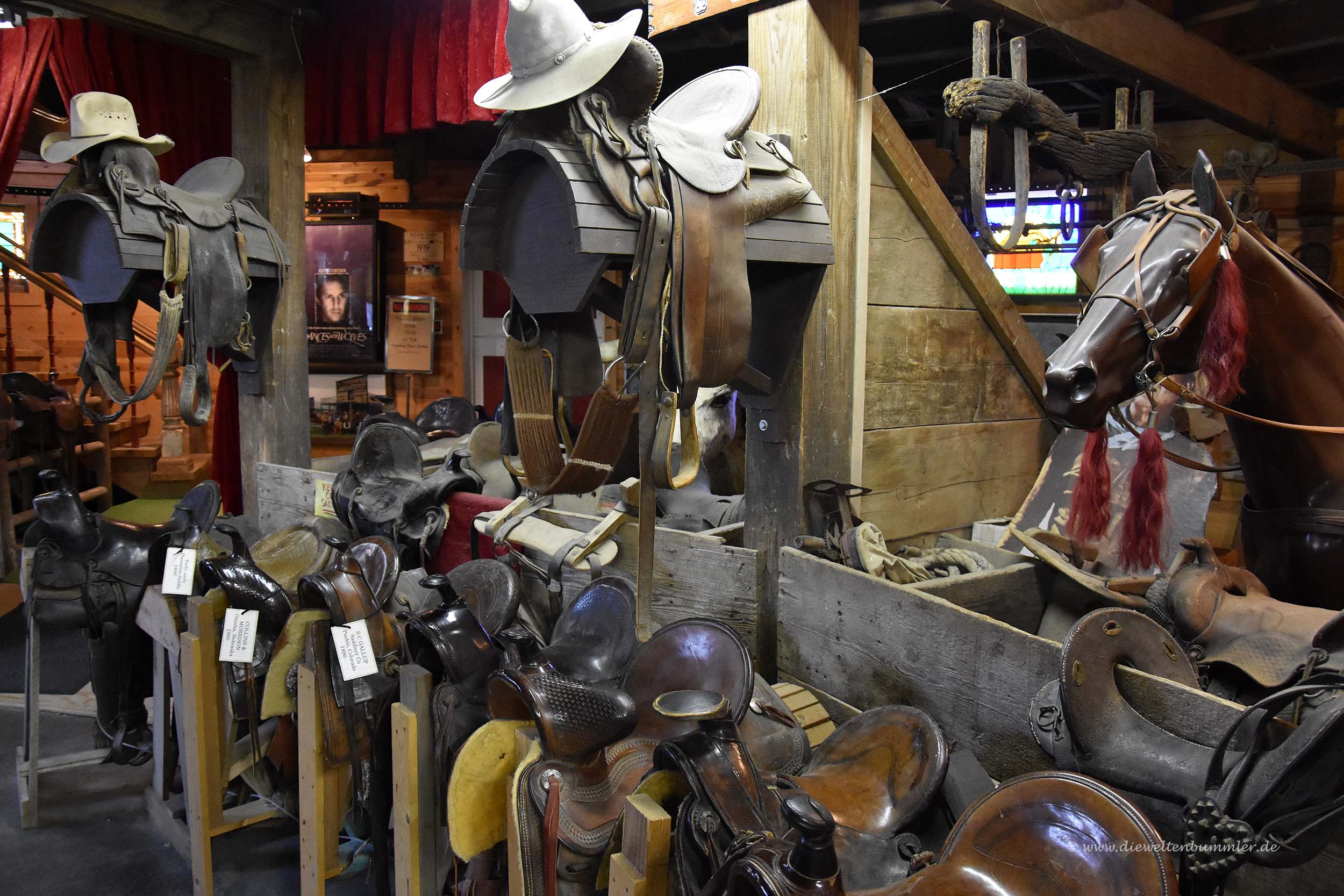Aber jetzt waren wir einmal hier und offensichtlich war man froh, dass Besucher da waren. Also legten wir 20 Dollar auf den Tisch und durften zunächst einmal in eine Ausstellung. Hier gab es neben typischen Western-Devotionalien auch klassische Souvenirs, die mit dem Wilden Westen nicht zu tun haben und eher in Richtung Road 66 gingen.