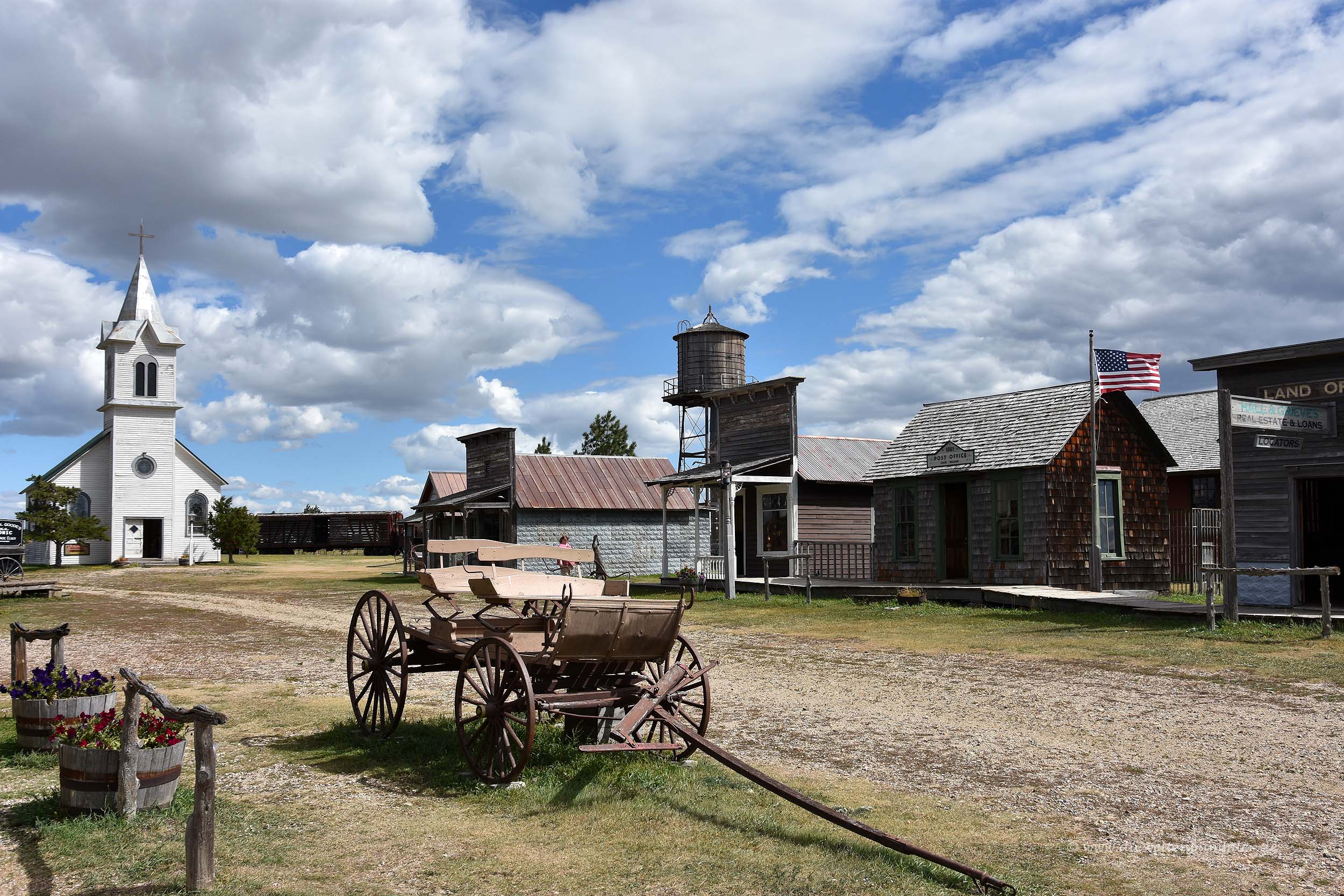 So schlendert man heute auf einer typischen staubigen Straße oder über Holzbohlen zwischen den Holzhäusern, in denen ein Geschäft oder eine Schule untergebracht sind. Natürlich dürfen ein Saloon und ein Hotel auch nicht fehlen. Selbst eine Kirche und ein Bahnhof sind in diesem historischen Stil dort anzutreffen.