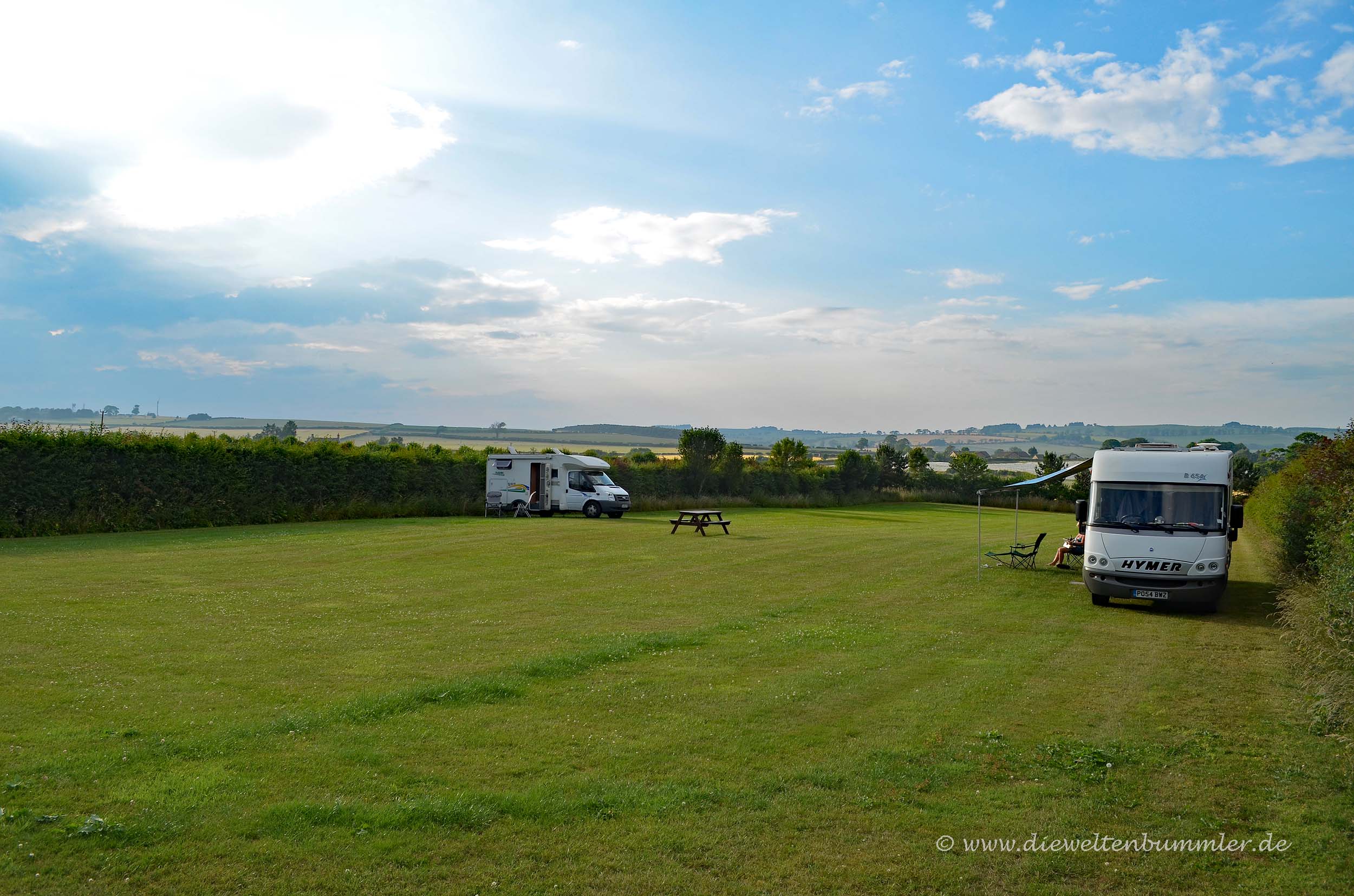 Grundsätzlich gilt zumindest bei The Caravan Club, dass nur fünf Fahrzeuge pro Nacht dort stehen dürfen. Zu dieser Maßnahme verpflichten sich die Grundstückseigentümer, damit sie ihren Grund und Boden im Verband bewerben können. Das kann dazu führen, dass man nach langer Fahrt an einem riesigen Grundstück angelangt ist, wo locker noch 20 Wohnmobile parken könnten, man aber abgewiesen wird, weil schon fünf andere Fahrzeuge schneller waren. So ist es uns nicht nur einmal ergangen.