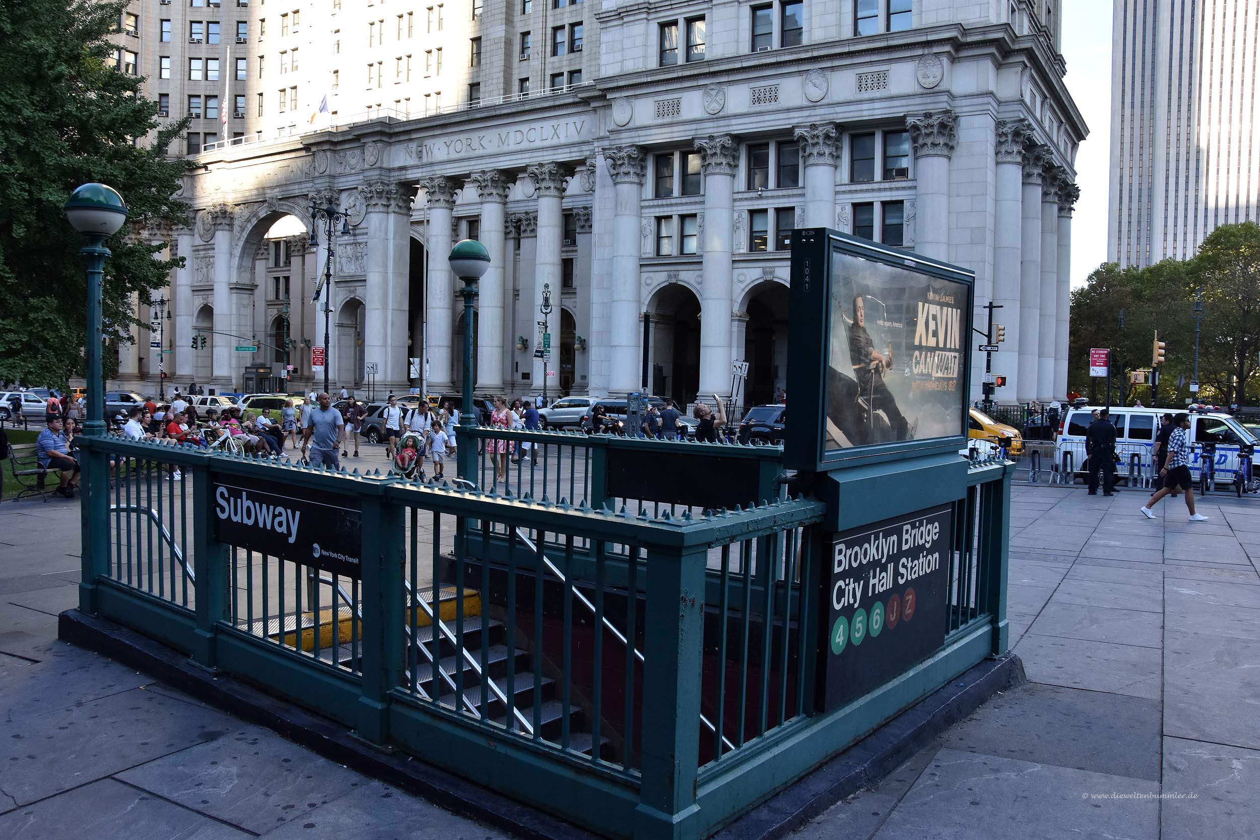 Besonders aufgefallen – oder eben auch nicht – ist mir das im bunten Manhattan. Dort, wo das Auge ständig von irgendwelchen Blinki-Blinki-Reklametafeln abgelenkt wird, fielen mir die Zugänge überhaupt nicht auf. Und wenn wir dort die U-Bahn nutzen wollten, mussten wir schon genau hinschauen.