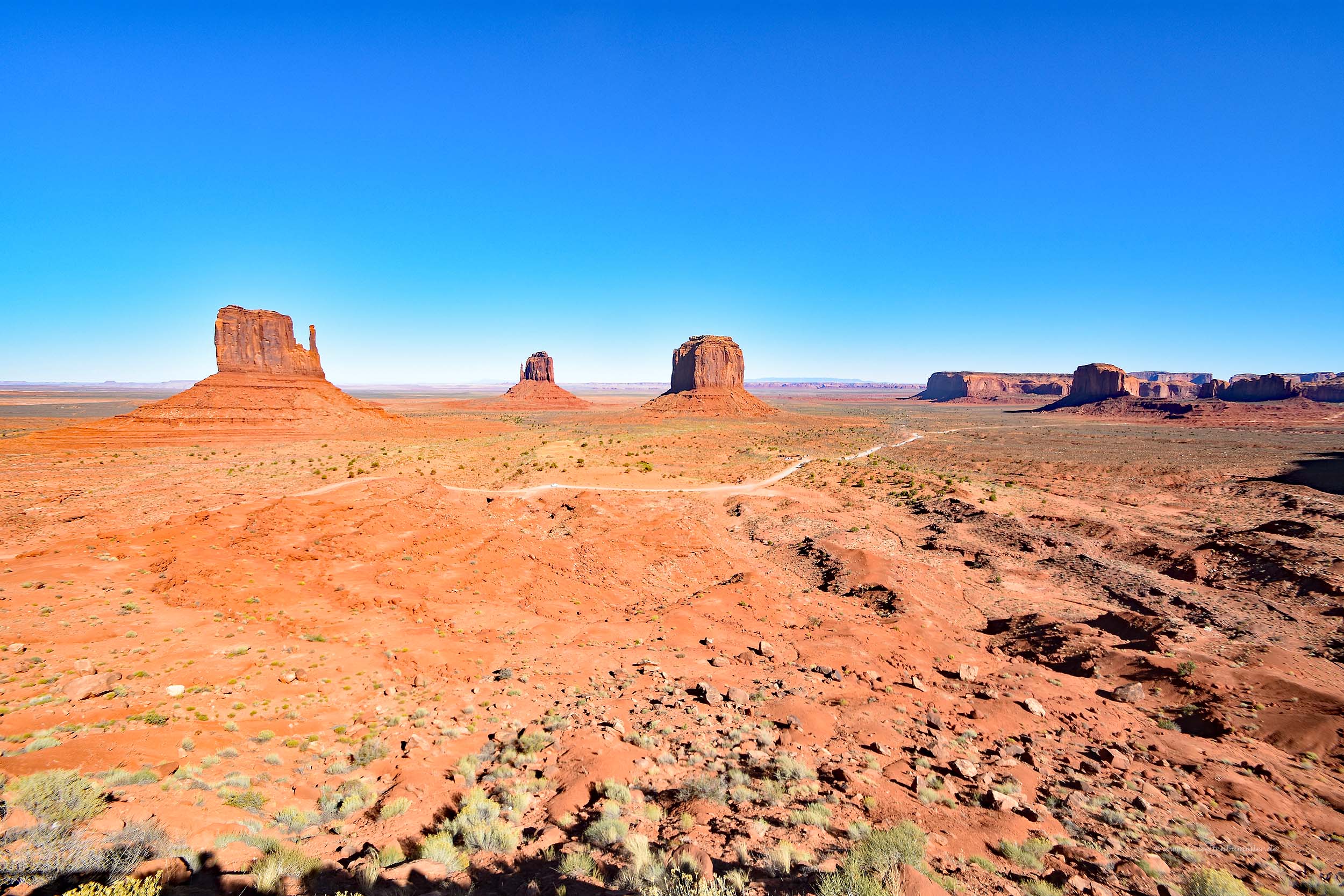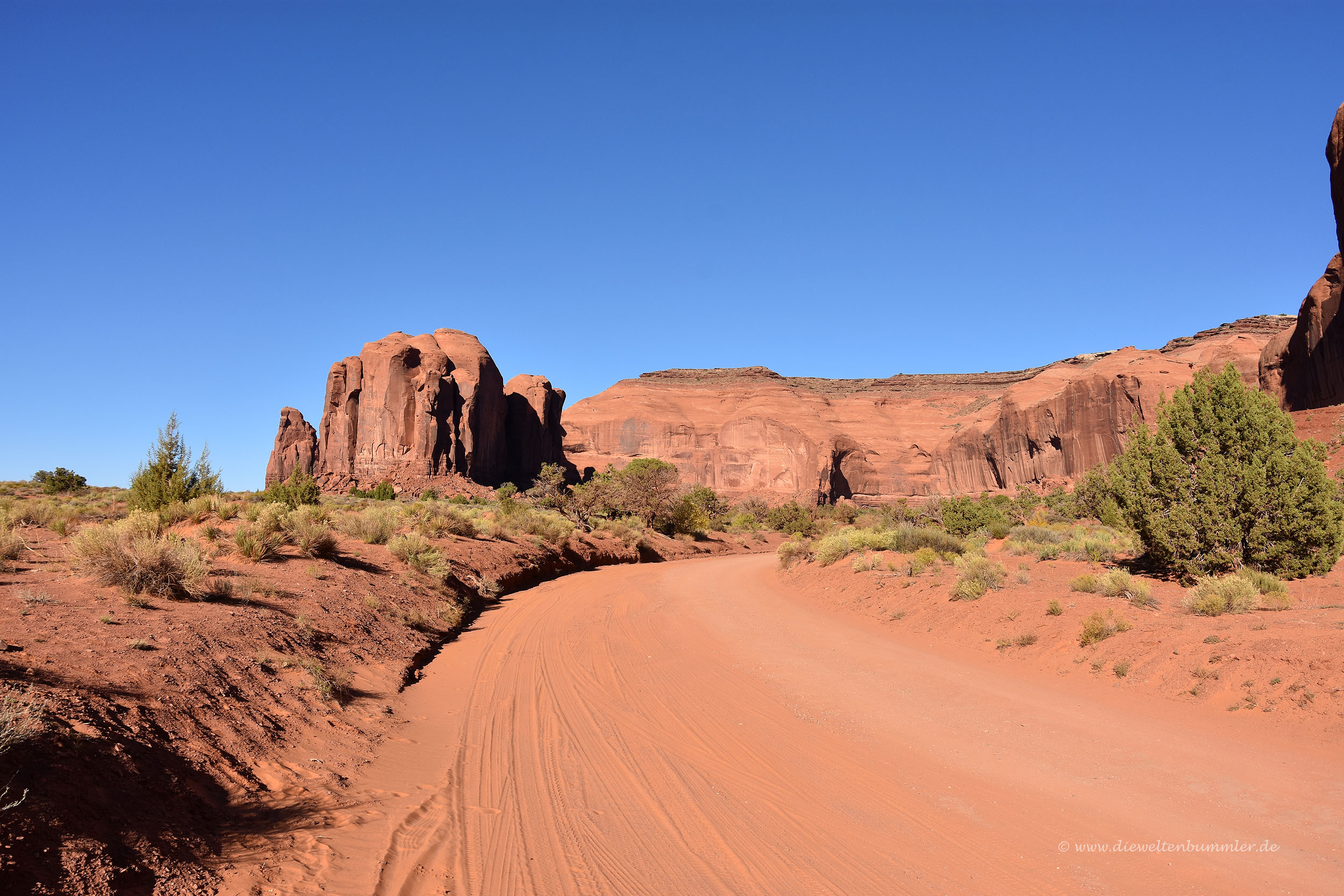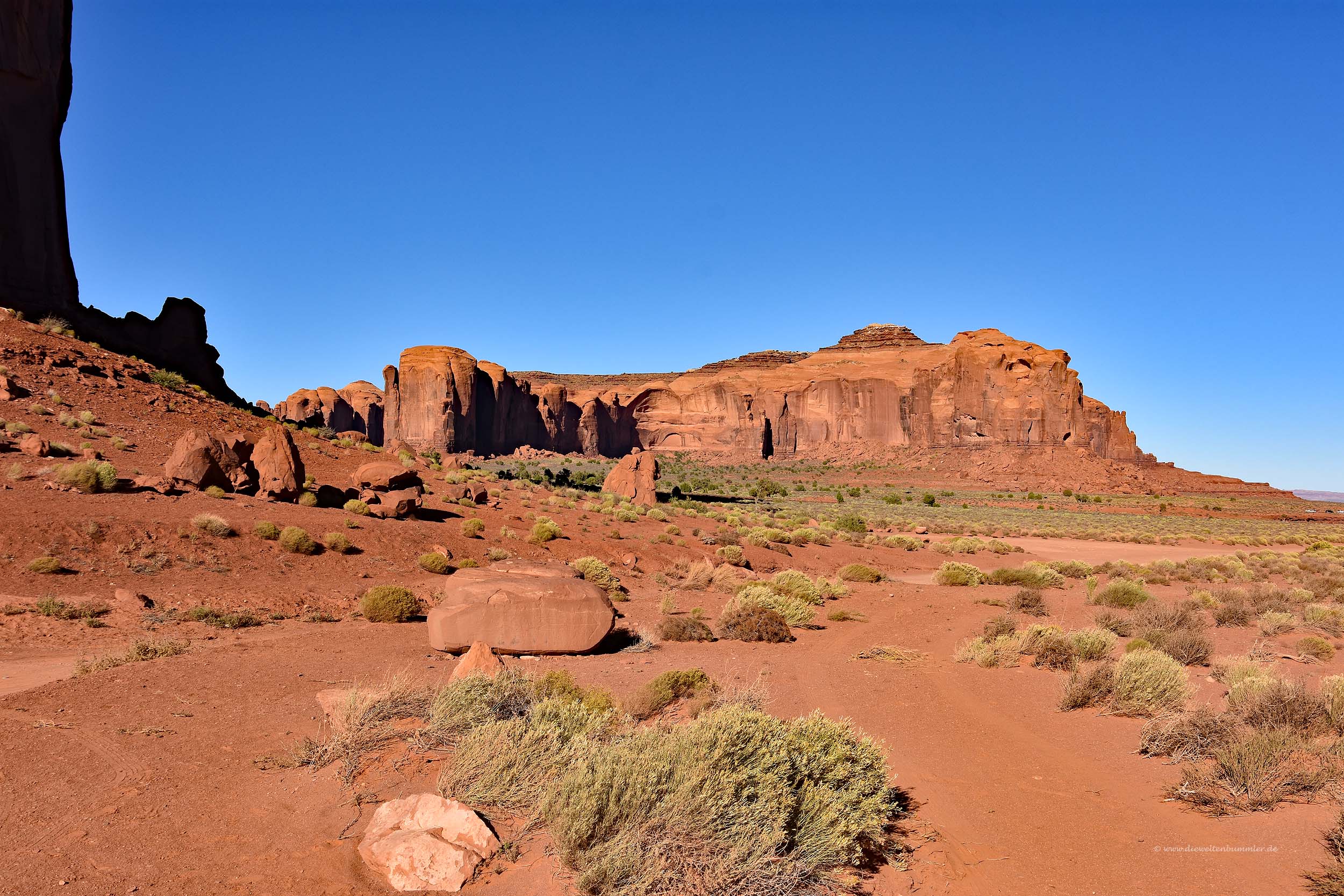 Südlich der Grenze der beiden US-Bundesstaaten Utah und Arizona, also auf Arizonas Seite, gibt es eine Landschaft, die nicht zuletzt durch zahlreiche Spielfilme bekannt geworden ist – das Monument Valley.