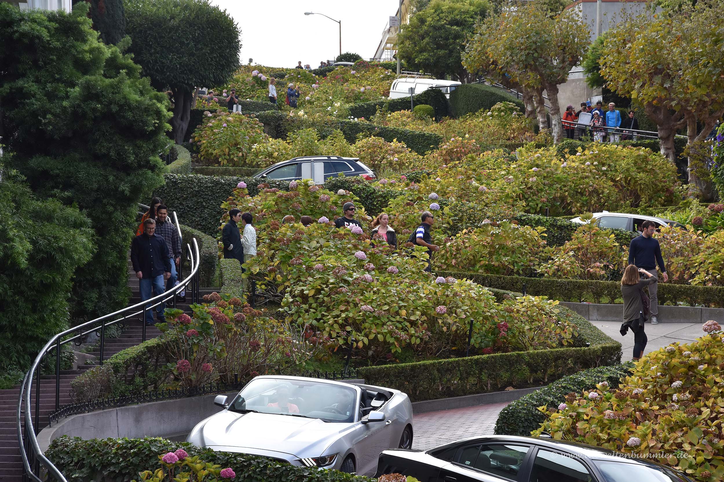 Wer, so wie wir, mit dem Auto durch die Straßen von San Francisco fährt, der sollte auch unbedingt die Lombard Street befahren. Dabei geht es um die knapp 140 Meter zwischen der Hyde Street und der Leavenworth Street. Diese sind nicht nur sehenswert, sondern werden von den Touristen auch gerne mit dem eigenen Auto befahren.
