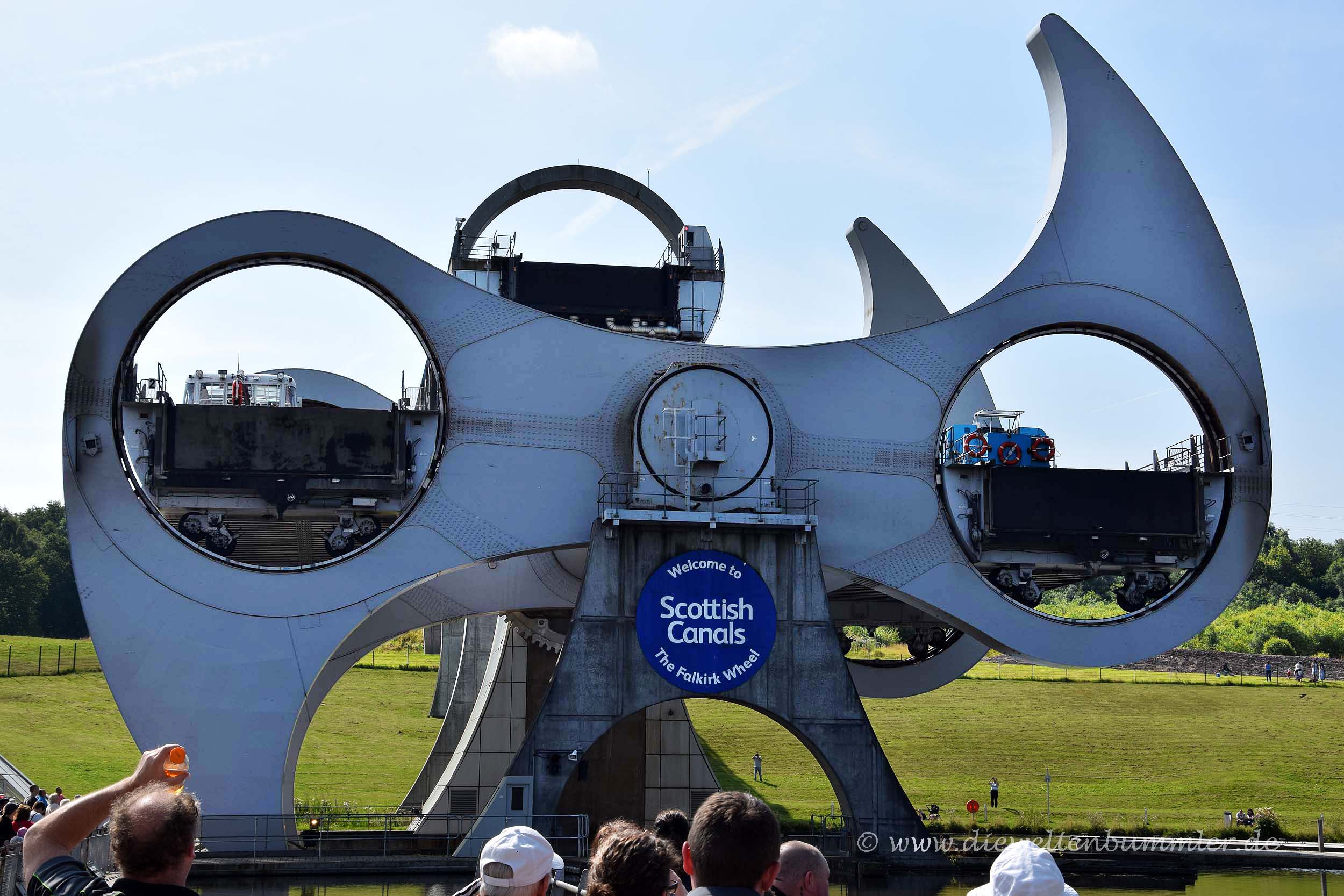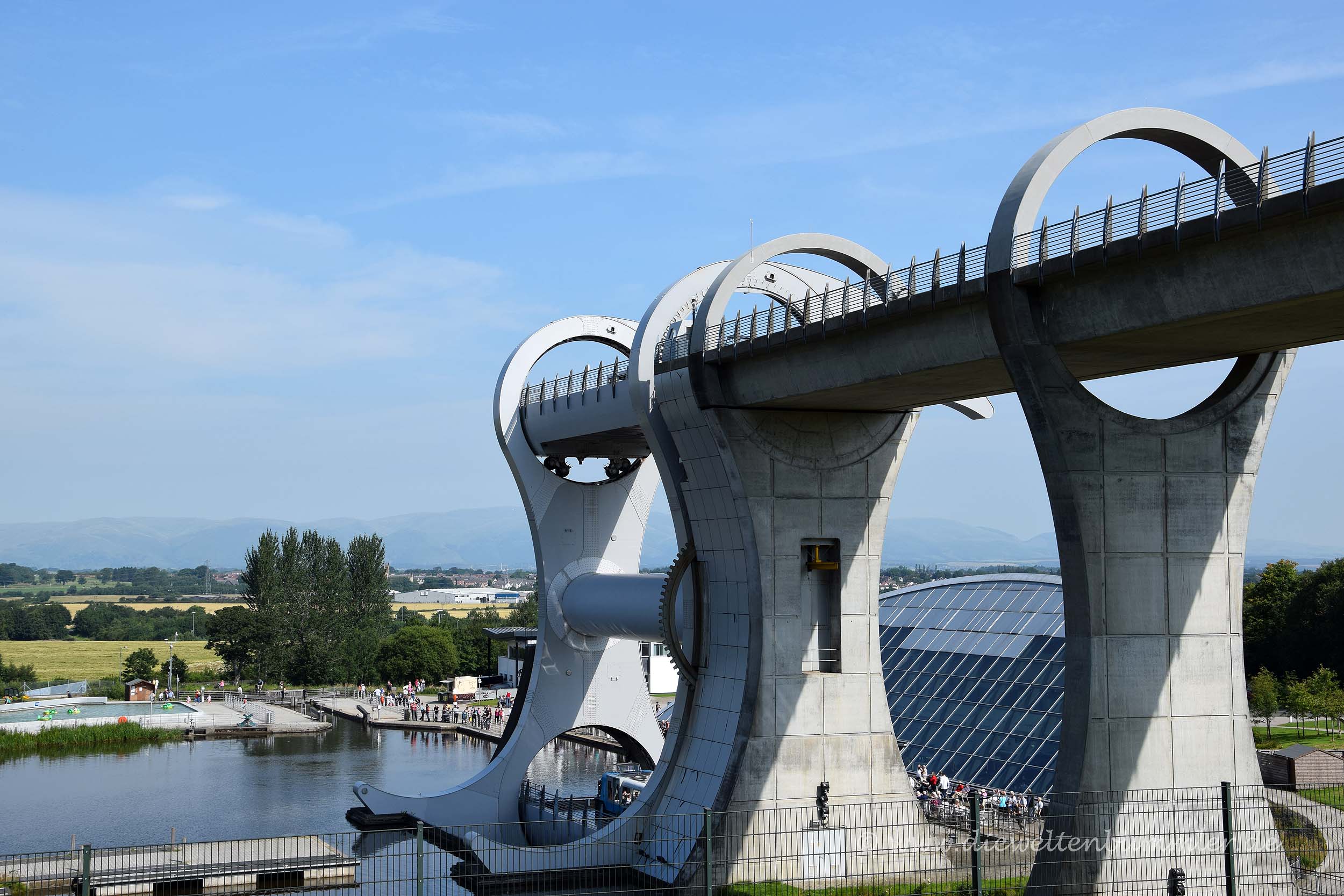 Das Rad, das ich heute vorstellen möchte, ist jedoch kein Riesenrad in Kirmesmanier, sondern dient einem besonderen Zweck. Das Falkirk Wheel ist ein Schiffshebewerk westlich der schottischen Hauptstadt Edinburgh. Natürlich darf auch hier der Spaß nicht zu kurz kommen. So existiert hier nicht nur ein Besucherzentrum, sondern selbstverständlich auch Gastronomie und ein Freibad.