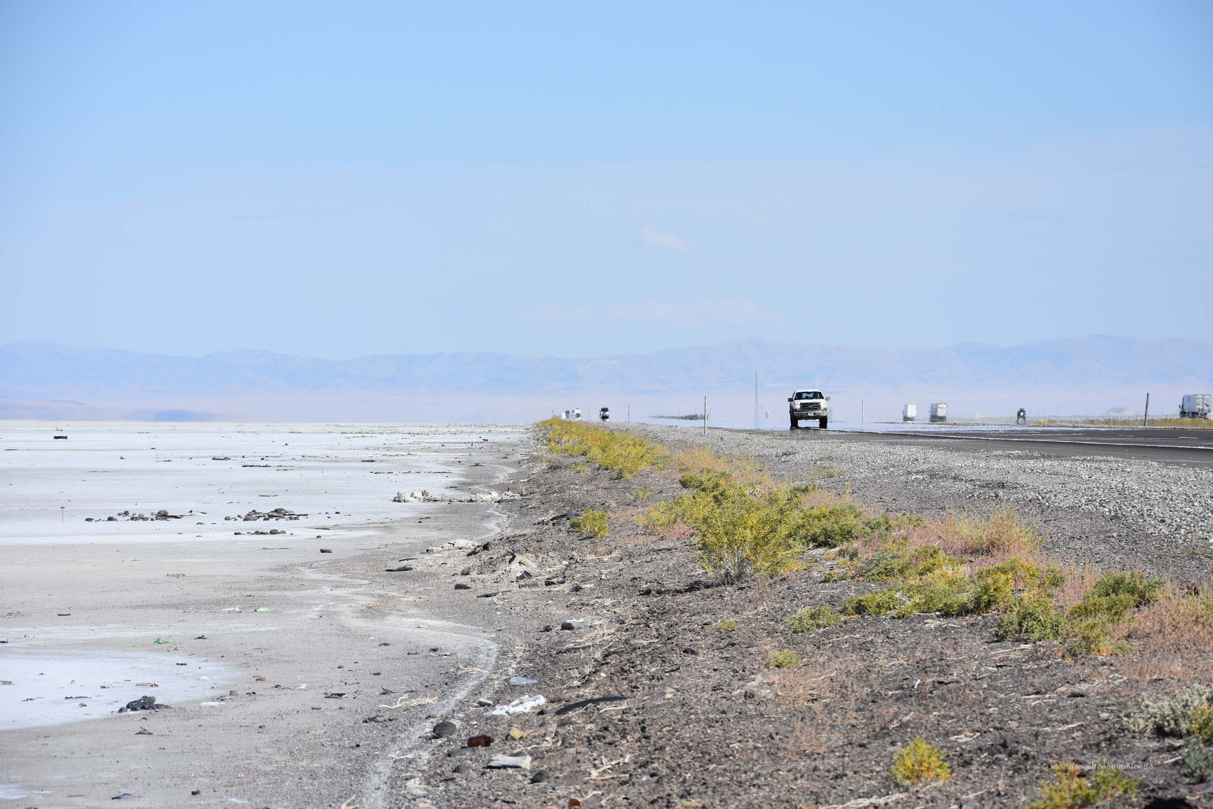 Der Große Salzsee hat uns eigentlich nicht sonderlich interessiert und wir sind recht schnell an ihm vorbeigefahren. Wenn man auf der Interstate 80 an der Südspitze des Sees vorbei reist, dann passiert man noch eine Hügelkette und schwenkt auf eine lange Gerade ein.
