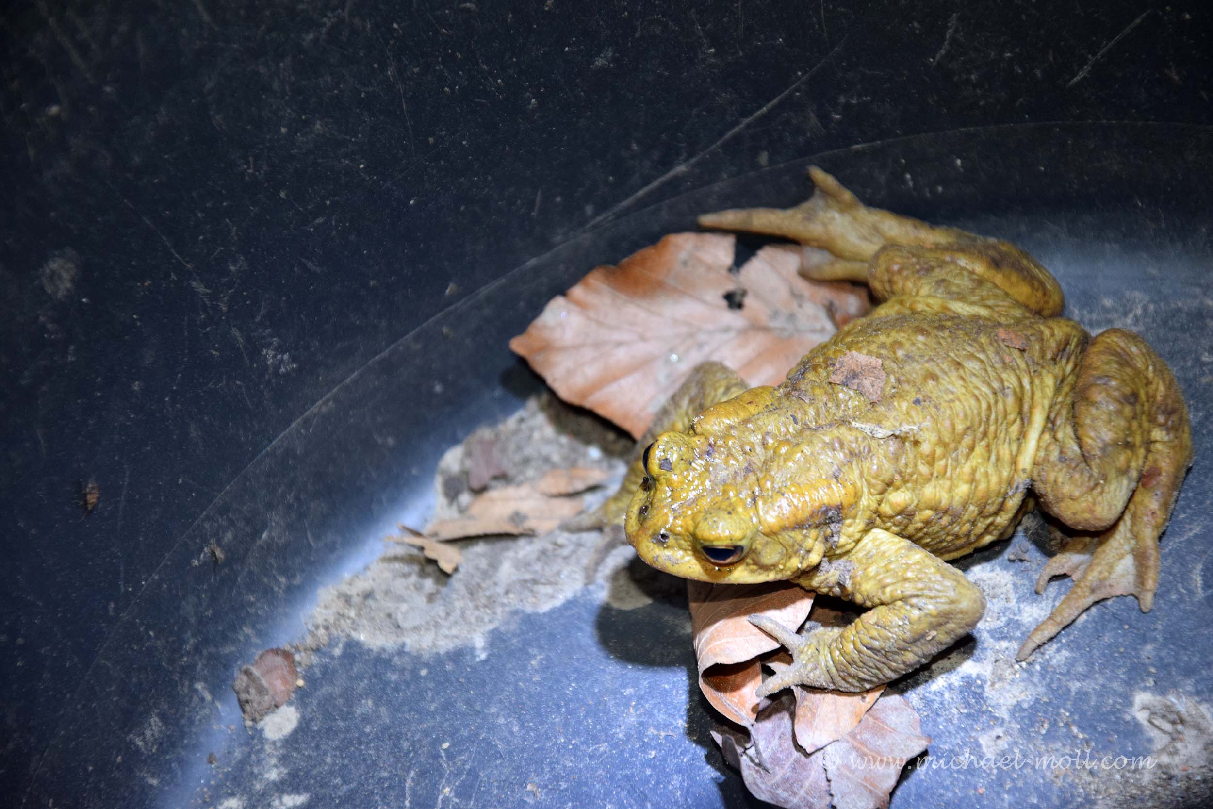 Also schritten wir den gesamten Zaun ab und sammelten die kleinen Kröten ein, um sie schließlich in sicherer Entfernung zur Straße wieder aussetzen zu können.