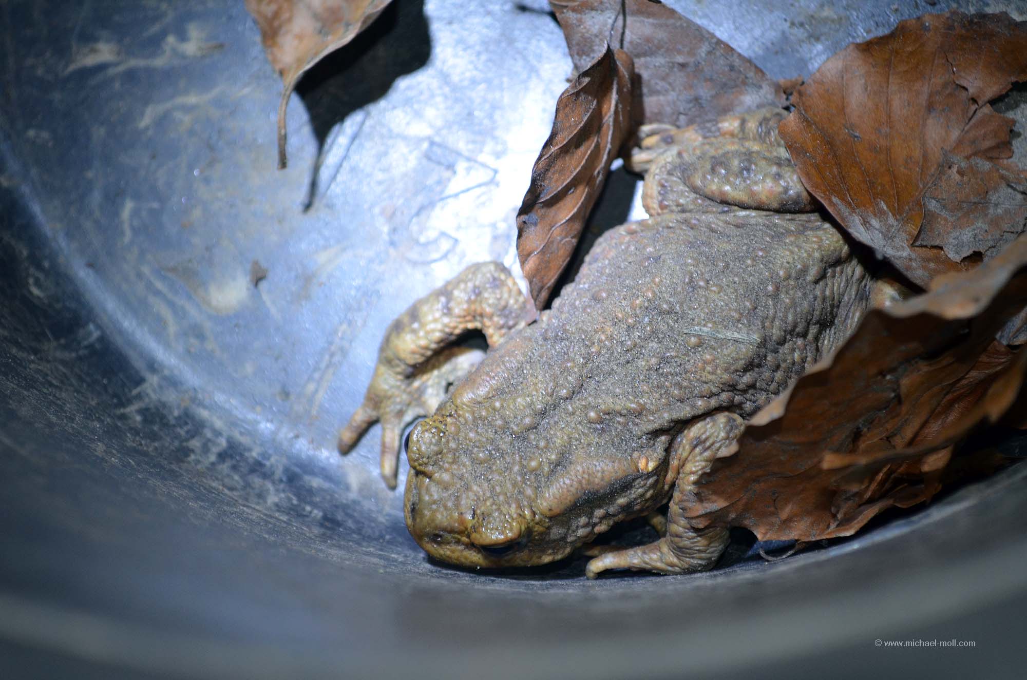 Nun ja, aber wenigstens eine Kröte konnte ich retten. Wenn sich das unter den Amphibien herumspricht und die Tierchen Vertrauen zu mir aufgebaut haben, werden im nächsten Jahr vielleicht mehr Kröten meine Dienste als Krötentaxi in Anspruch nehmen, wenn es wieder heißt: Achtung, Krötenwanderung!