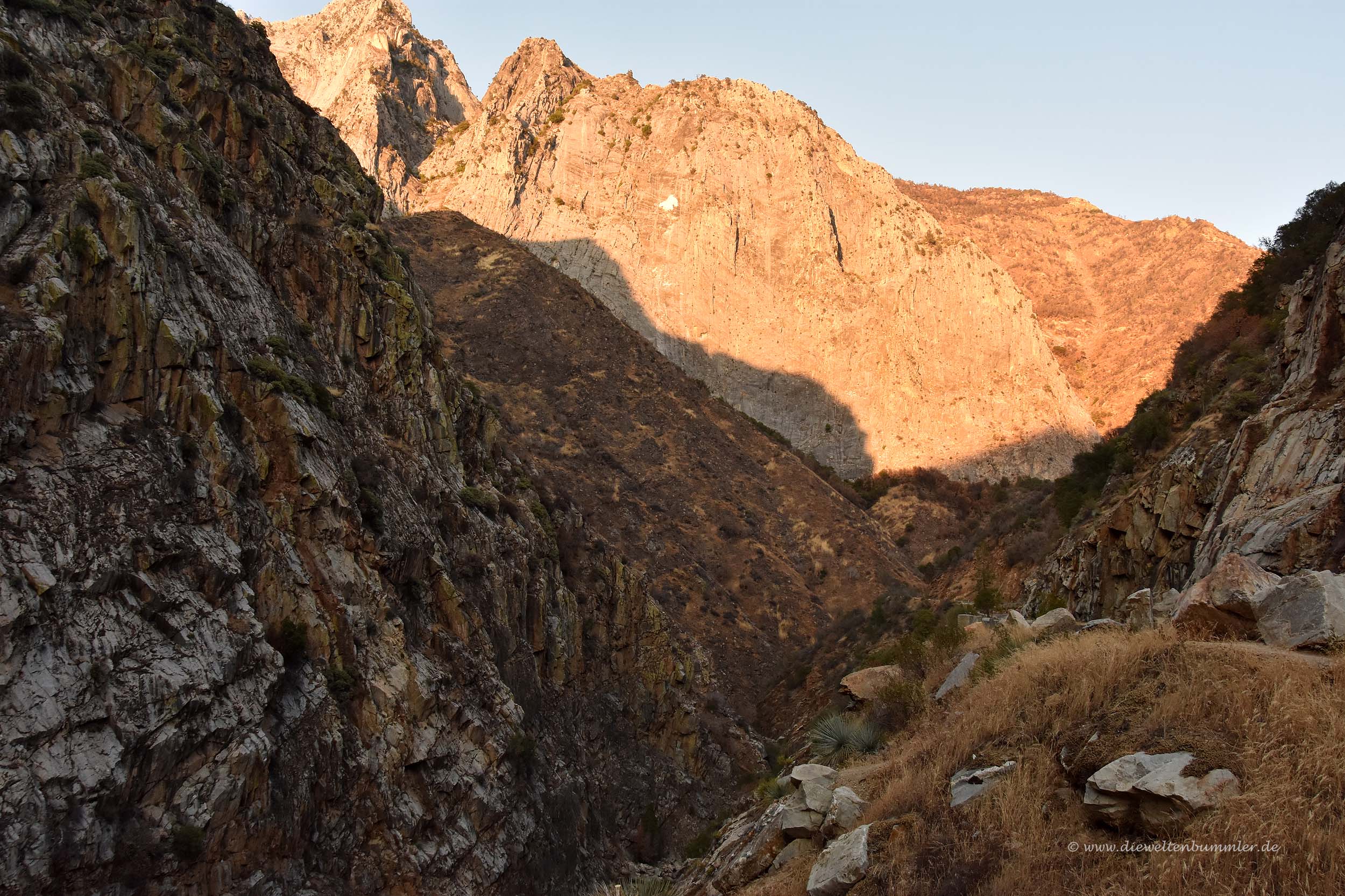 Immerhin hatten wir ja an dem gleichen Tag bereits ganz in Ruhe den Sequoia-Nationalpark besucht und einige kleinere Wanderungen gemacht. Das bedeutete, wir fuhren schon recht spät in den Kings Canyon und konnten ohnehin nichts mehr unternehmen. Außerdem war es in der Schlucht dadurch sehr leer – was wir allerdings auch als Vorteil sahen.