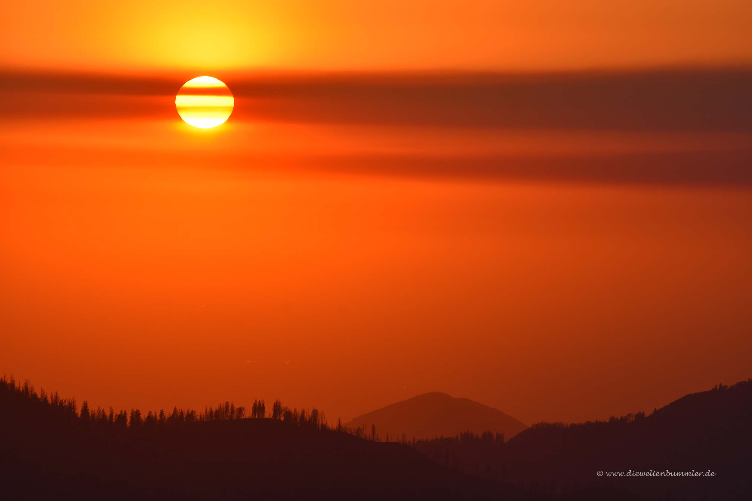 So sind wir nach einigen kleineren Rundgängen und Fotostopps an den Aussichtspunkten die gesamte Strecke wieder zurückgefahren und kamen erst weit nach Sonnenuntergang im Motel in Fresno an.