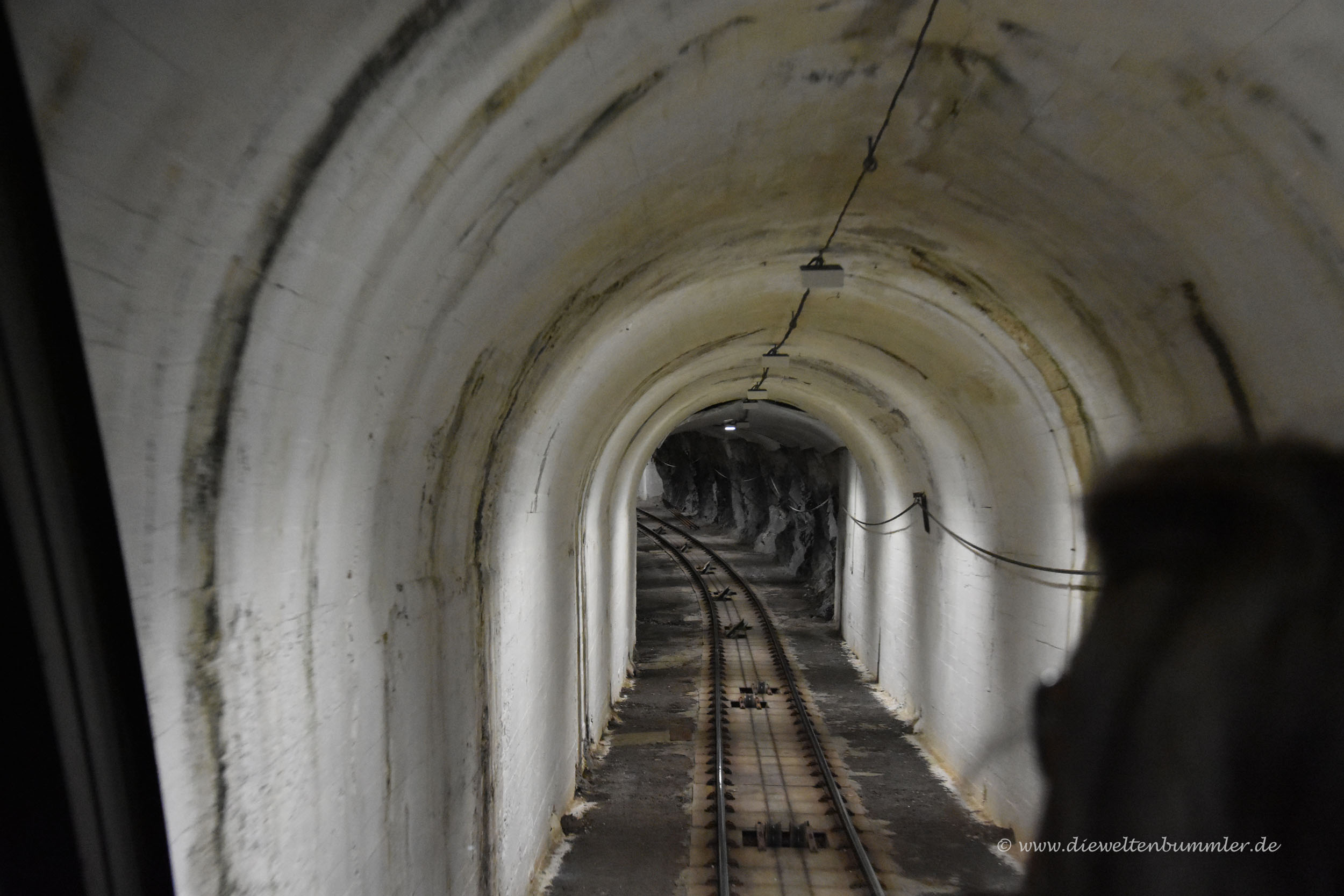 Die Fahrt mit der Fløibanen, der einzigen Standseilbahn Norwegens, dauert nur wenige Minuten und beginnt unterirdisch. Im Laufe der kurzen Fahrt verlässt man den Tunnel, unterquert man aber noch ein paar Straßen und schon ist man auch bereits oben an der Bergstation.