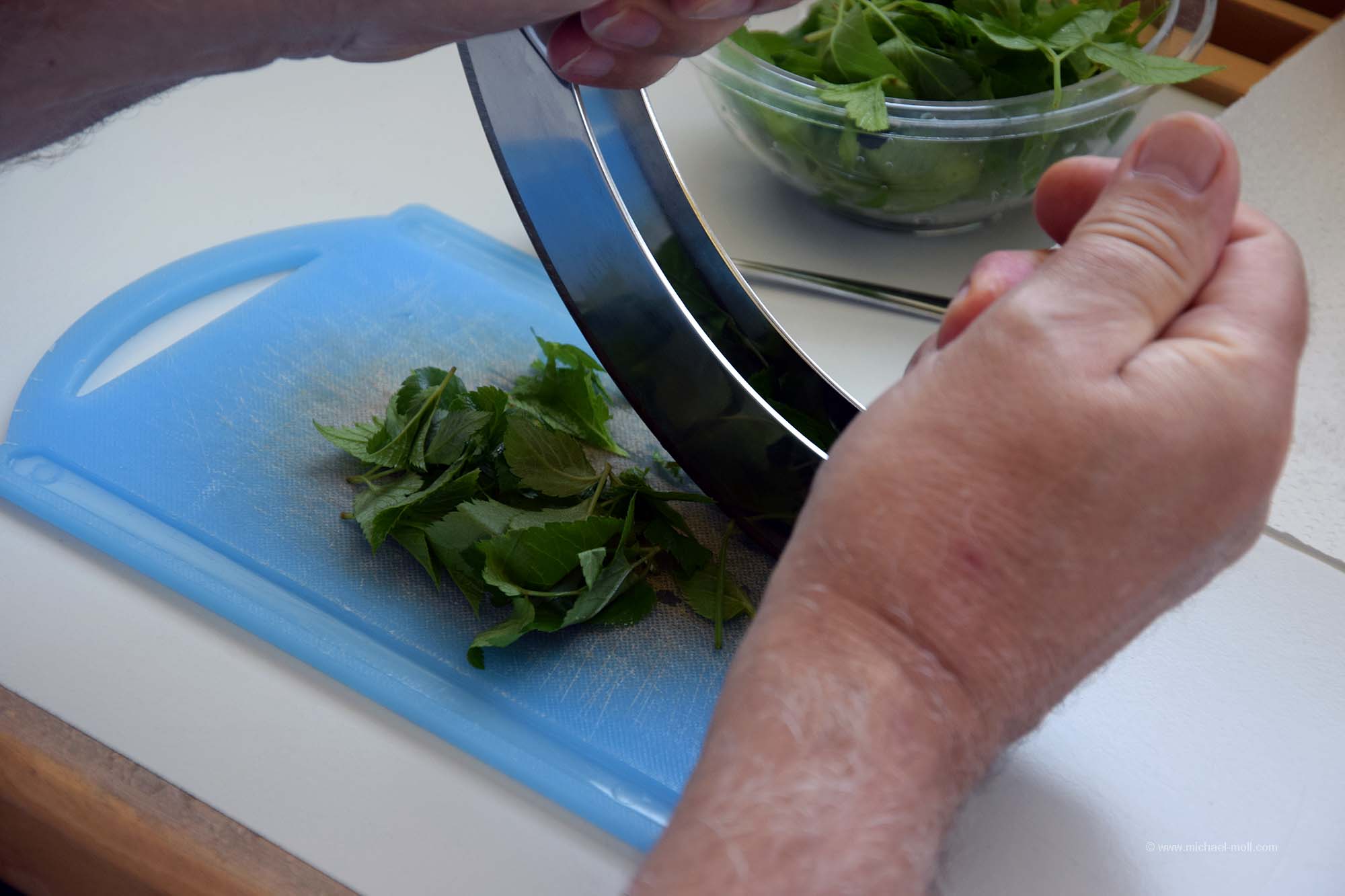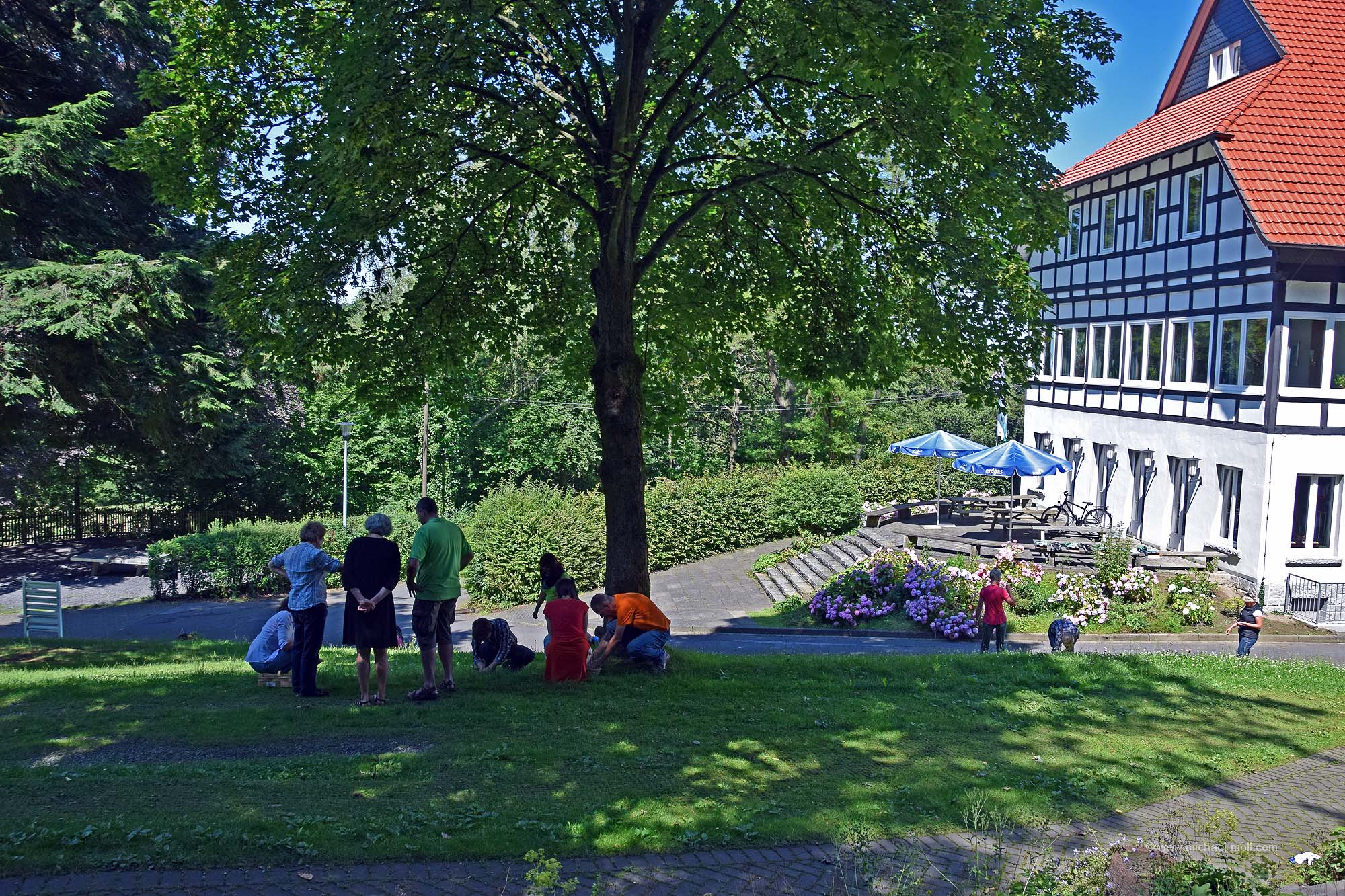 Anschließend schnappten sich die Teilnehmer ein paar Körbe und dann ging los zum großen Kräutersammeln im Garten des SGV-Jugendhofs. Schon erstaunlich, wie viele unterschiedliche Kräuter man auf einer einzigen Wiese finden und pflücken kann. Zu den bereits genannten kamen natürlich noch das legendäre Gänseblümchen, der Löwenzahn, der Gundermann, der Giersch und der Bärlauch hinzu. Bei letzterem ist es übrigens sinnvoll, mit einer kleinen Schaufel ins Erdreich zu graben und die Zwiebeln hervorzuholen.
