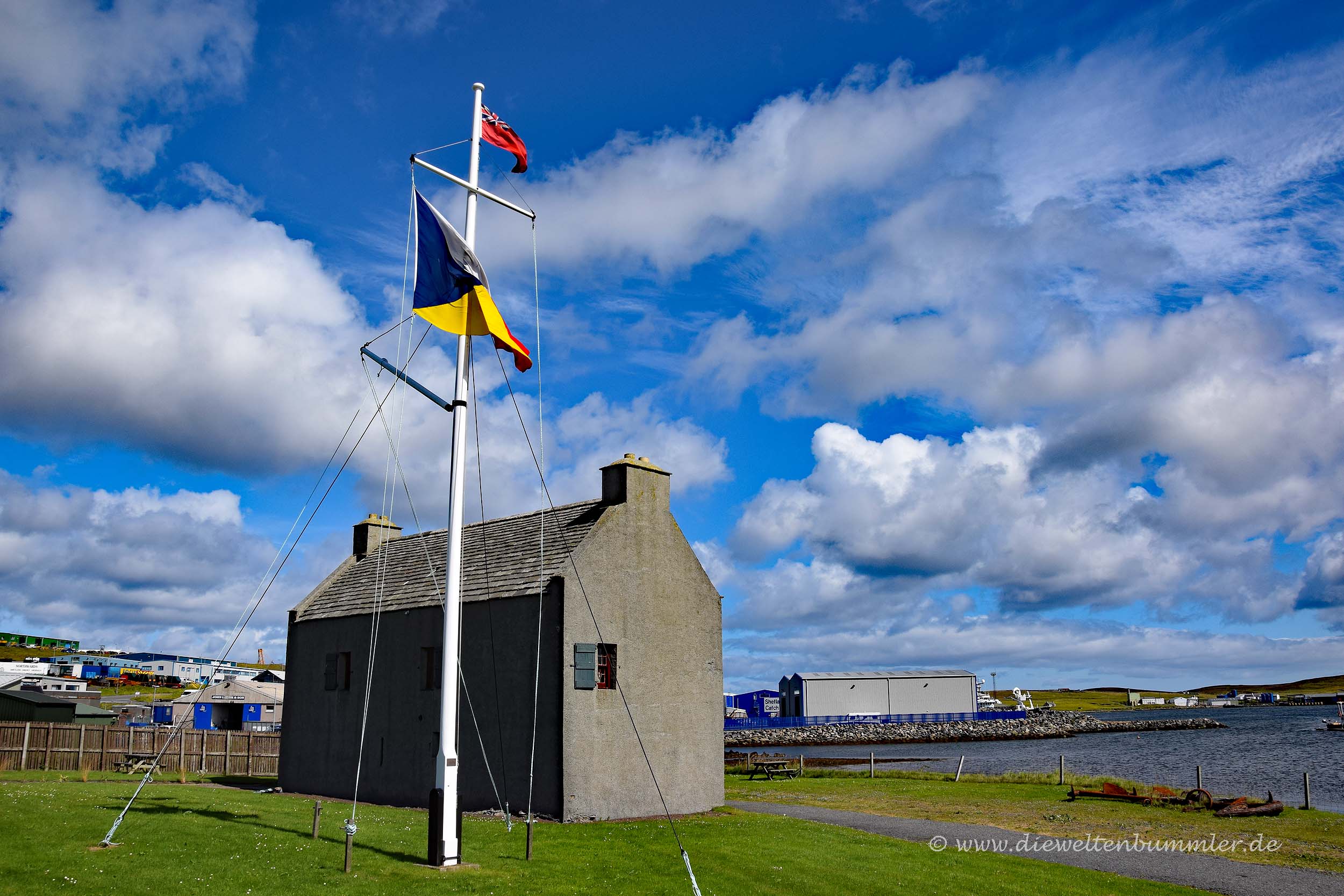 Beim Böd of Gremista handelt es sich um das Geburtshaus von einem der Gründer der berühmten Fährgesellschaft P&O. Daher weht vor dem Haus die Flagge der Fährgesellschaft, was an sich ein Kuriosum ist. Denn von P&O fährt kein einziges Schiff zu den Shetland-Inseln. Im Inneren des Hauses ist ein kleines Textilmuseum untergebracht, weil hier Stoffe hergestellt wurden. Die Damen im Museum scheinen es ehrenamtlich zu betreuen und sind sehr freundlich.