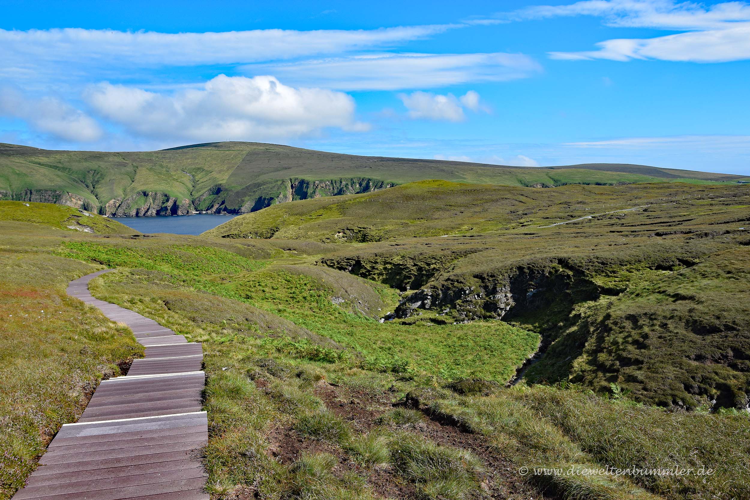 Mit Unst erreicht man den endgültig nördlichsten Punkt von Großbritannien. Gleichzeitig kann man dort eine wunderbare kleine Wanderung über Holzstege zu einem tollen Küstenabschnitt unternehmen. Die Tour verläuft durch das Hermanness-Naturreservat und bringt einen durch einen wunderschönen Flecken Erde.