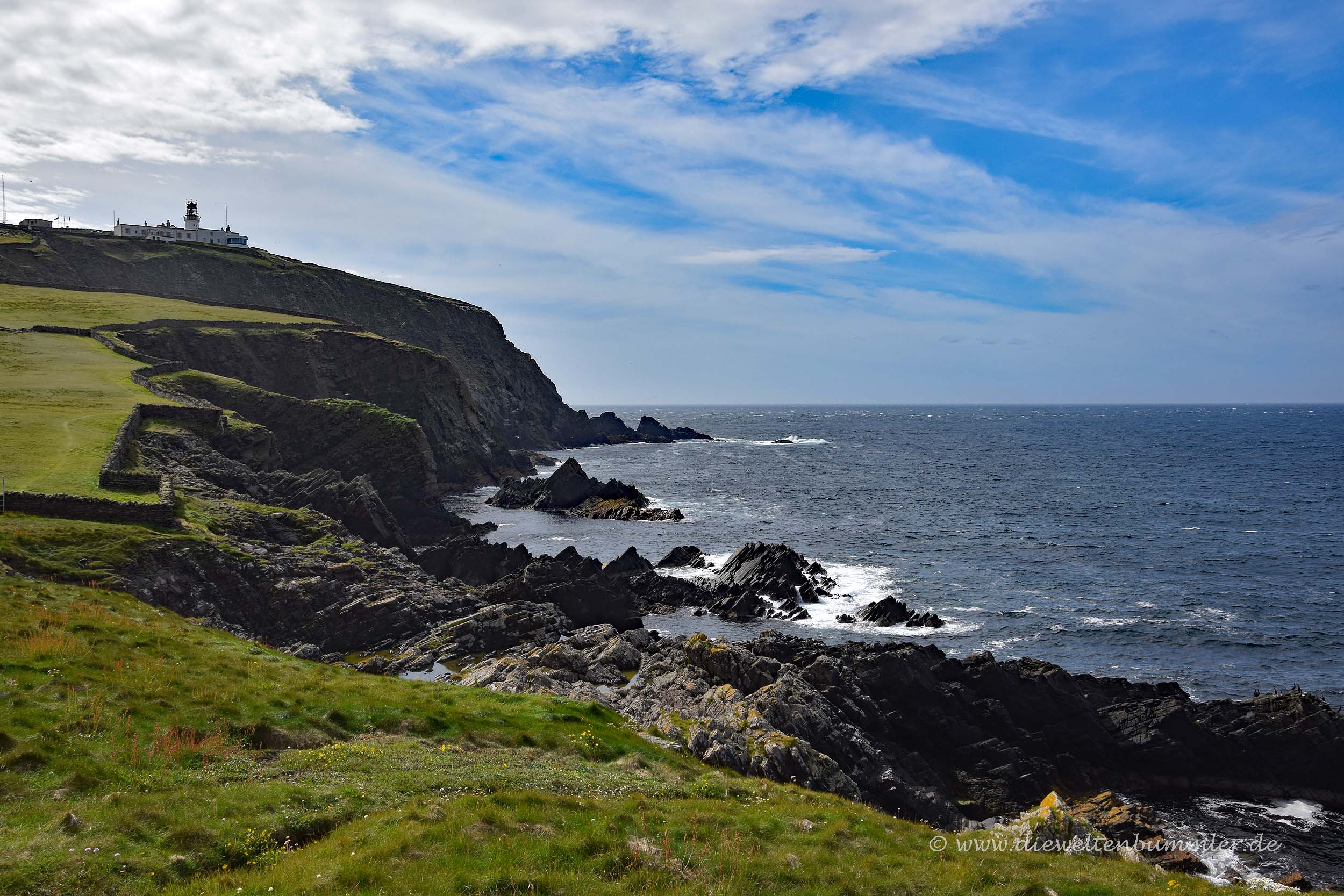 Am Jarlshof lohnt es sich, das Wohnmobil einfach mal stehen zu lassen. Von dort kann man nämlich auf einem schönen Rundweg entlang der Küste wandern. Dabei gelangt man zum südlichsten Punkt der Shetland-Inseln, der Sumburgh genannt wird. Dort erhebt sich oberhalb einer Steilküste ein Leuchtturm inklusive einer Ausstellung. Der Leuchtturm spielte zum Beispiel eine große Rolle während des Zweiten Weltkriegs.