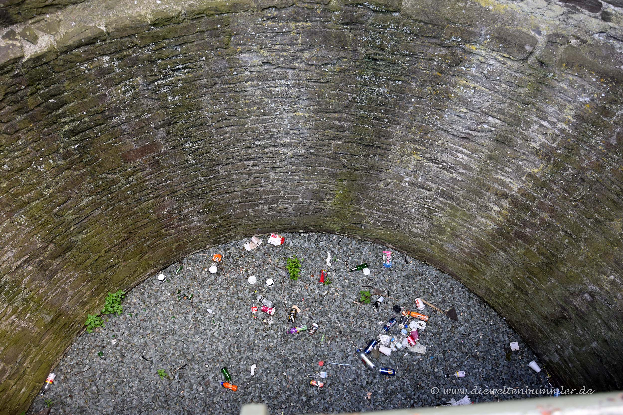 Das ist kein gemauerter Mülleimer, sondern Teil der Stadtmauer von Conwy in Wales. Was für Pfeifen schmeißen hier ihren Müll in die Tiefe?