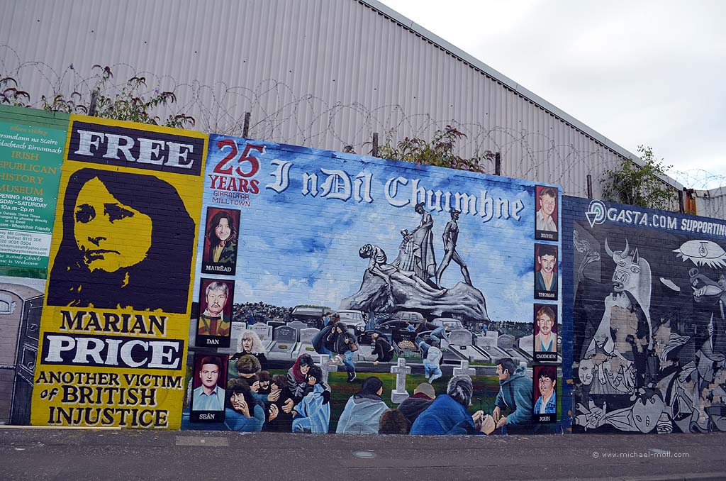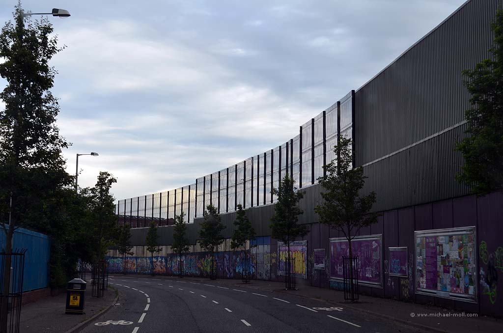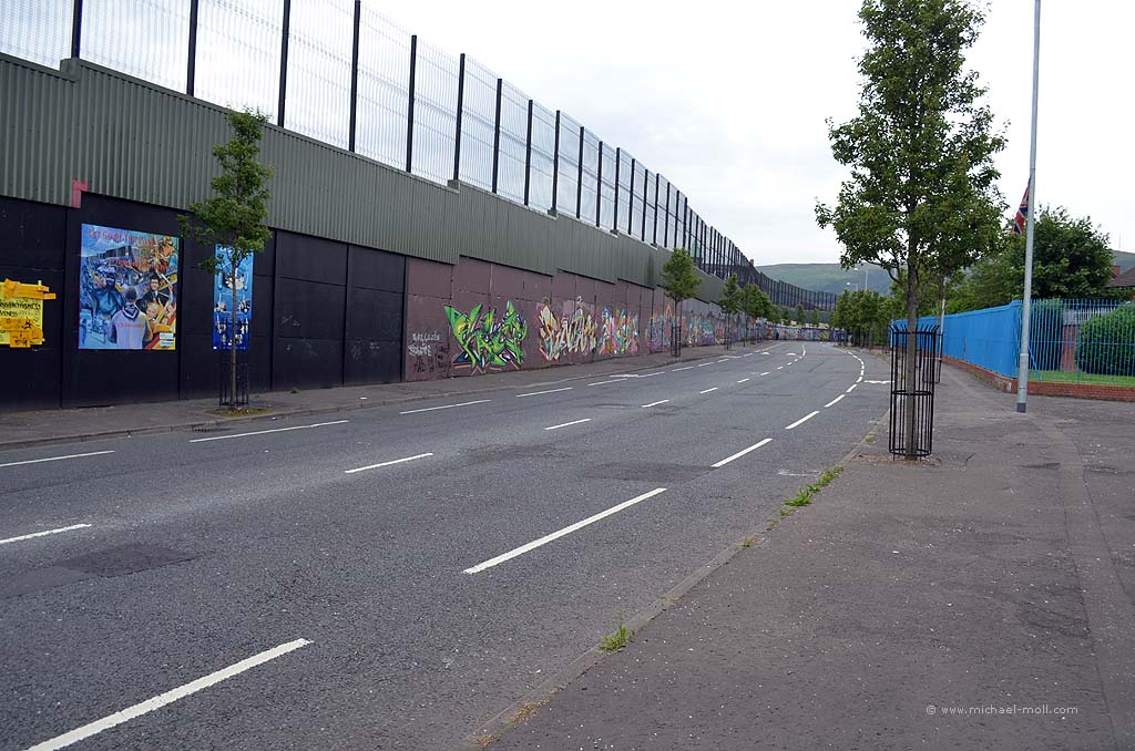 Die Peace Wall ist eine Mauer, die mit der einstigen Berliner Mauer auf keinen Fall zu vergleichen ist. Die Berliner Mauer hat eine klare Grenze gesetzt. Und vor allem Dingen war sie eine einzige, gerade Mauer, die nicht überwunden werden konnte. Die Peace Wall besteht hingegen aus mehreren einzelnen Mauern.