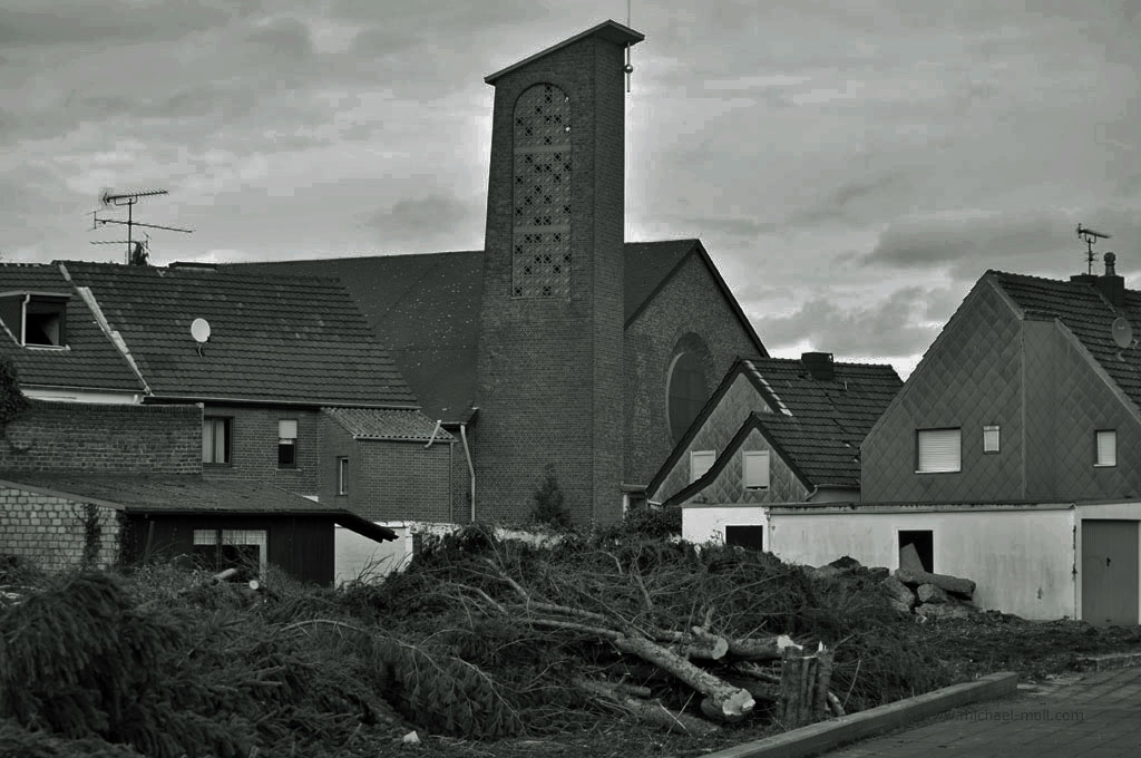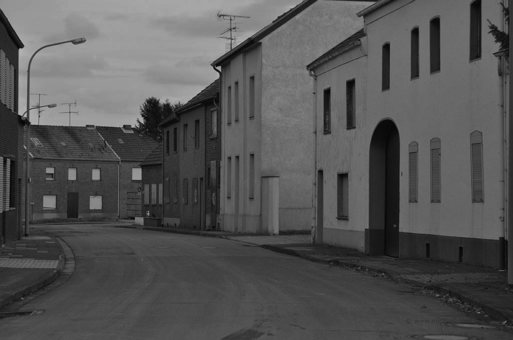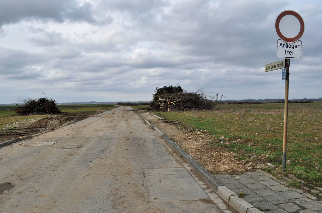 Pesch und auch Pier sind klassische Geisterstädte. Zumindest waren sie es noch im Jahr 2011 bevor die gigantischen Bagger des angrenzenden Tagebaus Garzweiler endgültig anrückten und die letzten verbarrikadierten Häuser abrissen.