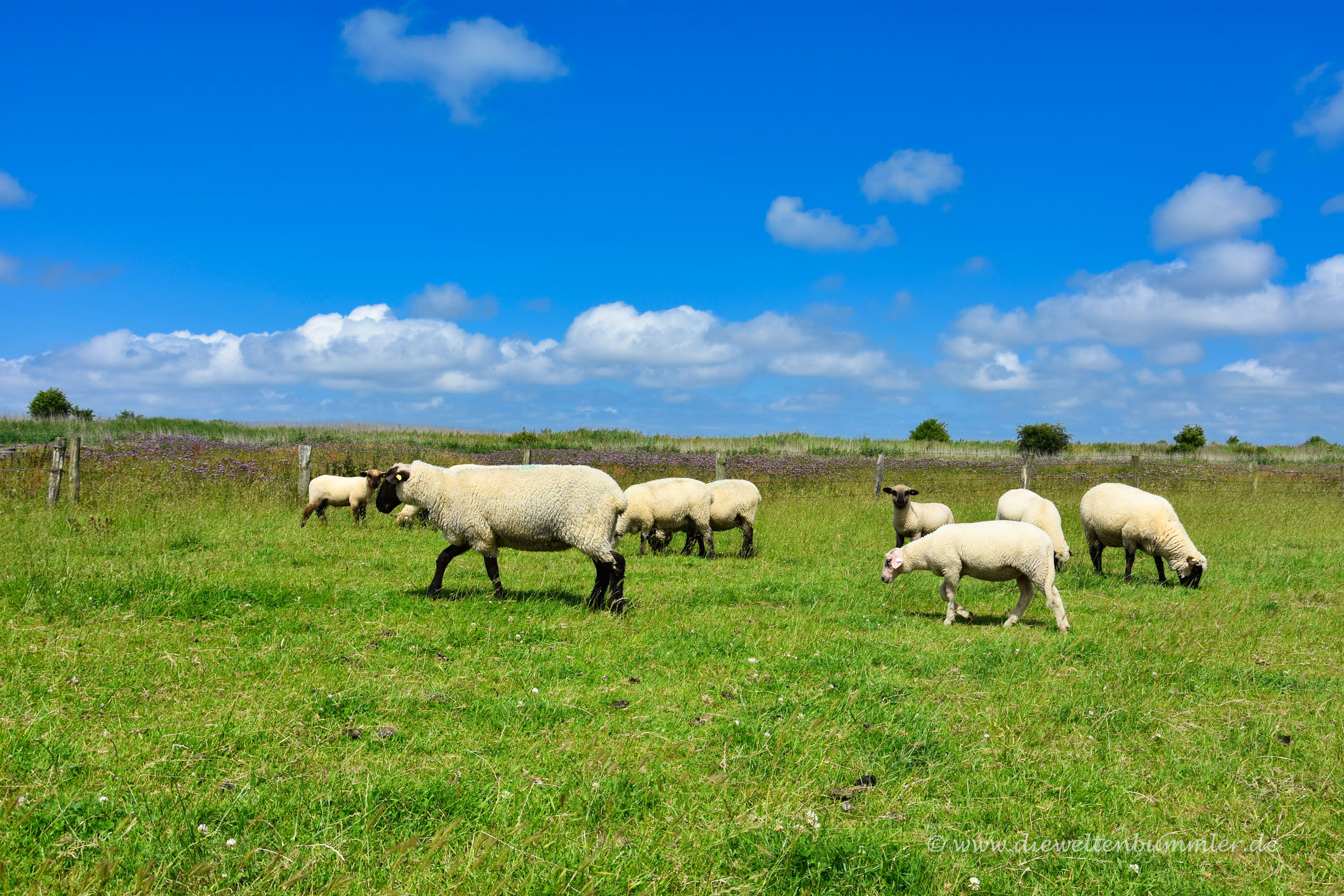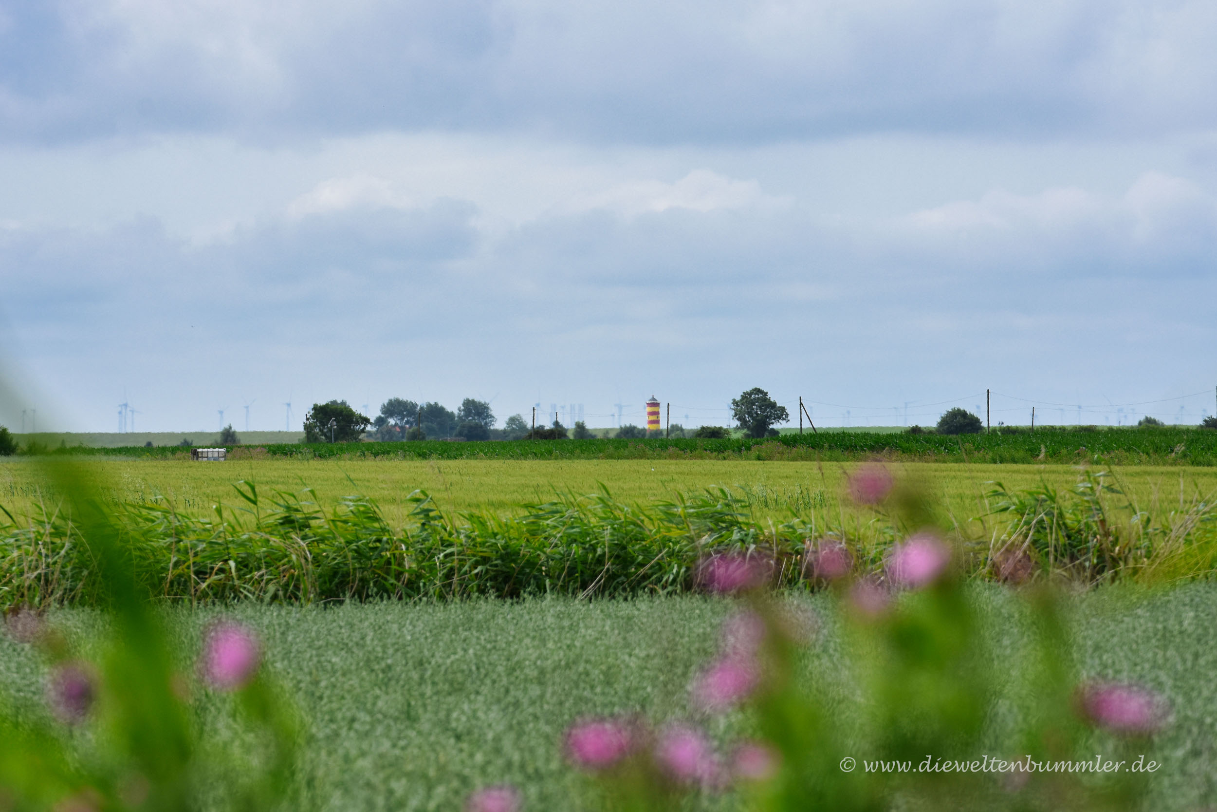 Alles in allem kann ich nur empfehlen, einfach mal hinfahren und die Landschaft genießen. Ich finde, der rot-gelbe Leuchtturm macht vor dem grünen Deich und unter dem blauen Himmel eine gute Figur.