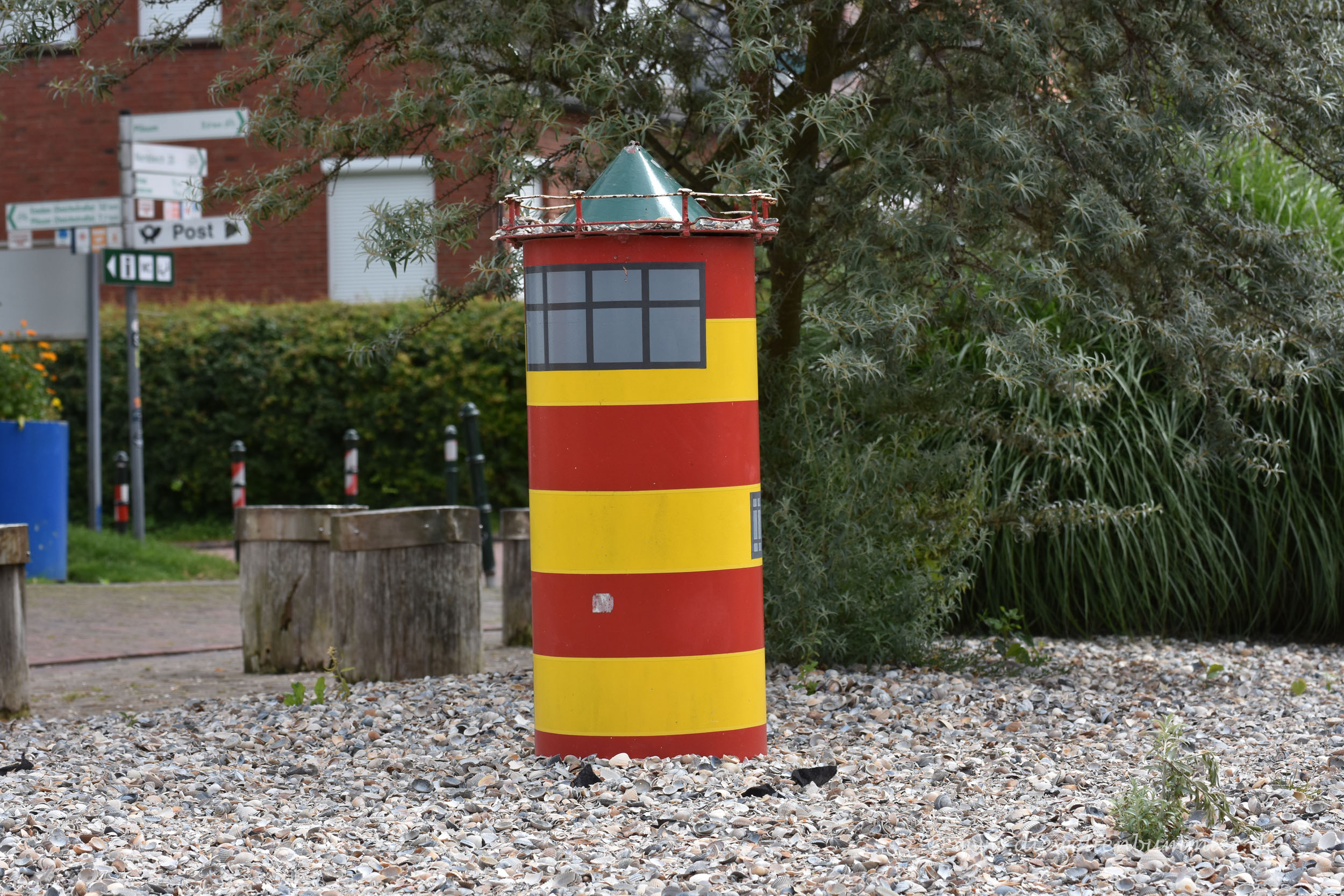 Er befindet sich westlich von Greetsiel und ist so ein wenig das Wahrzeichen von Ostfriesland geworden. Und das liegt dann wohl sehr an seiner Farbgebung mit vier roten und drei gelben Ringen. Er ist also kein klasssischer rot-weißer Leuchtturm und auch kein riesiger Leuchtturm in schwarz oder weiß.